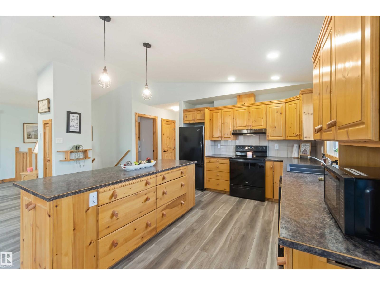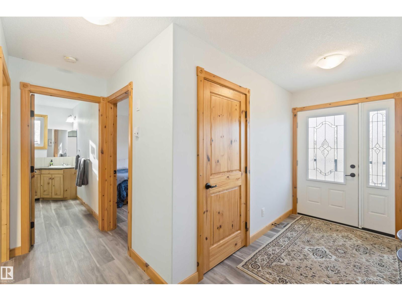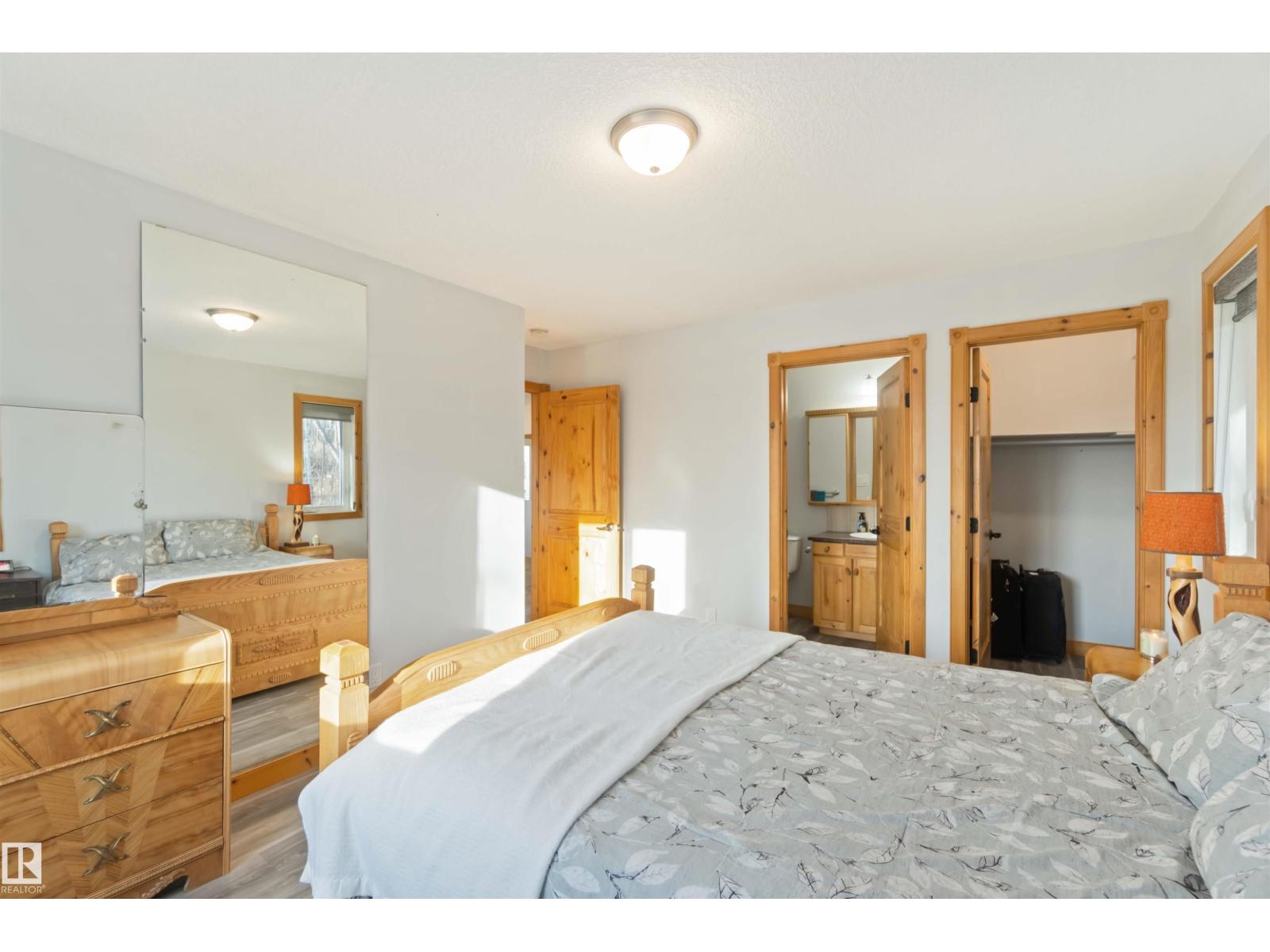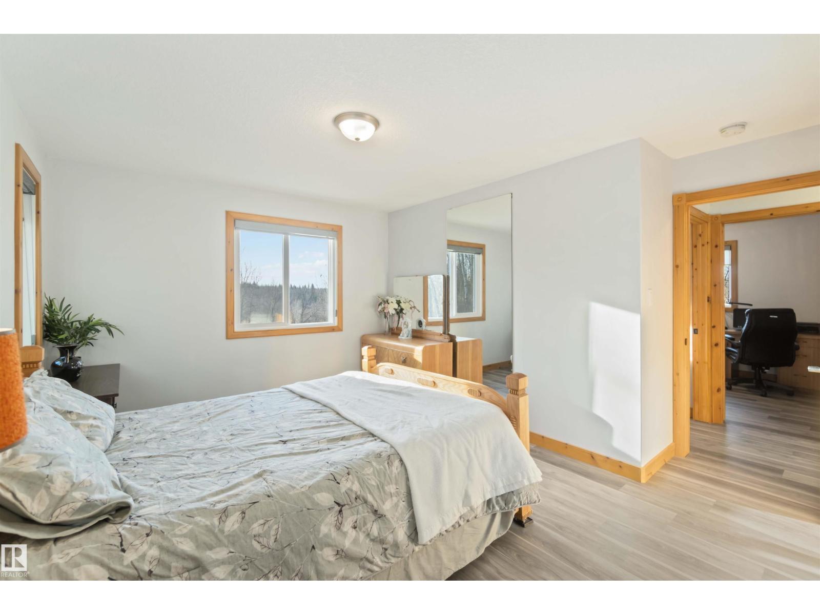 Discover the perfect balance of comfort, freedom & functionality. This hillside bungalow with a walkout basement sits on 6.13 acres of privacy and modern amenities. On the main level you’ll find 2 bedrooms & 2 full baths. The primary offers a spacious retreat with a walk-in shower & walk-in closet. The open-concept main floor kitchen, living & dining area features handcrafted SOLID PINE cabinetry, & a large island, gas fireplace & outdoor balcony access - perfect for family connection or weekend entertaining. Downstairs, the walkout basement includes cozy IN FLOOR heat, a wood-burning stove, & flex space for games, kids or extended family. Whether you’re a hobbyist, homesteader, or growing family, this home was designed to work as hard as you do. Outside, a heated triple garage gives you the freedom to take on projects year-round; from mechanics & woodworking to storing your toys. Mature trees, close proximity to the highway, a lake minutes away, this acreage blends modern comfort with everyday adventure. (id:63190)
