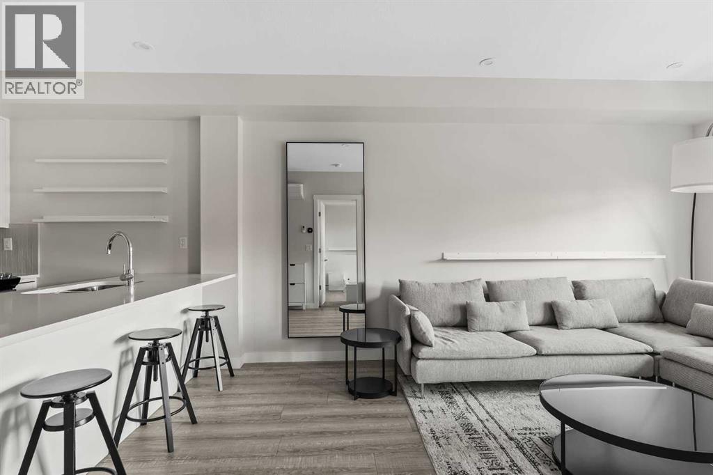 ALL FURNISHINGS INCLUDED! Move in TODAY! Welcome to Capella in the award-winning University District—where modern luxury, thoughtful design, and unbeatable convenience come together in one exceptional home. This beautifully appointed residence showcases a spacious, open-concept floorplan enhanced by elegant luxury vinyl plank flooring and expansive windows that frame views of Capella’s serene, landscaped courtyard. The gourmet kitchen is designed for both style and function, featuring full-height cabinetry, quartz countertops, and an oversized peninsula with seating for four—perfect for morning coffee, casual dining, or entertaining guests. The bright bedroom overlooks the private balcony (w/gas bbq hookup) and the lush courtyard below, offering a peaceful retreat at the end of your day. A spa-inspired 3 pce bathroom elevates daily routines with quartz countertops, a chic tile backsplash, an oversized mirror, and a sleek floating shelf for additional storage and style. Built with above-and-beyond sound attenuation, this home provides exceptional quiet and comfort—allowing you to fully enjoy the tranquility of the surrounding green space. Capella’s Built Green Gold certification ensures high energy efficiency and long-term cost savings, delivering a home that feels as smart and sustainable as it is luxurious. Residents of Capella enjoy premium amenities including secure underground parking, a private storage locker, ample visitor parking, and a fully equipped fitness centre. All of this is located in the heart of University District, one of Calgary’s most vibrant and walkable communities. Steps from your door, you'll find trendy restaurants, cafés, boutique shopping, fitness studios, grocery stores, a movie theatre, and everyday conveniences. The Alberta Children’s Hospital, the University of Calgary, and an abundance of parks and pathways are all just moments away. (id:63190)
