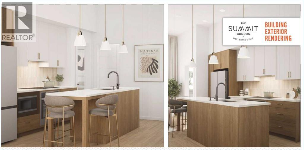 Introducing The Summit at Wentworth South, a modern 6-storey condominium community by Trico Homes, coming Summer 2028 to one of west Calgary’s newest master-planned neighbourhoods. Thoughtfully designed to combine style, comfort, and smart value. Constructed with durable concrete slab construction, this tech-smart building is designed for enhanced privacy, quiet living, and long-term quality. Interior features are carefully curated to provide modern comfort, including 9’ ceilings, creating bright and open living spaces filled with natural light. Each residence showcases luxury vinyl plank flooring, quartz countertops with undermount sinks, ceramic tile in bathrooms, and fully tiled bath and shower surrounds with 10mm glass enclosures. Contemporary lighting and plumbing fixtures add a refined finishing touch throughout.The kitchen is equipped with a premium stainless steel appliance package, including a counter-depth refrigerator, induction electric range, built-in dishwasher, chimney hood fan, and microwave, along with a waterline to the fridge for added convenience. Additional features include air conditioning, zebra blinds, full-size stacked washer and dryer, and a gas line connection on the balcony, making this home move-in ready and thoughtfully designed for everyday living. Buyers can further personalize their home by selecting from three designer colour palettes and three upgraded finish packages.Residents of The Summit will enjoy access to lifestyle-focused amenities including a fitness centre, indoor and outdoor gathering spaces, and a pet relief area, supporting both comfort and community connection.Ideally located in Wentworth South, this development offers convenient access to shopping, dining, services, parks, and pathways, while remaining just 15 minutes to downtown Calgary by C-Train or car. With close proximity to Stoney Trail and Bow Trail, commuting throughout the city is simple, and weekend trips to the mountains are easily accessible with Ban ff approximately 55 minutes away.The Summit at Wentworth South presents an exceptional opportunity to own a brand-new home in a vibrant west Calgary community designed for modern living. This is the Lorette Floor Plan. (id:63190)