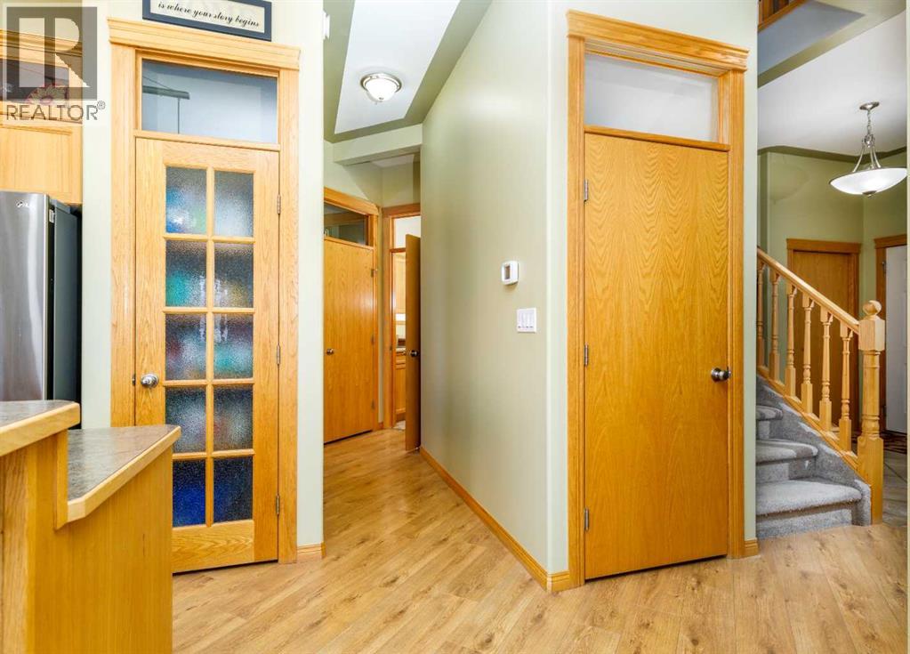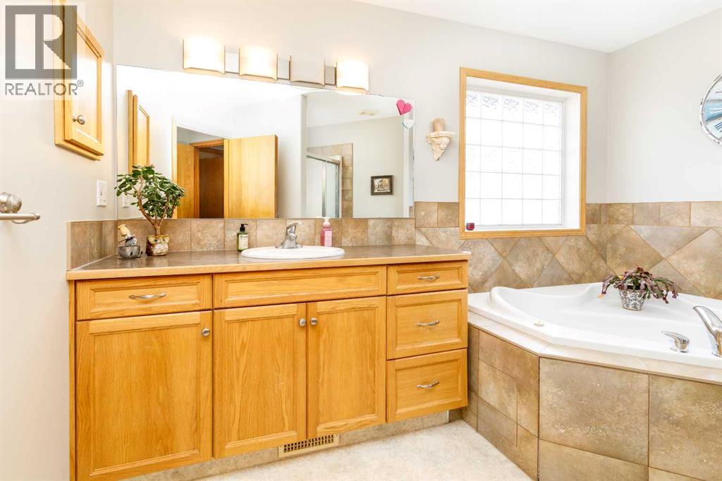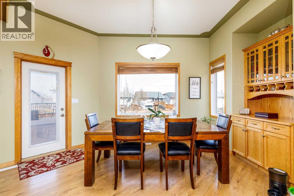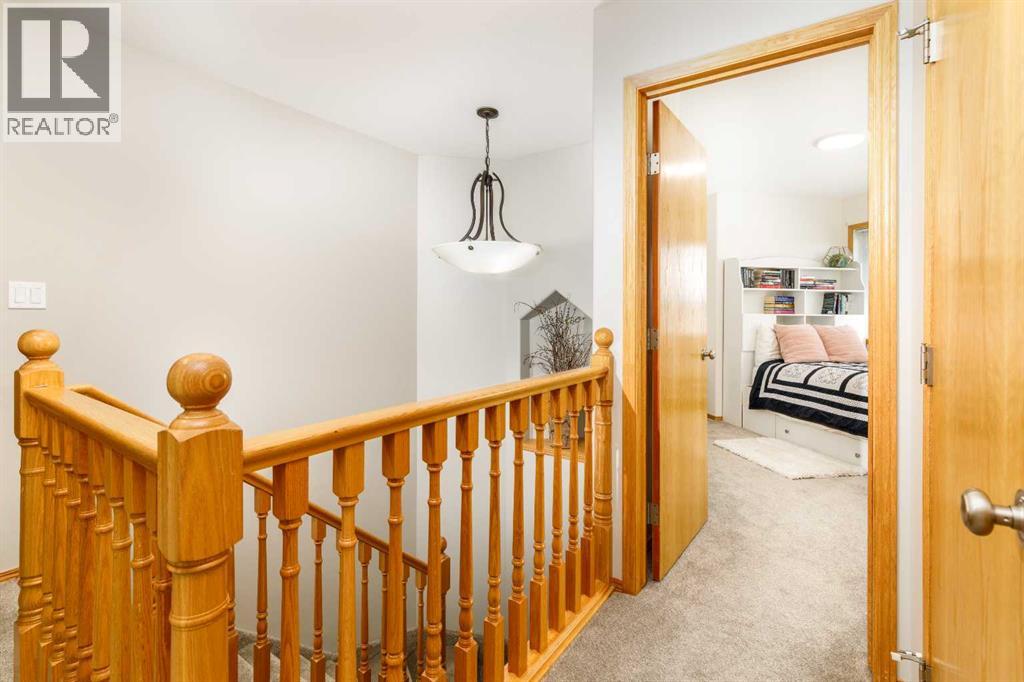 Fully finished 2-storey home offering 6 bedrooms and 4 bathrooms, including 4 bedrooms on the upper level—ideal for a growing family. The main floor features an open and spacious kitchen with an island, laminate flooring, and a nice sized dining area with direct access to the wraparound deck. Also find a good sized office and laundry room for convenience. This is perfect for everyday living and entertaining. The bright family room is highlighted by a cozy two-sided gas fireplace, large window overlooking the yard creating a warm and inviting atmosphere.The fully developed lower level provides additional living space, extra bedrooms, and flexibility for guests or family. Cosey theater area and in-floor heating creates a very comfortable area.Situated on a large pie-shaped lot in a quiet close, this property offers excellent outdoor living with a wraparound deck plus a second deck complete with a built-in hot tub—ideal for relaxing or hosting gatherings. The shed, playhouse combo is unique.This one-owner home shows pride of ownership throughout and includes a double attached garage, exposed aggregate driveway, and underground sprinkler system for added convenience. Located close to schools, parks, and walking paths, it offers a great combination of space, functionality, and location. (id:63190)