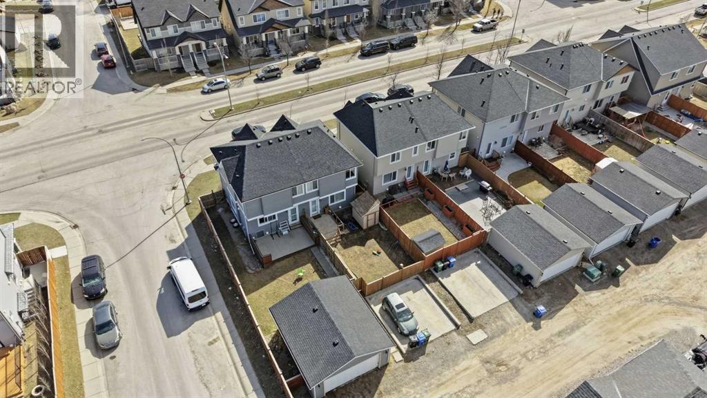 Welcome to this well-maintained half duplex in the family friendly community of Skyview Ranch, offering incredible value and convenience. Ideally located just a 6–8 minute walk to Apostles of Jesus School and Prairie Sky School, this home is perfectly positioned for young families. Enjoy easy access to nearby playgrounds, shopping, amenities, and major routes including Stoney Trail, Deerfoot Trail, and Calgary International Airport.The main floor features modern HARDWOOD FLOORING, ample living room space, and a functional kitchen with UPDATED STAINLESS STEEL APPLIANCES, creating a cozy and stylish space for everyday living. Upstairs, you’ll find THREE BEDROOMS, including a spacious primary retreat with its own PRIVATE ENSUITE including STAND-UP SHOWER, while the additional two bedrooms share a full bathroom. Two of the bedrooms have been FRESHLY PAINTED (2025), adding a clean and updated feel.The FULLY DEVELOPED BASEMENT offers excellent flexibility including a convenient KITCHENETTE with sink, cupboards and extra counter space, and an additional half bathroom, making it ideal for extended family, guests, or added living space. Basement laundry is tucked away from the bedrooms, providing a quieter and more practical setup.Step outside to a FULLY FENCED BACKYARD, complete with a POURED CONCRETE PAD already in place, saving you time and money for future garage development. Additional updates include a NEW ROOF and partial siding (2025), along with a NEWER HOT WATER TANK (2020), offering peace of mind for years to come.This home has been lovingly cared for and is ready for a new family to create lasting memories in a vibrant and growing community. (id:63190)