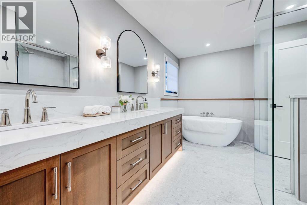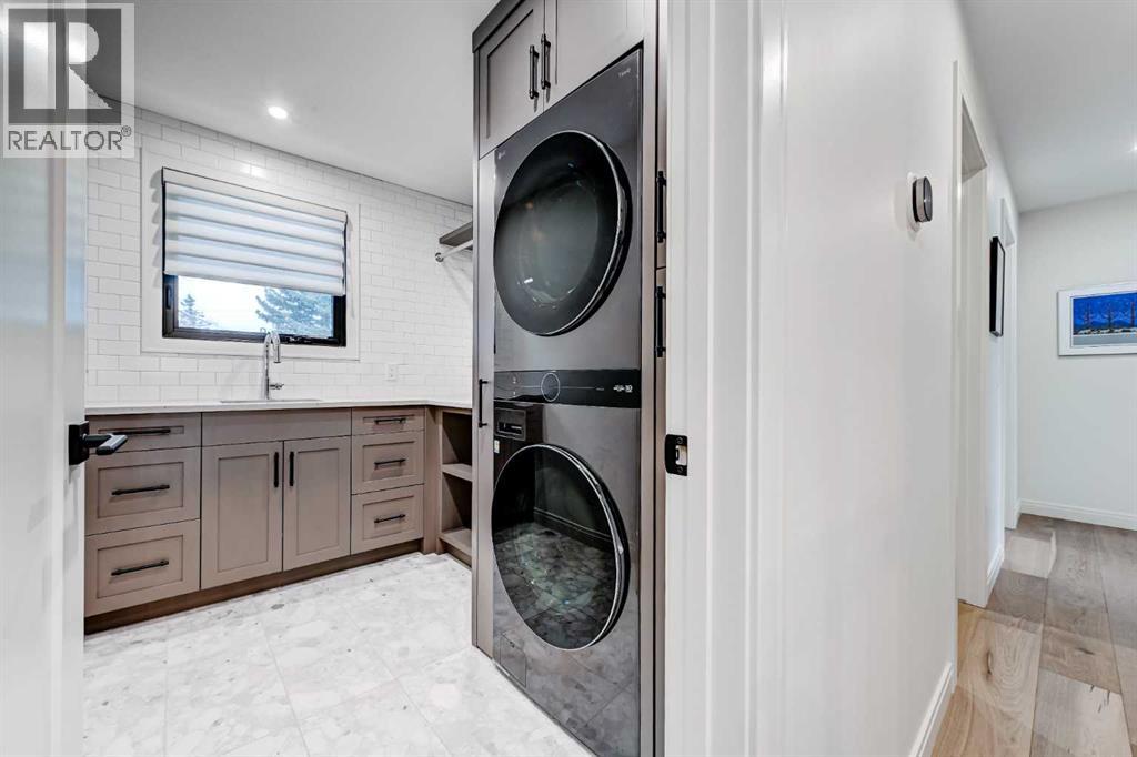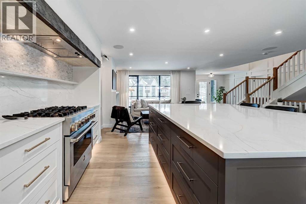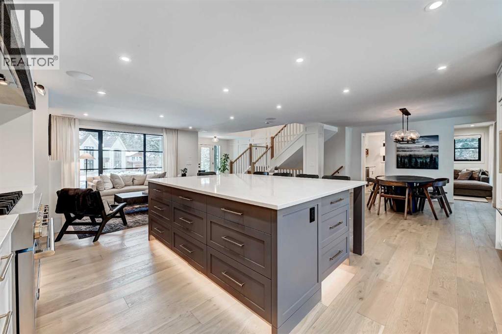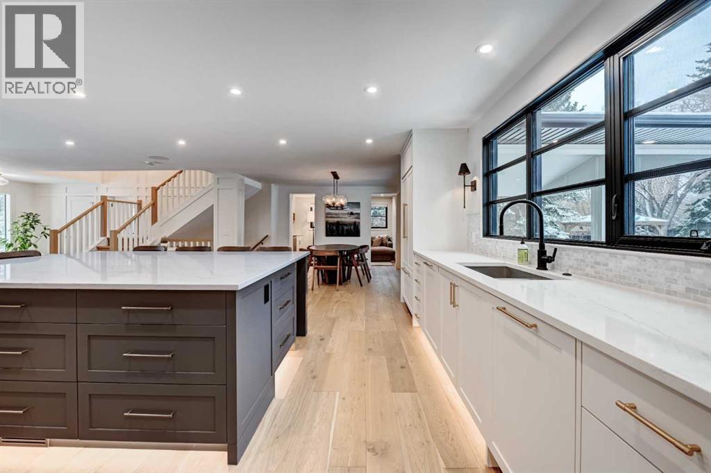 Rare opportunity in Lakeview Village to own a fully rebuilt home (2025) situated on one of the community’s largest lots—a 17,200 sq. ft. pie-shaped property backing directly onto the west side of North Glenmore Park. This exceptional custom residence offers approximately 3,700 sq. ft. of developed living space, with architecture by Andison Residential Design, interiors by Lori Sellmer, and construction by Ashwood Built. Over $1M has recently been invested in a complete transformation of this exclusive home. The property features 6 bedrooms, 3 full bathrooms, and 1 powder room, along with a new upper-level laundry room and an additional laundry area in the lower level. Nearly every component has been updated, including insulation, triple-pane windows, mechanical systems, plumbing, and electrical. Hardwood flooring extends throughout the main and upper levels. The main floor showcases an open-concept kitchen, dining, and living area, complemented by an enclosed office, additional den/flex space, powder room, and large mudroom including custom built-ins with direct access to the attached garage. The upper level offers 4 bedrooms and 2 full bathrooms, including a spacious primary suite with a large walk-in closet and full ensuite; all upper bathrooms feature in-floor heating. The lower level includes 2 additional bedrooms, a full bathroom, and a generous flex/recreation space. Exterior upgrades include new Hardie board siding with stone accents, new roof shingles, a covered Trex composite deck, and a fully installed irrigation system for both front and rear yards, along with direct gated access to North Glenmore Park. The attached garage is equipped with an additional electrical panel and is vehicle charging ready. Other notable features include central A/C, gas fireplace, custom window coverings, built in speakers in and out, water softener, kitchen drinking water filtration, on demand hot water, cover rear patio, & 200 amp service. This is a rare chance to own a move -in-ready home in a highly sought-after location. (id:63190)