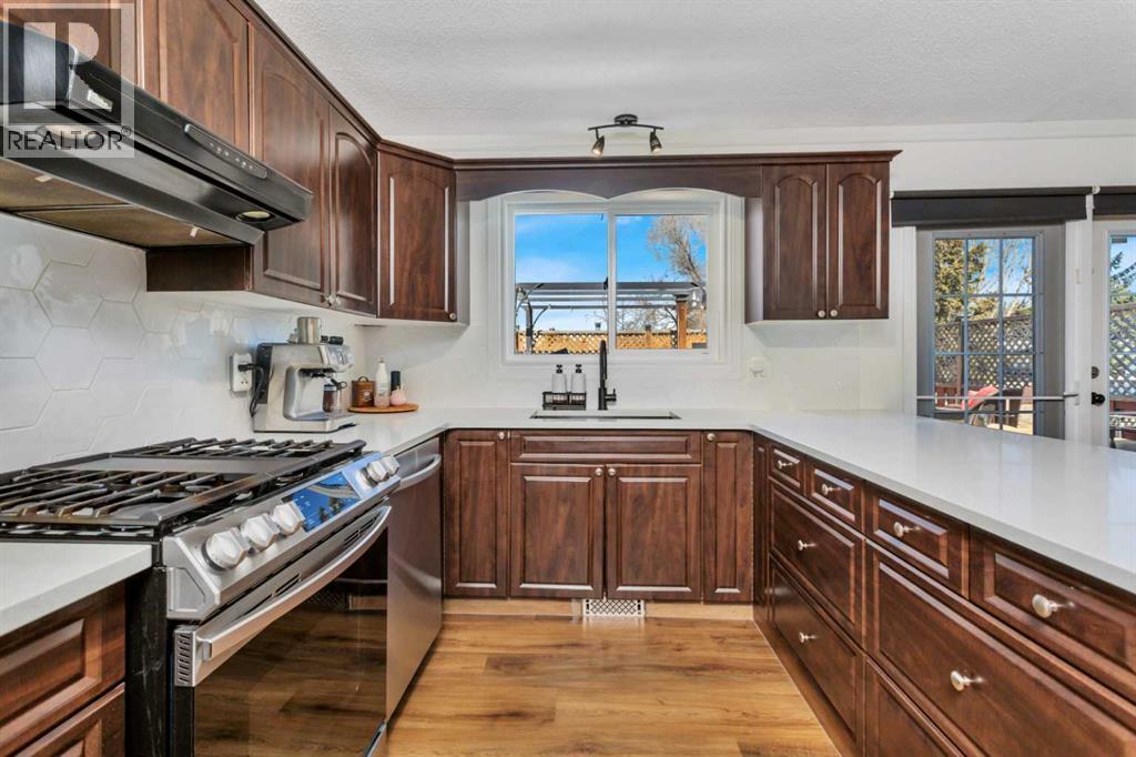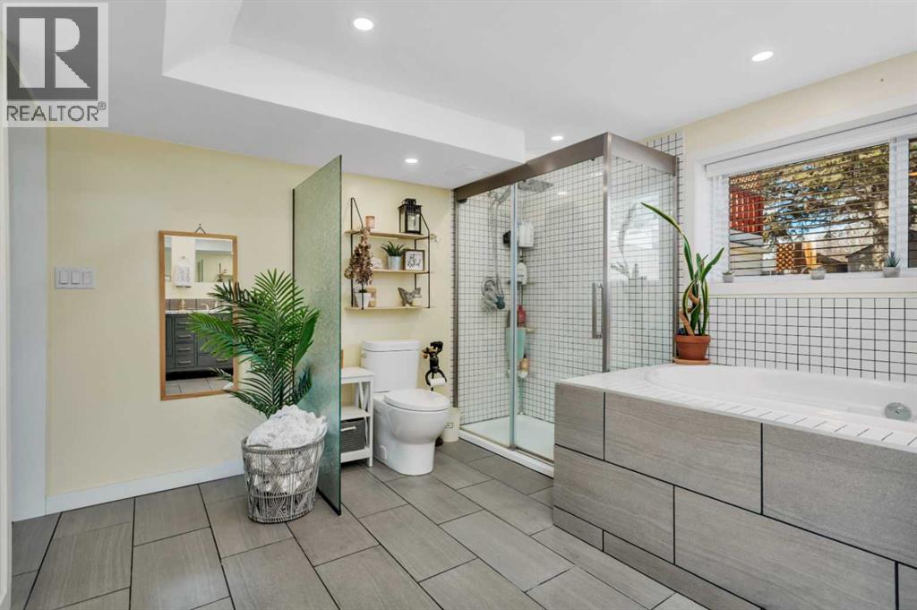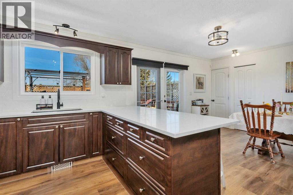 Tucked onto a beautifully mature lot, 11 Pearson Crescent offers the kind of privacy and curb appeal that’s hard to find. This updated bi-level feels warm, functional, and move-in ready, with thoughtful upgrades throughout and flexible space to fit real life.The main level is bright and inviting, finished in warm whites and rich vinyl plank, with fresh paint and trim. The kitchen is both stylish and practical, featuring new quartz countertops, a gas stove, stainless steel appliances, and plenty of room to gather—complete with a large dining area and two pantries. Garden doors lead directly out to the deck, while a big, bright south-facing window fills the living room with natural light.Down the hall are two bedrooms and two bathrooms. The larger bedroom offers a cozy, flexible space with an electric fireplace—perfect for relaxing or multi-use living. Across the hall is an updated 3-piece bath with a beautifully tiled walk-in shower. The second bedroom overlooks the backyard and includes the convenience of a 2-piece ensuite.The lower level offers even more space with three additional bedrooms, including the primary suite. This private retreat features a new built-in wardrobe and a stunning ensuite with dual sinks, a deep soaker tub, and a tiled walk-in shower. One of the additional bedrooms is currently set up as a family room, adding even more versatility. You’ll also find the laundry room here, complete with a sink and direct access to the garage.Just off the kitchen is an incredible 19’ x 23’ rooftop deck—private, sun-filled, and built for entertaining. It overlooks the fully fenced backyard, complete with a lush lawn, raised garden boxes, and a shed.The garage is tucked neatly beneath the deck, offering both parking and workspace with a built-in bench and electric heat—ideal for projects year-round. The driveway measures 34' long which gives the option for RV parking as well. Additional updates include a hot water tank (2024), asphalt shingles (2023), and r ecent kitchen improvements including flooring and countertops (2025), along with newer appliances.With up to five bedrooms depending on how you use the space, there’s room here to grow, work from home, or host guests. Located with easy access to Red Deer’s trail system, this home offers a great balance of comfort, function, and everyday living. (id:63190)