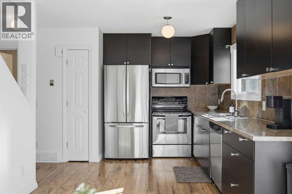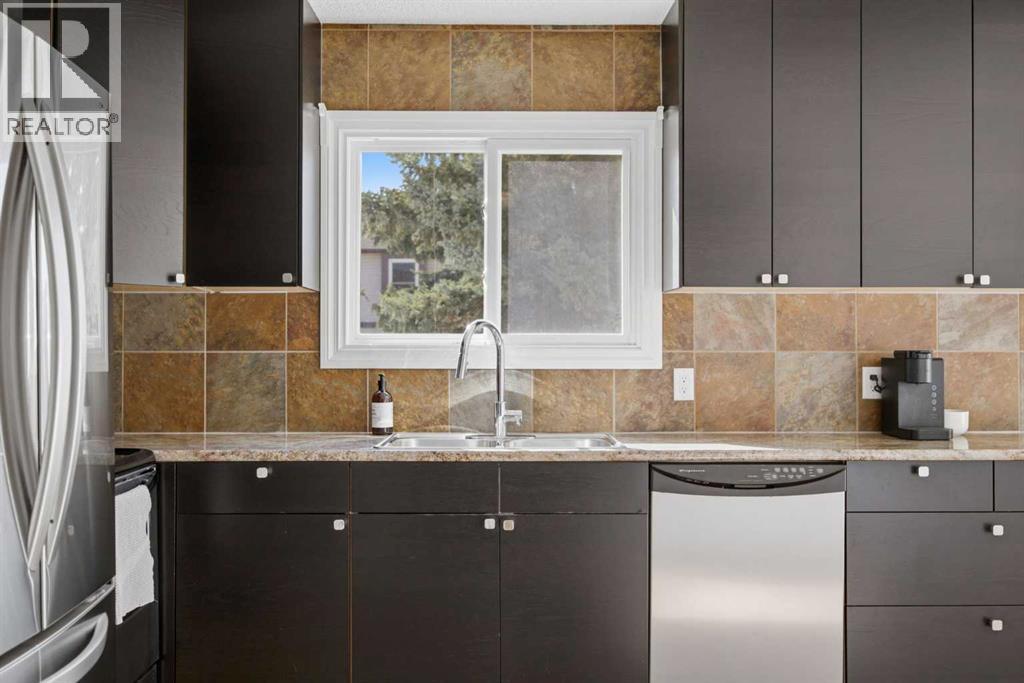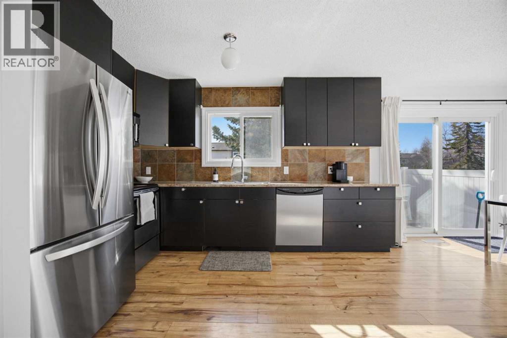 **Open House Saturday, April 25 12:00pm-3pm**| Don't miss this attractively priced and thoughtfully renovated 2-bedroom + den END UNIT boasting 1,168 square feet of bright, open living area. Recent updates provide peace of mind and modern appeal, including newer flooring, newer windows, a full kitchen renovation, and updated fencing. On the main floor you will be immediately greeted with a sunny and spacious living room flowing into renovated kitchen and dining room with sliding patio doors. The upstairs features a generous sized primary bedroom, 4 piece bathroom, second bedroom and a versatile den. Enjoy your south facing private backyard, which features a beautiful stamped concrete patio for a low-maintenance outdoor retreat.Fantastic walkability defines this location, as you are just steps away from coffee, groceries, fuel, entertainment, and parks. Living stays affordable with low condo fees and convenience is unmatched with your parking stall located just a couple of steps from your door. With unlimited street parking right outside, in-suite laundry, and plenty of storage, this home is as practical as it is charming. Flexible possession is available, so don't miss out—call your favorite Realtor TODAY for more information! (id:63190)