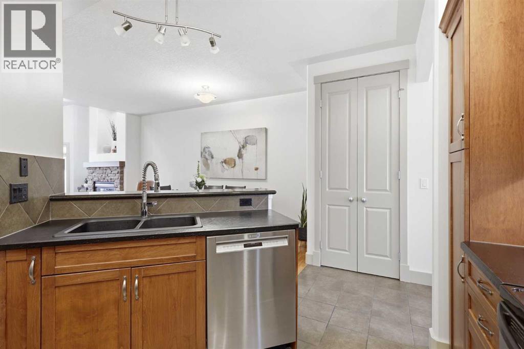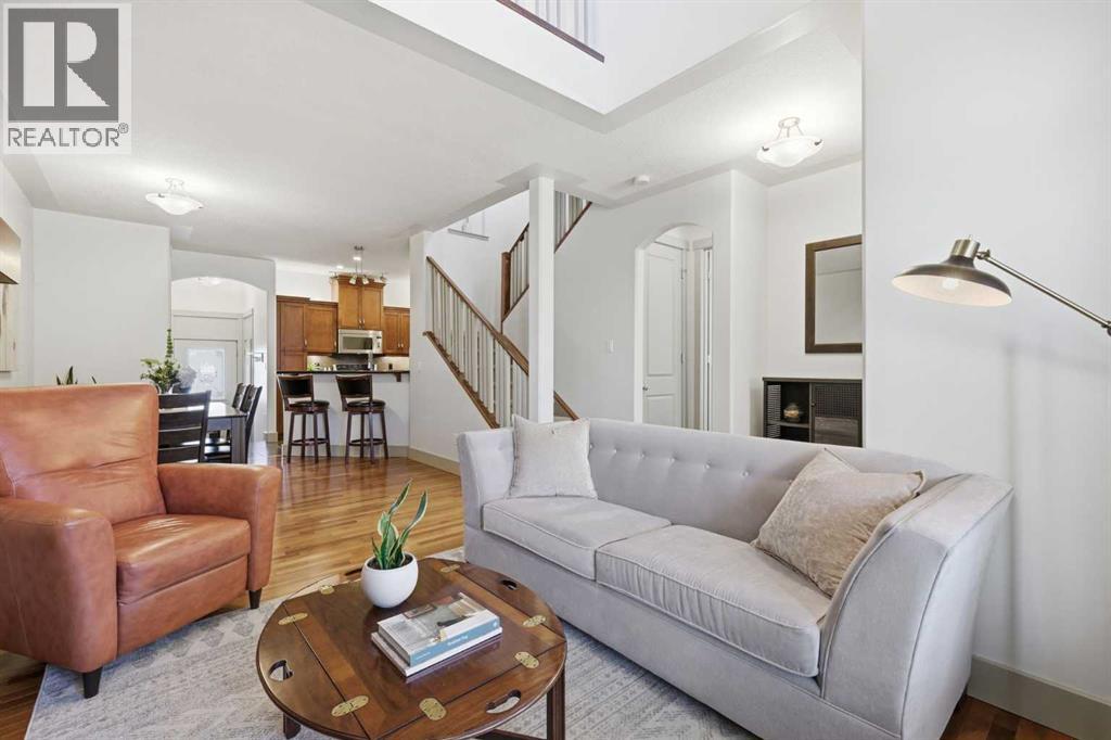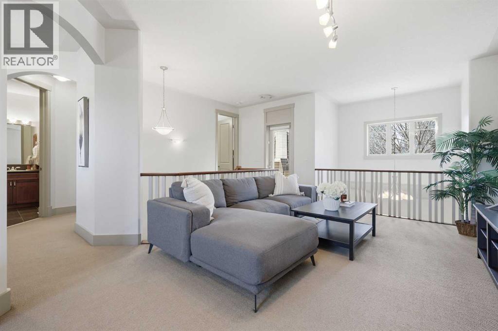 OPEN HOUSE SUN APRIL 26 FROM 2PM-4PM. Welcome to the Town Homes of Patricia Landing where heritage character meets modern urban living. This townhome offers 2 beds, 2.5 bathrooms, and over 1,700SqFt of exceptional living space. Meticulously maintained, freshly painted throughout, and recent updates, there is nothing left to do but unpack your bags! A covered front porch welcomes you into this thoughtfully designed home featuring an open floor plan, 9’ ceilings, and large south-facing windows that fill the space with natural light. The living room showcases vaulted ceilings, a cozy gas fireplace, and hardwood flooring, flowing seamlessly into a spacious dining area. The kitchen features stainless steel appliances including a fridge with ice/water dispenser, shaker styles cabinetry, and a breakfast bar for casual dining. The main floor primary suite offers a private retreat, easily accommodating a king-sized bed. Including a walk-in closet and a generous 5pc ensuite complete with a walk-in shower, soaker tub, and double vanity with plenty of storage. A main floor stacked washer/dryer, along with a 2pc powder room, and access to your DOUBLE ATTACHED GARAGE complete this level. Upstairs, you will find an open loft-style layout with 9’ ceilings and large south-facing windows, creating a bright and airy space with a spacious second bedroom, a 4pc bathroom, and a versatile office space. A large secondary family room, ideal for movie nights, with additional space for a potential third bedroom. This level also includes a covered deck extends your living space outdoors. The perfect spot for morning coffee or evening relaxation surrounded by mature, lush trees and the sound of singing birds. The basement is unfinished and ready for your personal touch, featuring 9’ ceilings, a future bathroom rough-in, and wet bar rough-in. The layout is ideally suited for an entertainer’s dream. Whether that’s a games room, theatre, gym, or additional living space, the possibilities are endle ss. Noteworthy updates include: Water Softener 2026, Furnace 2023, Washer/Dryer 2023, Microwave, Dishwasher, and Fridge all 2018.A very well managed complex, pet friendly, and offering added peace of mind with a new roof completed in 2024. What makes Garrison Woods so desirable is its rare balance of quiet residential streets with inner-city convenience. Tree-lined pathways, pocket parks, and playgrounds woven throughout the community. Just steps from the vibrant Marda Loop district—home to some of Calgary’s best cafés, restaurants, boutiques, and everyday essentials. With schools, grocery stores, fitness studios, restaurants, coffee shops & more. (id:63190)