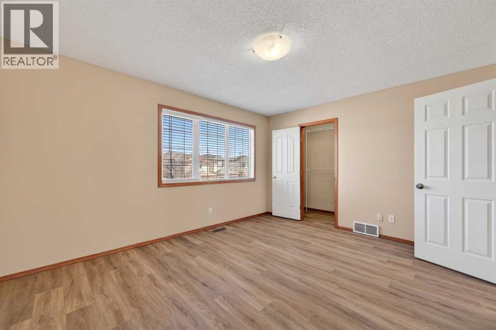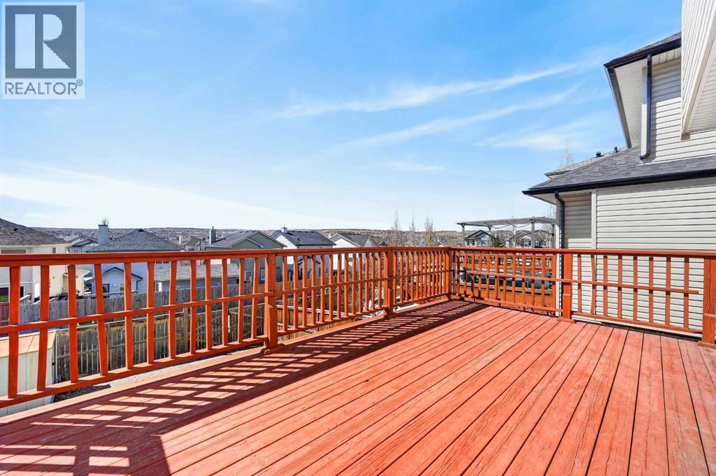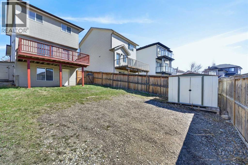 Welcome to this spacious and cozy 2-storey walk-out home in the sought-after community of Evanston, ideally located within walking distance to schools and transit. Offering 3+1 bedrooms and 2.5 bathrooms, this home features a thoughtful layout perfect for family living and entertaining. The large front porch leads into a welcoming foyer with a generous closet, opening into a bright great room and a functional kitchen with plenty of space for a large dining table and direct access to the oversized deck. Upstairs, you will find two good-sized bedrooms and a spacious primary bedroom with a walk-in closet and a 4-piece ensuite. The walk-out basement is designed for entertaining, complete with a sizable wet bar, a large bedroom with access to its own 4-piece bathroom, and a spacious recreation area that opens to the huge backyard. There is also ample room to add a future double garage. (id:63190)