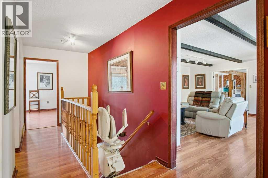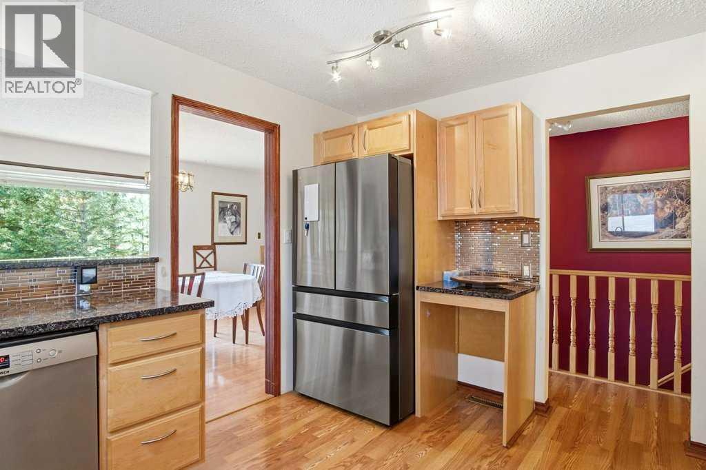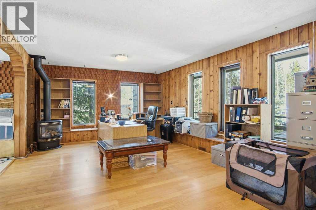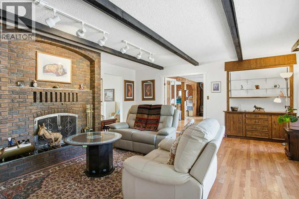 Tucked among mature trees on a beautifully maintained 1.51-acre parcel, this 1978 bungalow with a drive-under double attached garage offers privacy, space, and exceptional potential just minutes south of Water Valley.With over 2,000 sq ft on the main floor, the home features a spacious primary bedroom with 2-piece ensuite and walk-in closet, plus a recently renovated main bathroom with walk-in shower and stone countertops. The updated kitchen includes granite countertops, stainless steel appliances, and opens to a bright dining area with south-facing windows. A sunroom just off the dining space offers flexibility as a sitting area or additional bedroom.The cozy living room is anchored by a wood-burning fireplace, while a large west-end flex room with a free-standing gas fireplace provides endless options —office space, home gym, family flex space or easily converted into two additional large main floor bedrooms.The bright walkout basement includes one bedroom, a bathroom area under renovation which includes a former spa space with indoor hot tub potential and a working sauna—ready to be reimagined into a relaxing retreat. Additional features include a large laundry room, ample storage, and a cold room. The lower level also has a wood burning fireplace. Direct access to the garage is complemented by an attached workshop with its own exterior door.Located at the end of a quiet cul-de-sac, with Winchell Lake and nearby parks and recreation land just across the road, amazing golf course nearby - this property offers a rare opportunity in the sought-after Water Valley area. So much potential to add more bedrooms above grade. Brand new furnace, recent septic inspection, roof 2017. (id:63190)