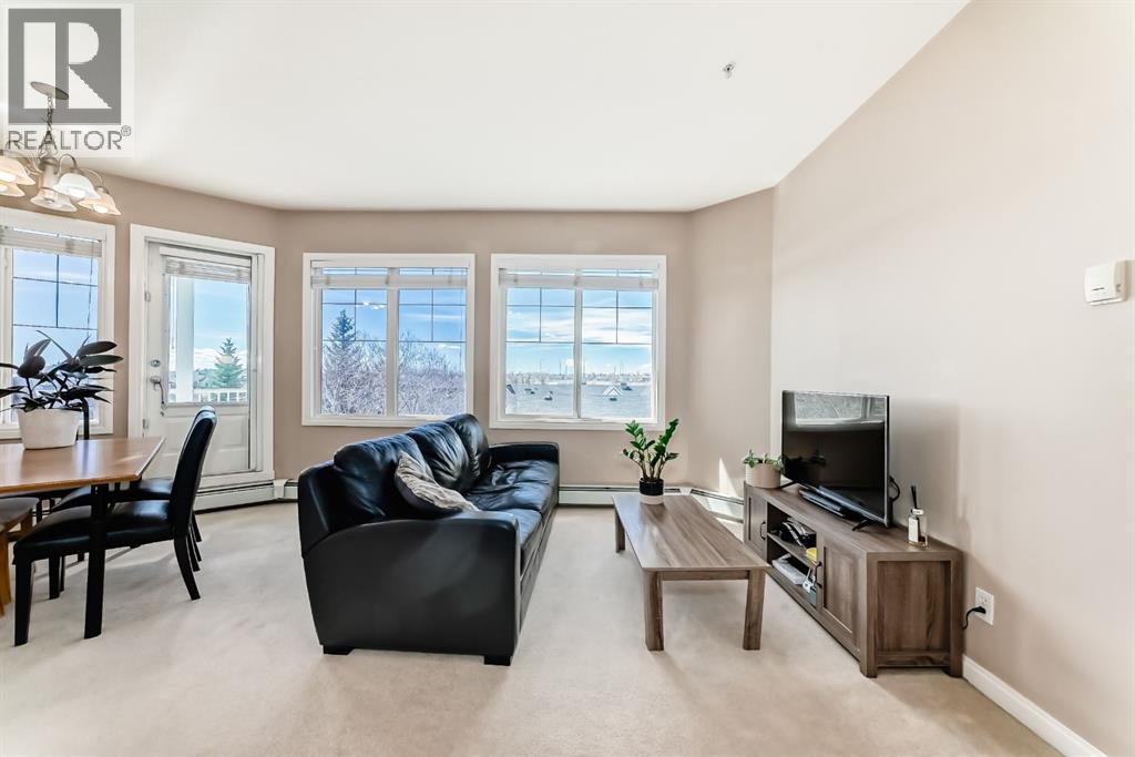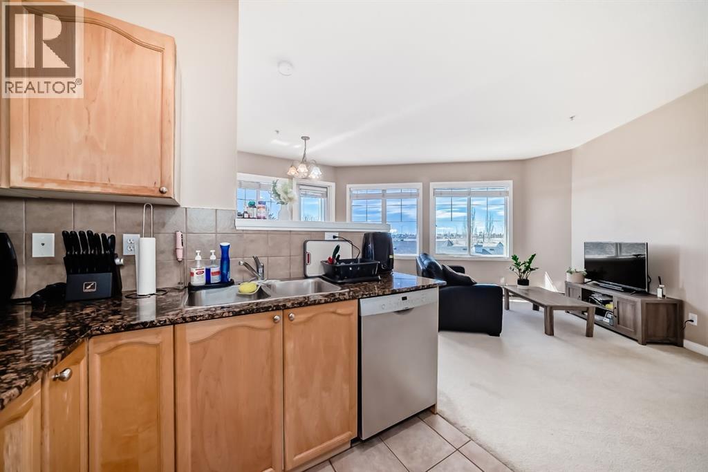 Caledonia on the Waterfront! Welcome home to this sun-drenched GEM featuring a prime south-backing location with breathtaking views of the Rockies. This 2-bedroom, 2-bathroom residence boasts an open-concept layout with soaring 9-foot ceilings and massive windows that flood the space with natural light. The chef-inspired kitchen shines with granite countertops, upgraded maple cabinetry, and ample storage. Designed for maximum privacy, the bedrooms are tucked on opposite sides of the unit; the primary suite features a private 4-piece ensuite, while the second bedroom offers a 3-piece ensuite with dual access to the living area. Enjoy the fresh air on your expansive south facing balcony that spans the dining area and second bedroom! Practicality is key with an in-suite washer and dryer, plus a premium oversized parking stall near the elevator that easily fits a full-sized SUV and a storage container. Residents enjoy luxury building amenities including a grand hotel-style lobby, resident social lounges, a library, and a party room with a kitchenette. Perfectly situated in a secure, pet-friendly building next to scenic ponds and walking paths, you are steps away from McKenzie Towne High Street and minutes from South Health Campus and major retail hubs. Don’t miss this rare combination of mountain views and maintenance-free living! (id:63190)