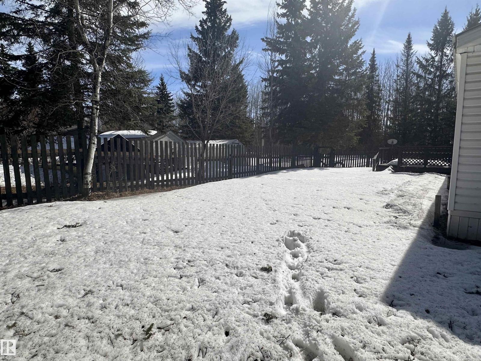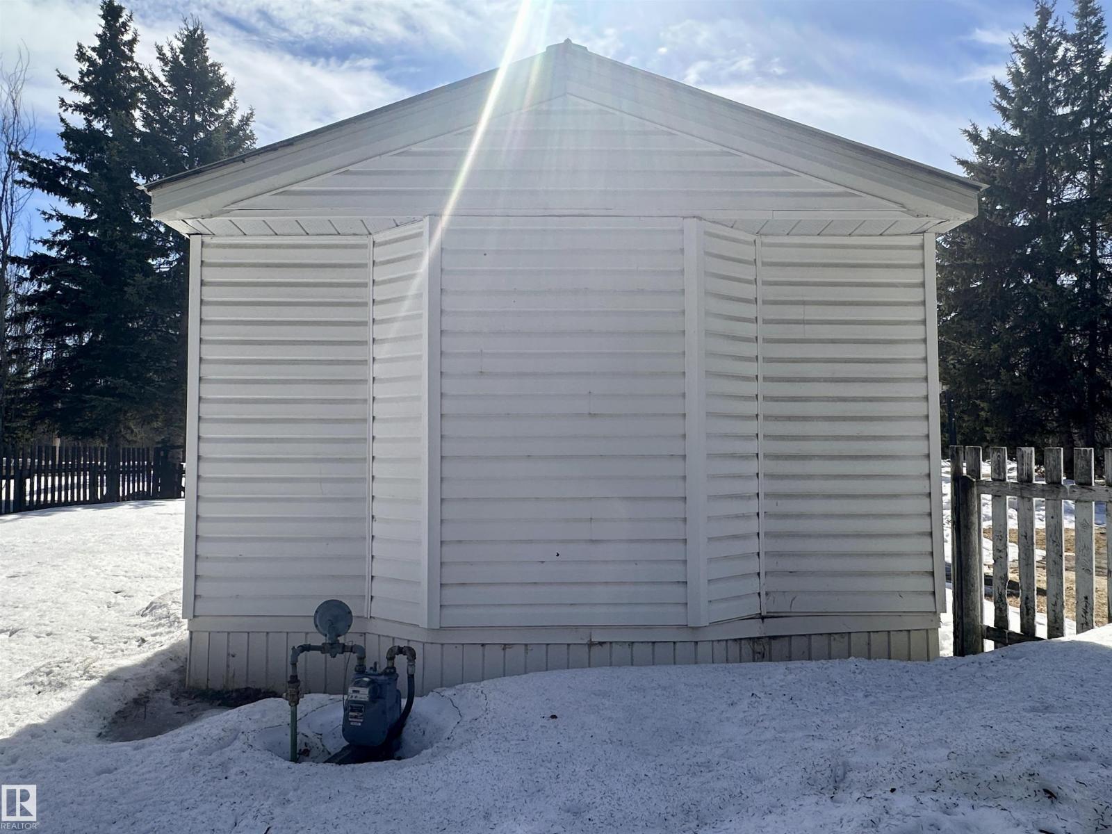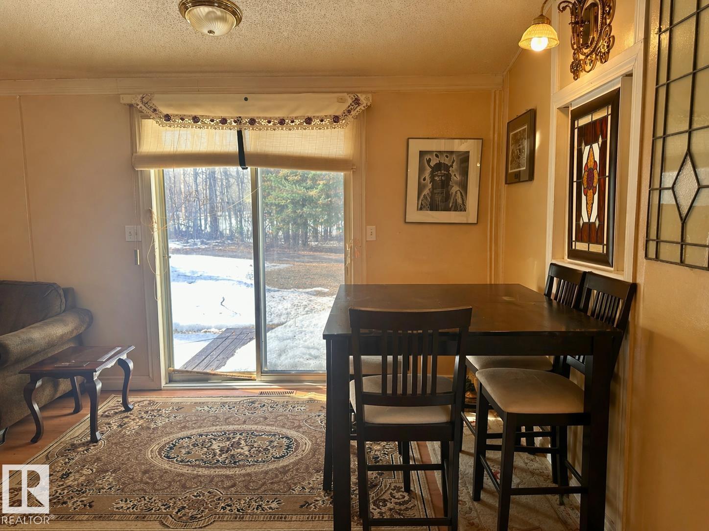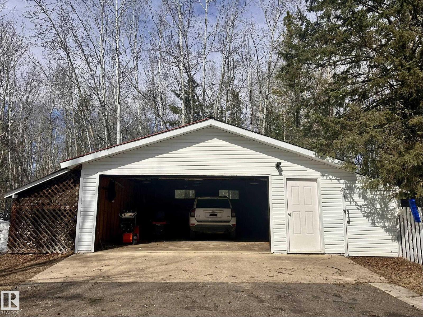 Front porch comfort in Fawcett! The double lot alone makes this property feel grand and private, thanks to the towering trees all around. Well maintained 1990 mobile home with garage. Step into large entry area, lots of space for your boots. Tons of natural light flood the kitchen and dining area, with skylight and patio doors. Beautiful South facing deck off the kitchen into the fully fenced back yard, ready for your furry friends. Very spacious living room equipped with a stunning and efficent wood burning stove. The primary bdrm is a good size, but the expansive 5 pc ensuite bathroom is a true prize. Two more bedrooms, and another 4 pc bath complete the home. Asphalt driveway to double garage, with lean-to. Serene and private, Fawcett is a beautiful community to get away from the city with lots to offer; a general store, hall, baseball diamonds and lots of community living! Take a little serene walk down to the creek to appreciate the train bridge. Only 15 minutes to Cross Lake Provincial Park. (id:63190)