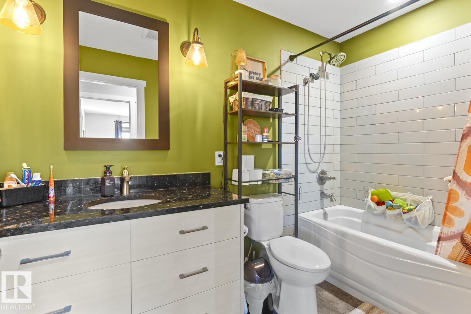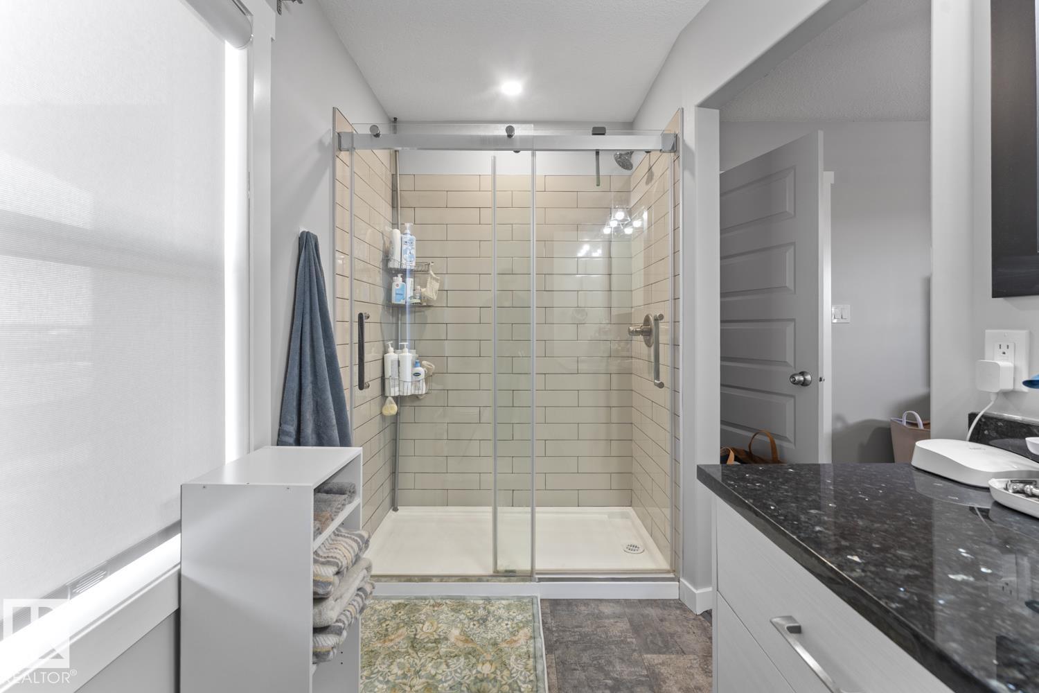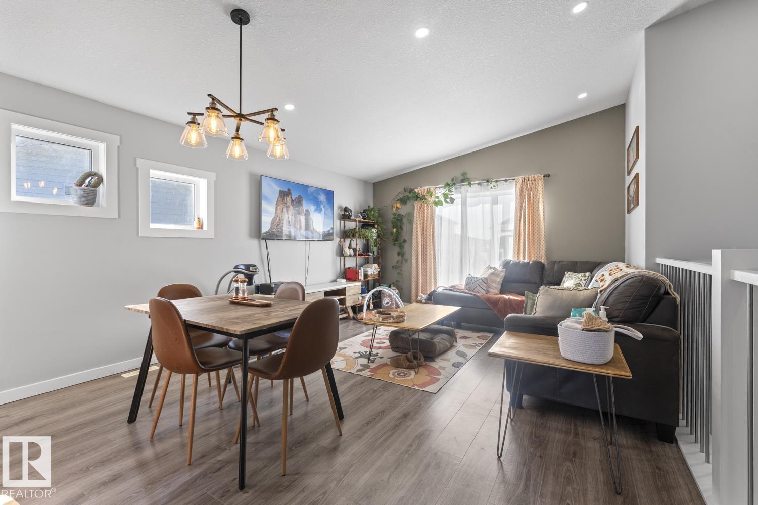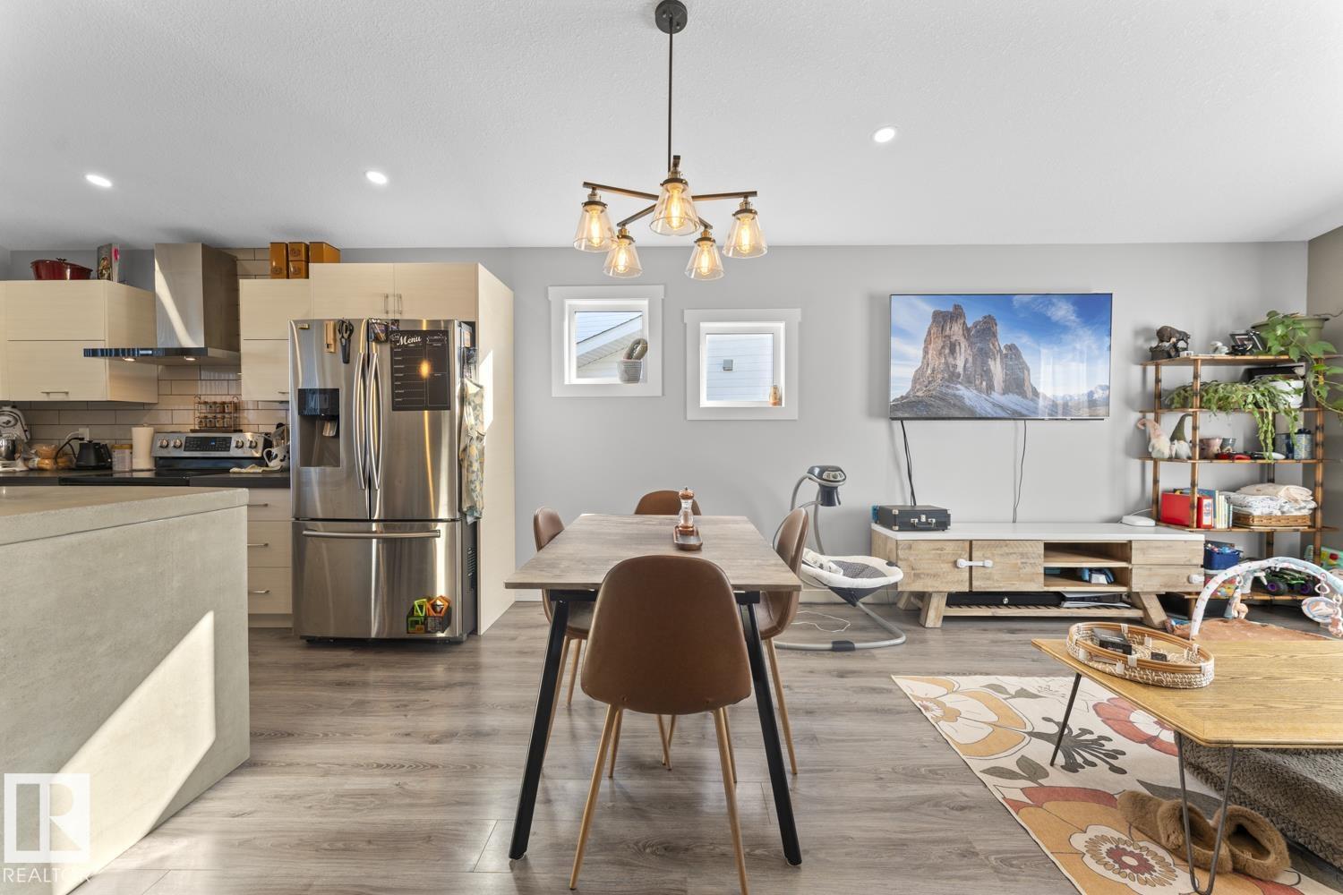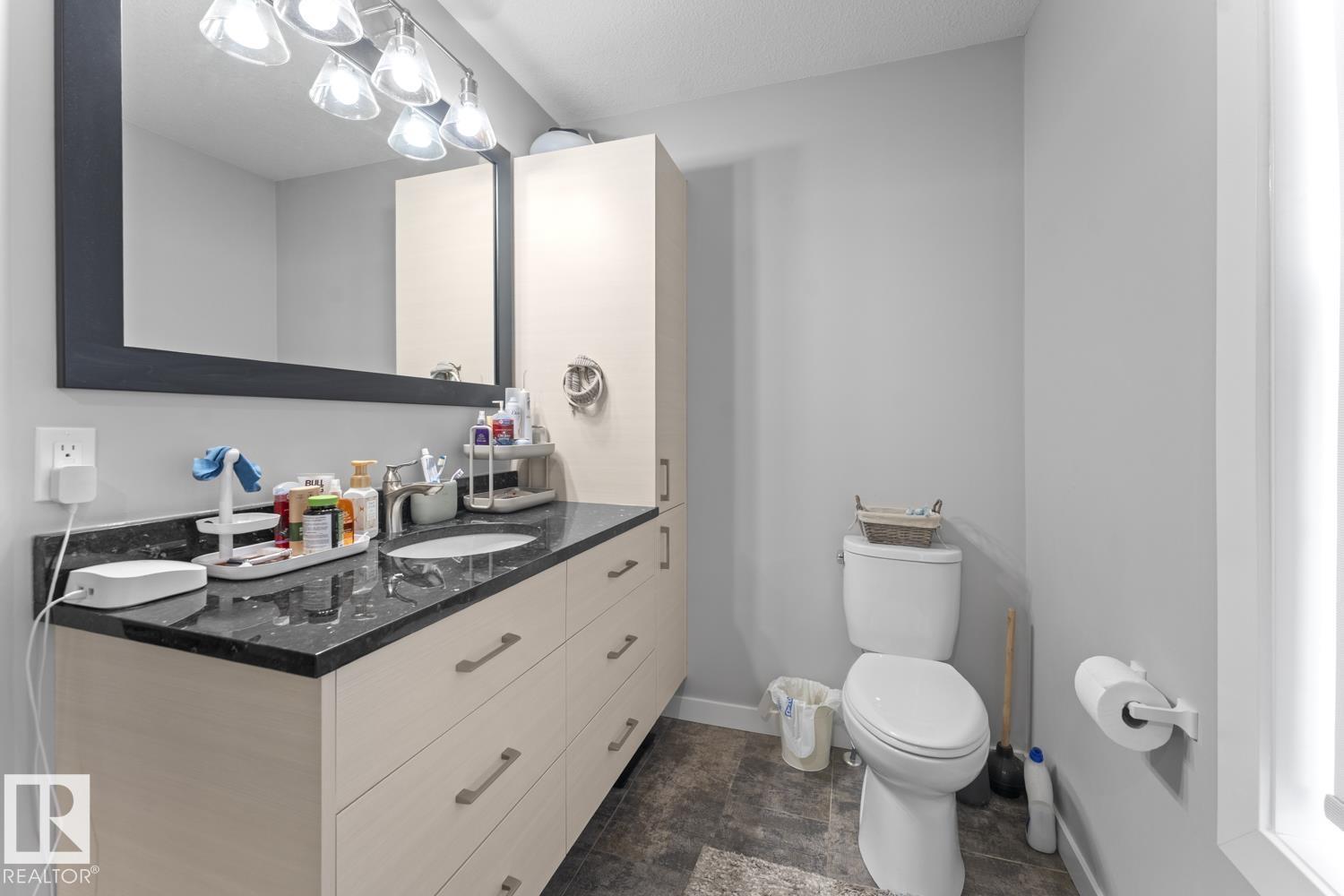 This luxurious modern home is located in sought after Lakewood Estates Subdivision in Cold Lake North, built in 2018 with 4 bedrooms and 2.5 bathrooms. Before you even enter this home, you know it has top quality finishes and design! Single pitch metal roofing, hardie board and metal exterior with a new stone front facade, stamped concrete boarders along the massive driveway. Inside of this modified bilevel you'll find an open concept main floor living space with vaulted ceilings, kitchen with oversized island with concrete waterfall feature, ample dining space and a nice bright living room with west facing windows. One bedroom just off the main floor and two up including the spacious primary bedroom equipped with a 3 piece ensuite with a nice tiled shower. Lower level is fully finished with heated stamped concrete floors throughout, 4th bedroom, rec room and laundry room with a 2 piece bathroom, lastly there is access to the garage walk up. Garage is fully finished and heated with additional work area. (id:63190)