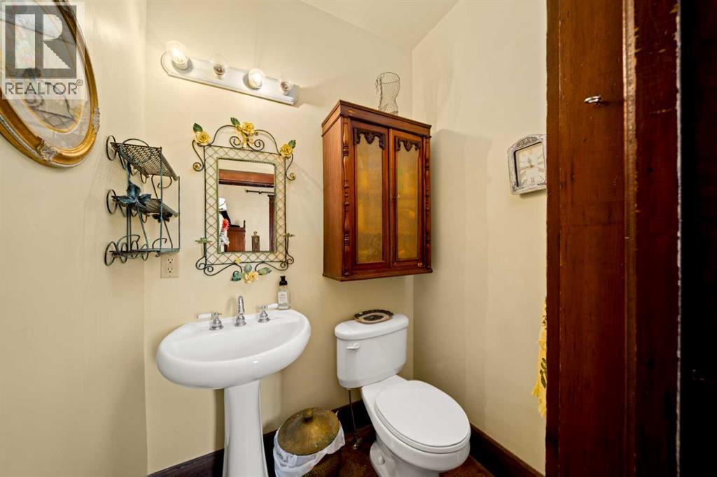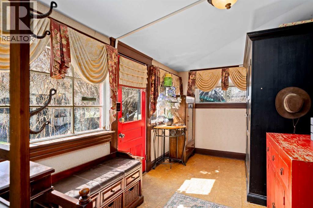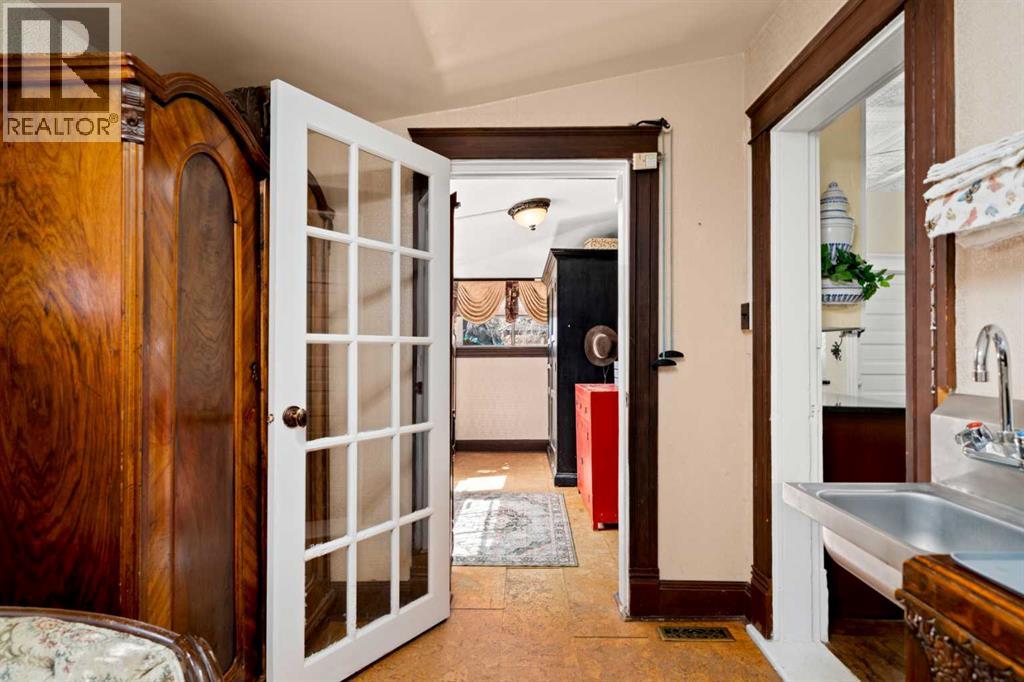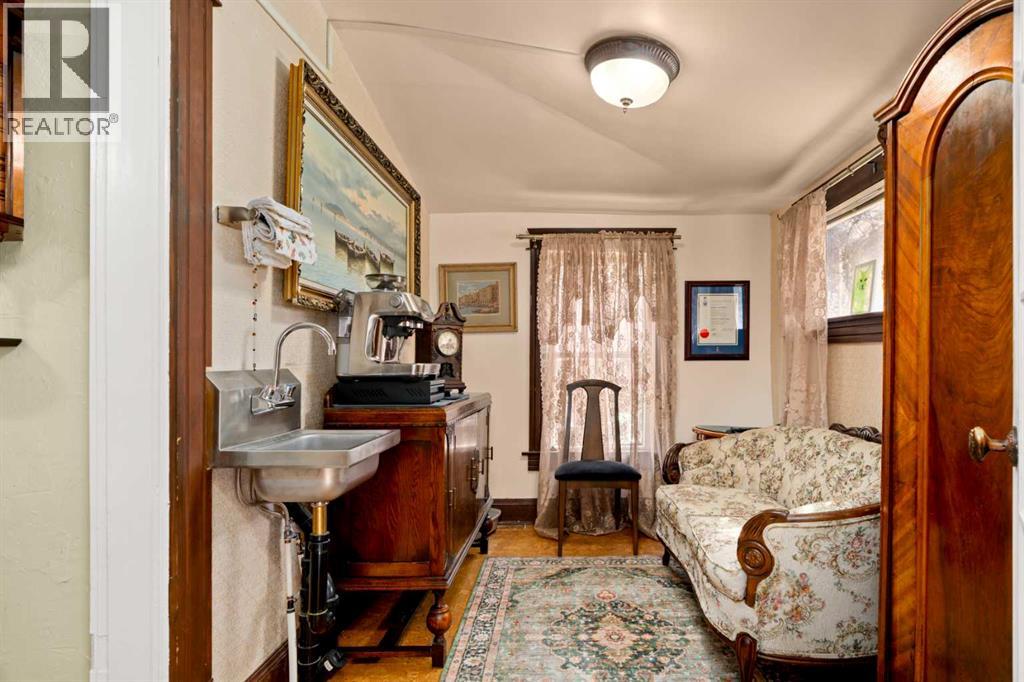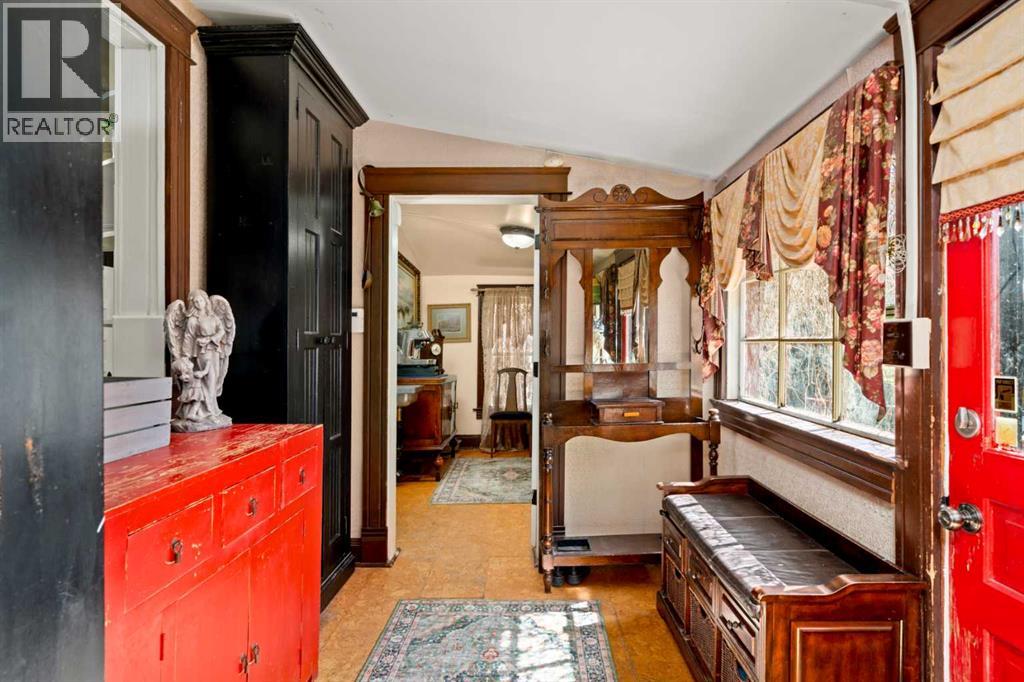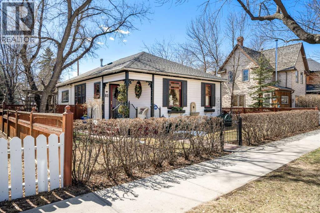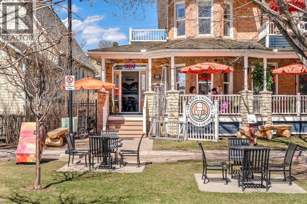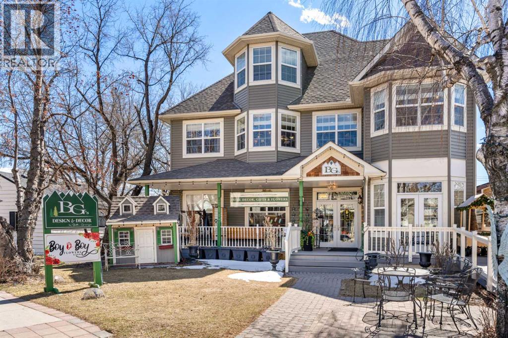 A rare heritage gem in the heart of downtown Okotoks Set along Elma, a charming tree lined street, this storybook home is filled with timeless character and endless possibility. Once home to a boutique salon and antique store, this property lends itself beautifully to a variety of uses including a residence, retail, office space, café, tea house, restaurant, salon or bed and breakfast.Original hardwood floors, vintage doors and hardware, and stunning stained glass windows create a sense of warmth and history the moment you step inside. The main living space is bright and open, flowing seamlessly into a thoughtfully updated kitchen complete with granite countertops, stainless steel appliances, and a gas range.There are two flexible spaces perfect for hobbies, work from home, or creative pursuits. The front bedroom is especially unique, featuring its own exterior entrance and a convenient two piece bath, making it ideal for a home based business or private client space.Tucked into the garden, the detached guest quarters offer in floor heat and their own private patio, surrounded by greenery. A truly special space for visitors or future opportunity.Romantic, whimsical, and rich with character, this is more than a home, it is an opportunity to be part of Okotoks history while creating something truly special of your own.Showings are now underway. We warmly invite you to book your private viewing and experience the home and its endless possibilities firsthand. (id:63190)