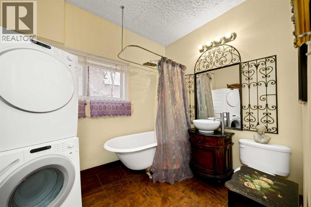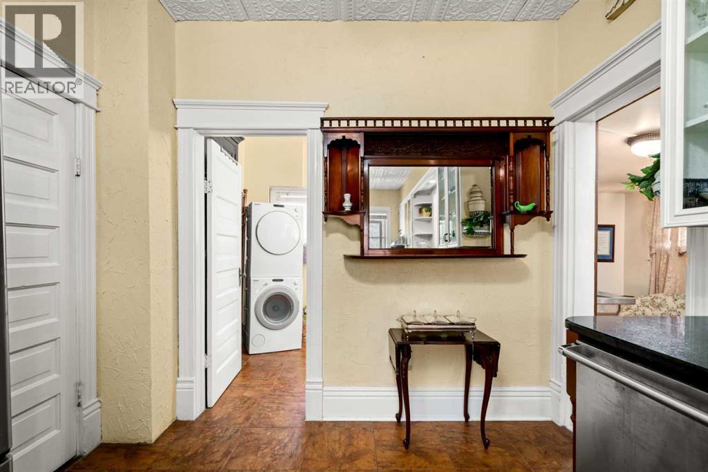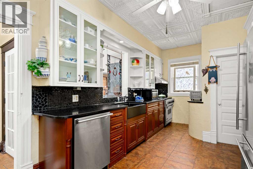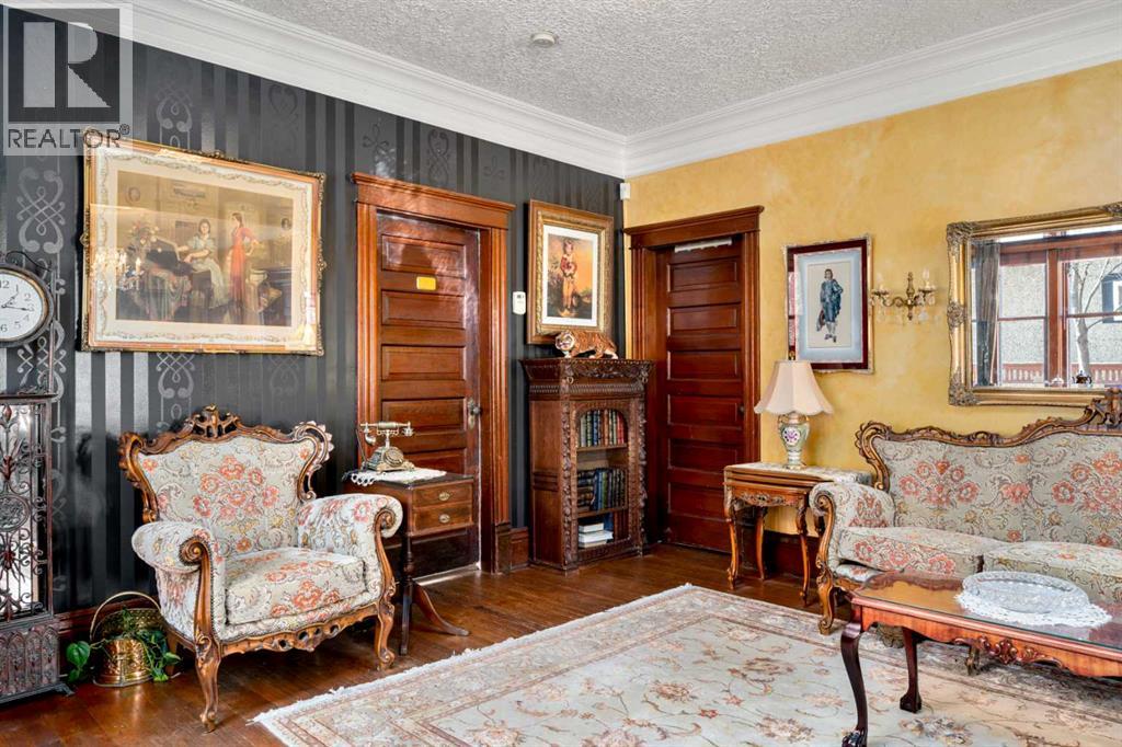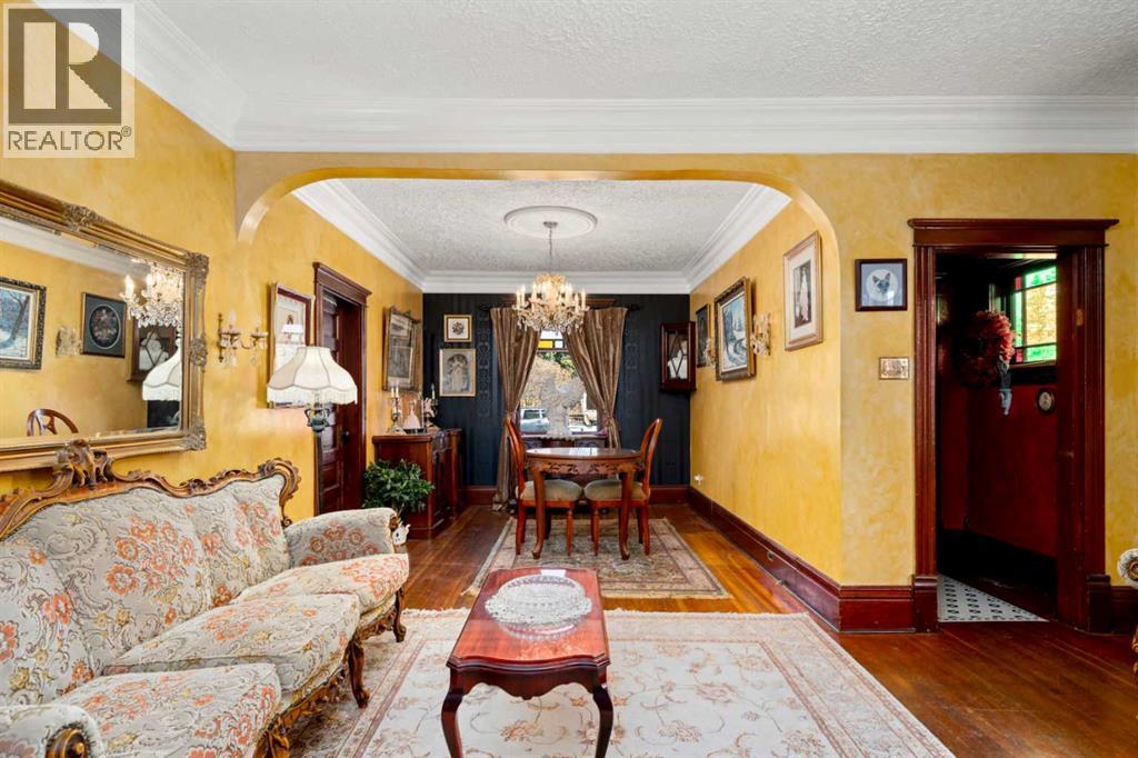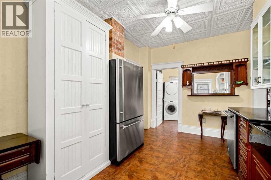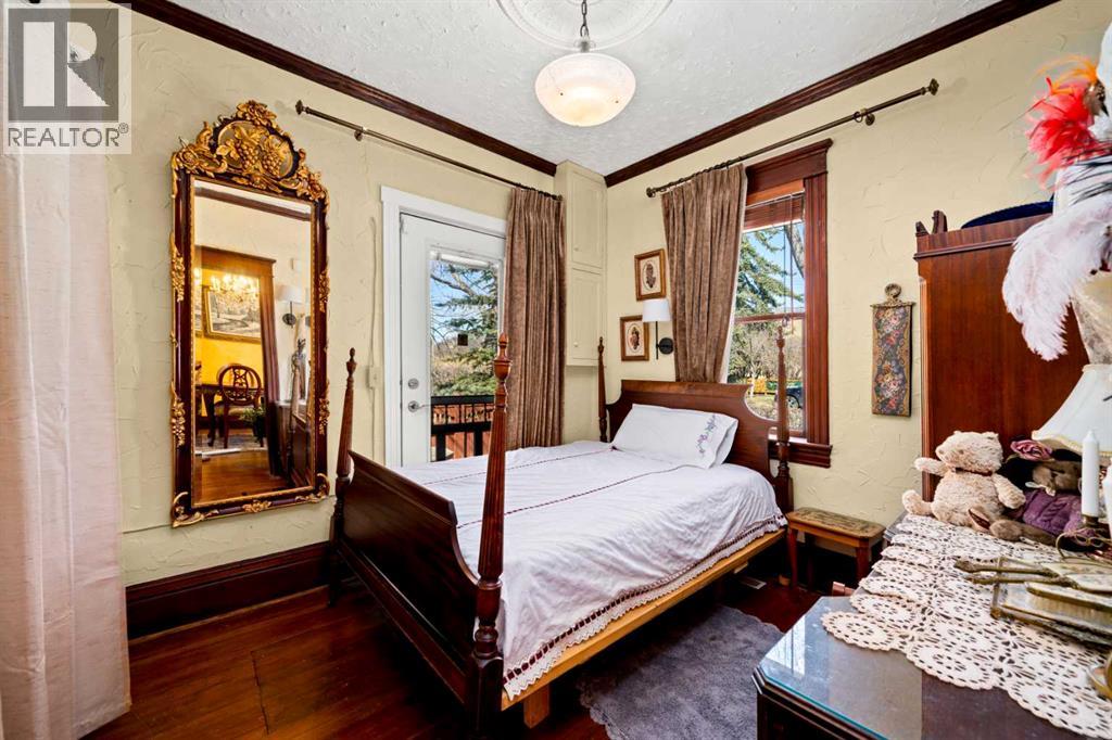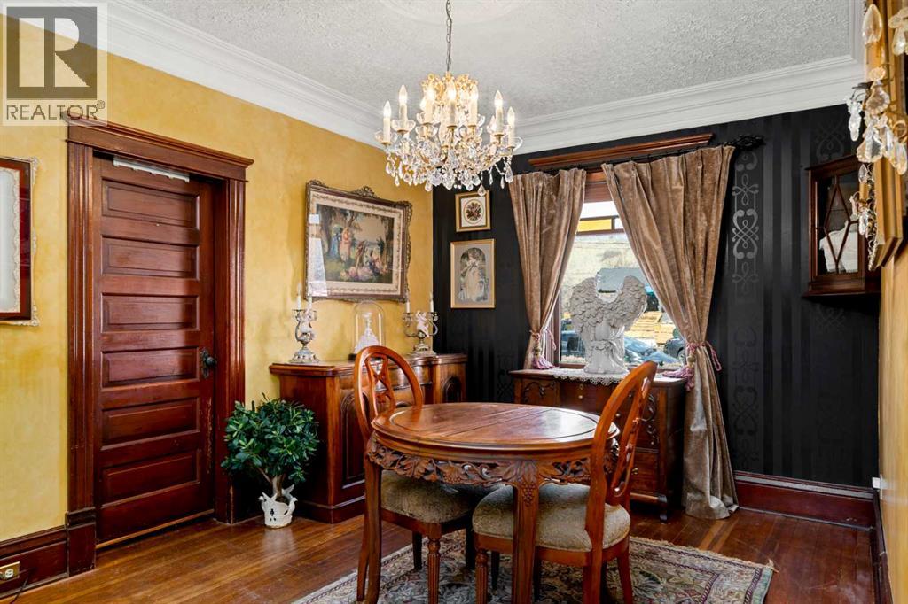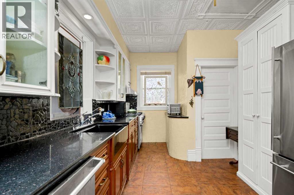 A rare heritage gem in the heart of downtown Okotoks Set along Elma, a charming tree lined street, this storybook home is filled with timeless character and endless possibility. Once home to a boutique salon and antique store, this property lends itself beautifully to a variety of uses including a residence, retail, office space, café, tea house, restaurant, salon or bed and breakfast.Original hardwood floors, vintage doors and hardware, and stunning stained glass windows create a sense of warmth and history the moment you step inside. The main living space is bright and open, flowing seamlessly into a thoughtfully updated kitchen complete with granite countertops, stainless steel appliances, and a gas range.There are two flexible spaces perfect for hobbies, work from home, or creative pursuits. The front bedroom is especially unique, featuring its own exterior entrance and a convenient two piece bath, making it ideal for a home based business or private client space.Tucked into the garden, the detached guest quarters offer in floor heat and their own private patio, surrounded by greenery. A truly special space for visitors or future opportunity.Romantic, whimsical, and rich with character, this is more than a home, it is an opportunity to be part of Okotoks history while creating something truly special of your own.Showings are now underway. We warmly invite you to book your private viewing and experience the home and its endless possibilities firsthand. (id:63190)