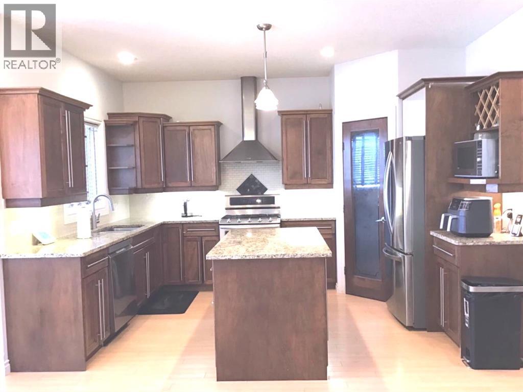 The "Executive Family Retreat" Luxury Meets Lifestyle: Stunning 5-Bedroom home, Backing onto Scenic WalkwaysWelcome to a home where space, style, and location converge. This impressive two-story residence offers over 3,100 sq. ft. of meticulously developed living space, perfectly situated on a massive 9,617 sq. ft. lot. From the moment you step inside, the abundance of natural light and open-concept design create an immediate sense of "home."The chef-inspired kitchen is the heart of the main floor, featuring sleek granite countertops, a central island, and a walk-in pantry. It flows effortlessly into the living area, where a cozy gas fireplace sets the mood for quiet evenings. For those working from home, a dedicated main-floor office provides the perfect quiet retreat.Upstairs, the layout is designed for family life. A versatile bonus room with built-in speakers is ready for your home theatre or a secondary lounge. The primary suite serves as a true sanctuary, boasting a generous walk-in closet and a spa-like 4-piece ensuite with a deep jet tub. In total 5 generous sized bedrooms with great storage space. With 4 bathrooms, 3 full- 4 piece bathrooms, as well as 1-2 piece powder room on the main. The fully developed basement is an entertainer’s dream, featuring a generous sized family room, two additional bedrooms, a full bath, and a dedicated cold storage/wine cellar. Outside, the perks continue with a beautifully landscaped yard, maintenance-free fencing, and multiple patio areas. Backing onto a scenic walkway that leads directly to the golf course and ball diamonds, you are just steps away from outdoor adventure.Key Features:•Parking & Storage: Heated 24'x25' double garage + dedicated RV parking.•Comfort: Central A/C and cozy in-floor heating.•Outdoor Living: Large deck with gas BBQ hookup aggregate patio and exposed aggregate driveway.•Bonus Inclusions: All appliances, window blinds, shed, and the bonus room TV/mount, Child's Play CenterGreat Home, Great Location, Great Lot. This one has it all! (id:63190)