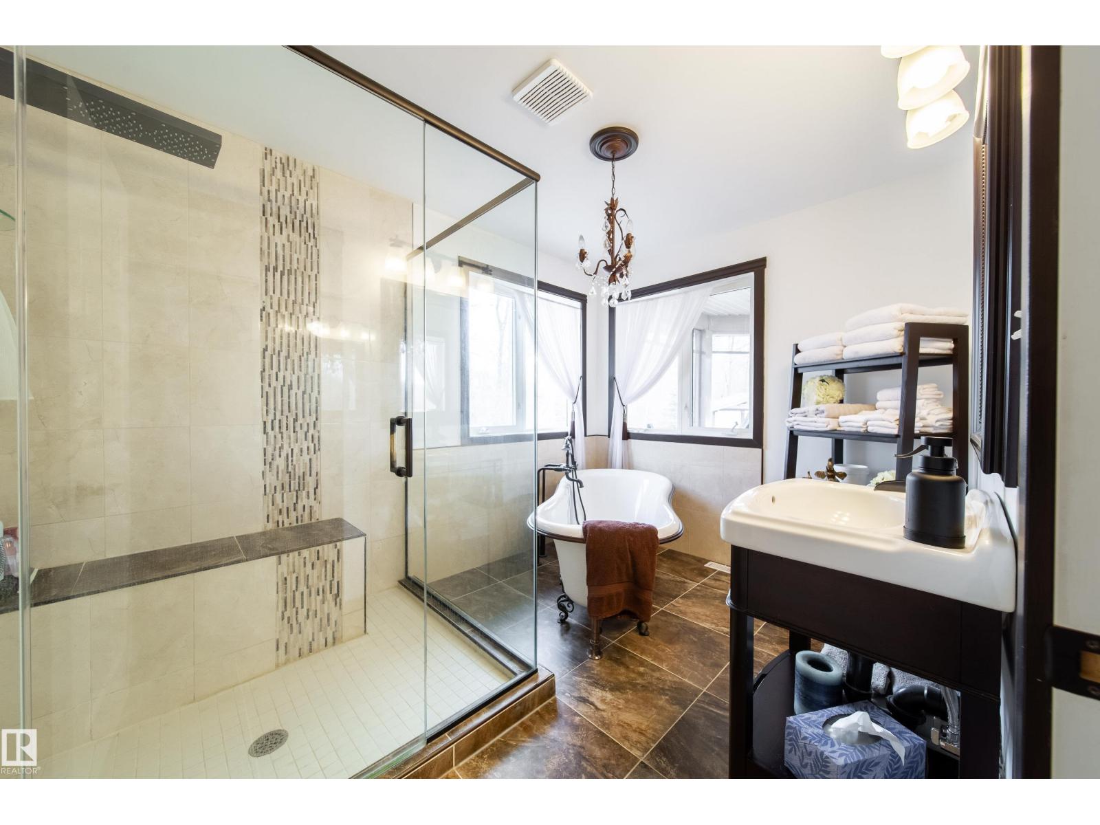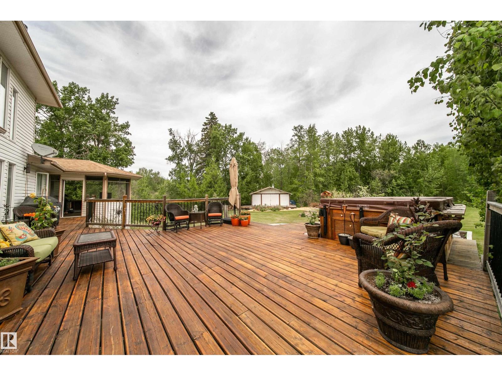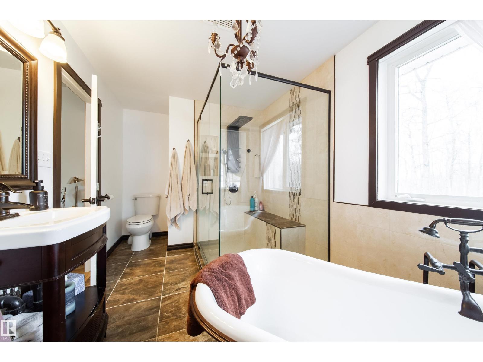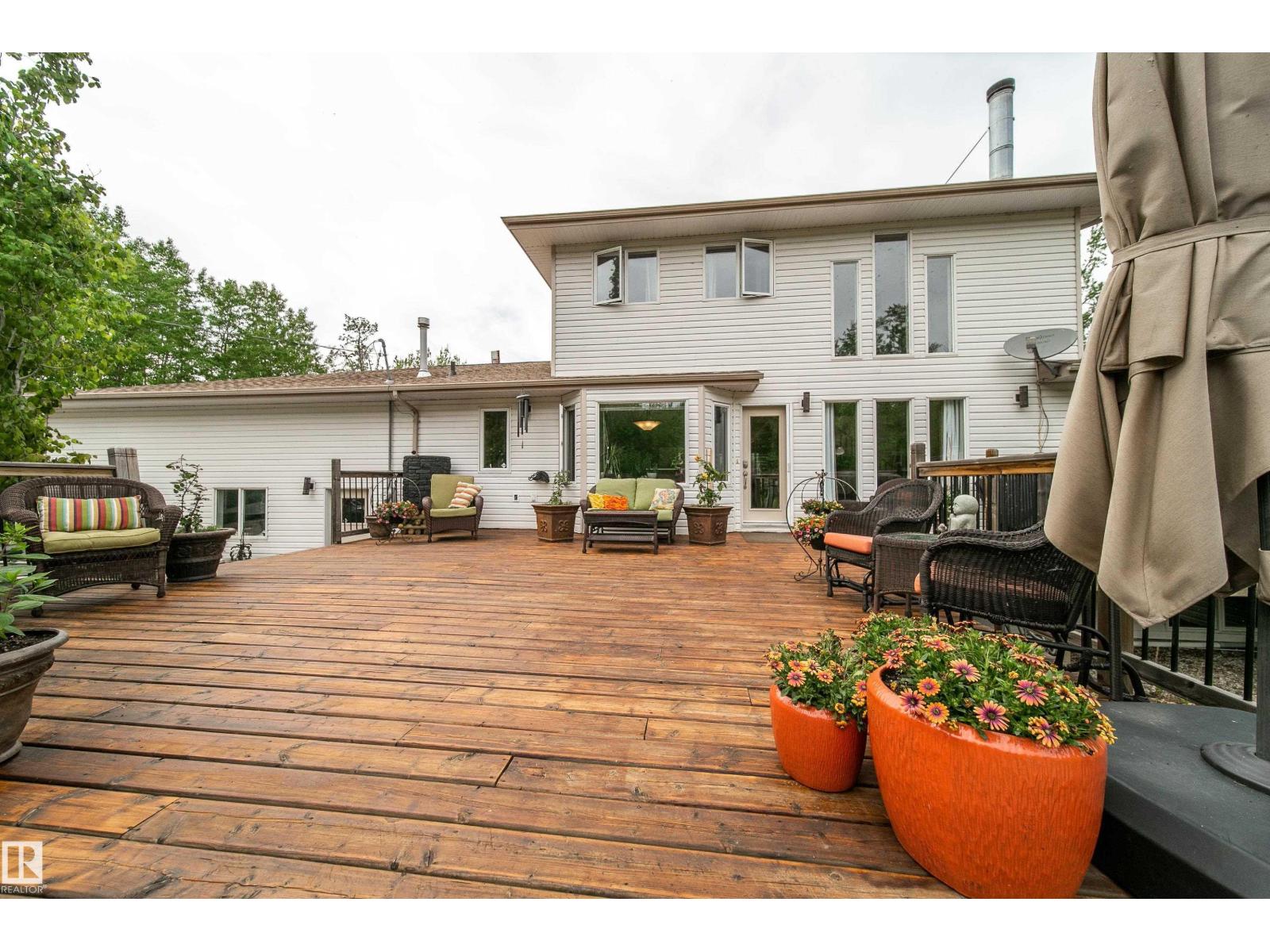 Extraordinary 27.67 acre property overlooking the shores of Lac Ste. Anne. This custom built home offers 5000+ sq ft of impeccably designed living space, blending grand architectural scale with the warmth of refined rural living. Features 7 BEDROOMS, 6 BATHS, soaring 18 ft ceilings, an expansive open concept great room, & a chef inspired kitchen recently renovated with elegance & function, a primary bedroom with spa-like ensuite & attached gazebo, a formal dining room, den, and a laundry/mudroom. Upstairs, a spectacular family room opens to a balcony w/ breathtaking lake views, complemented by a private guest suite w/ ensuite. Developed basement offers over 1900 sq ft! Heated triple attached garage with dedicated office, & 2 piece bath adds unmatched versatility. With over 1000 sq ft of decking, mature landscaping, charming cottage, and a 24' x 54.5' shop, the possibilities are endless! Trails wind throughout the property for personal enjoyment & road access on three sides offer future dev. potential! (id:63190)