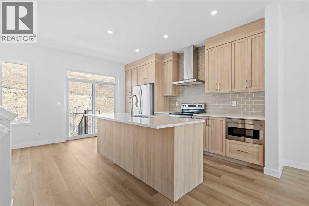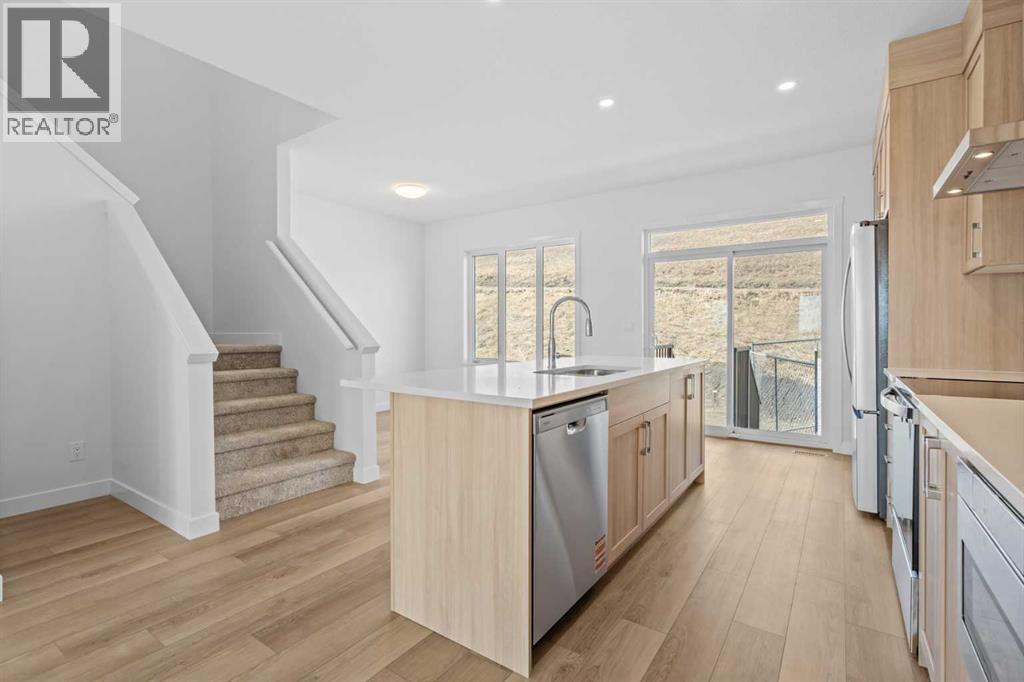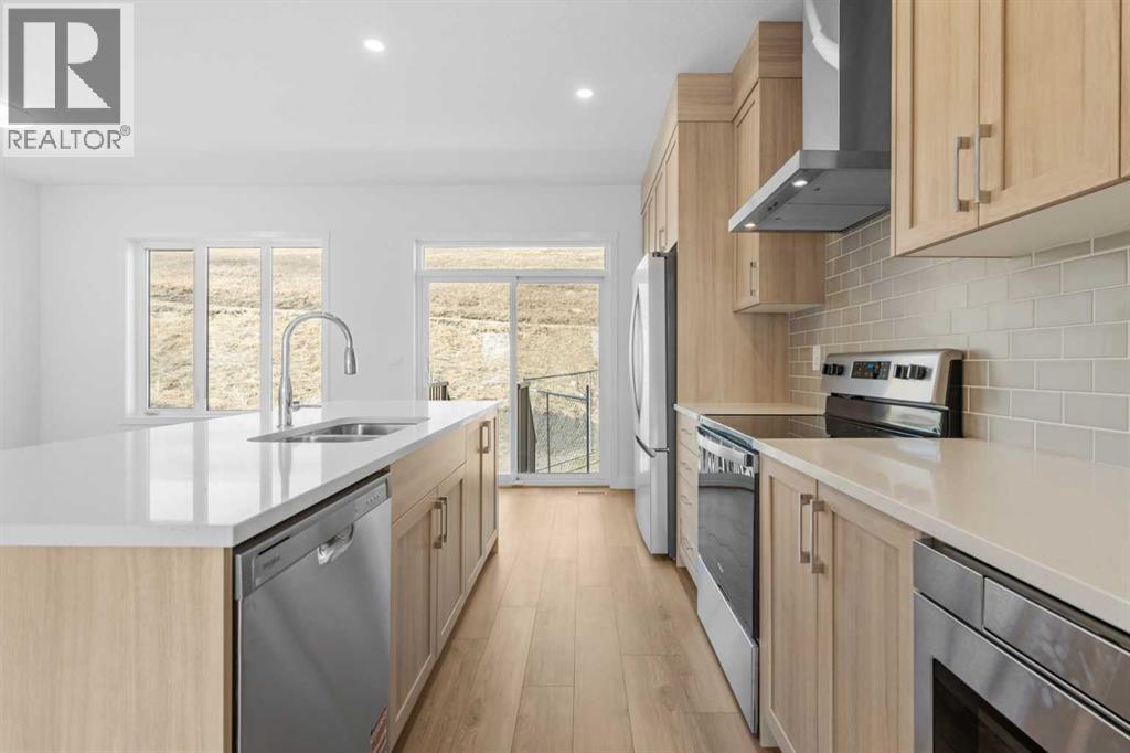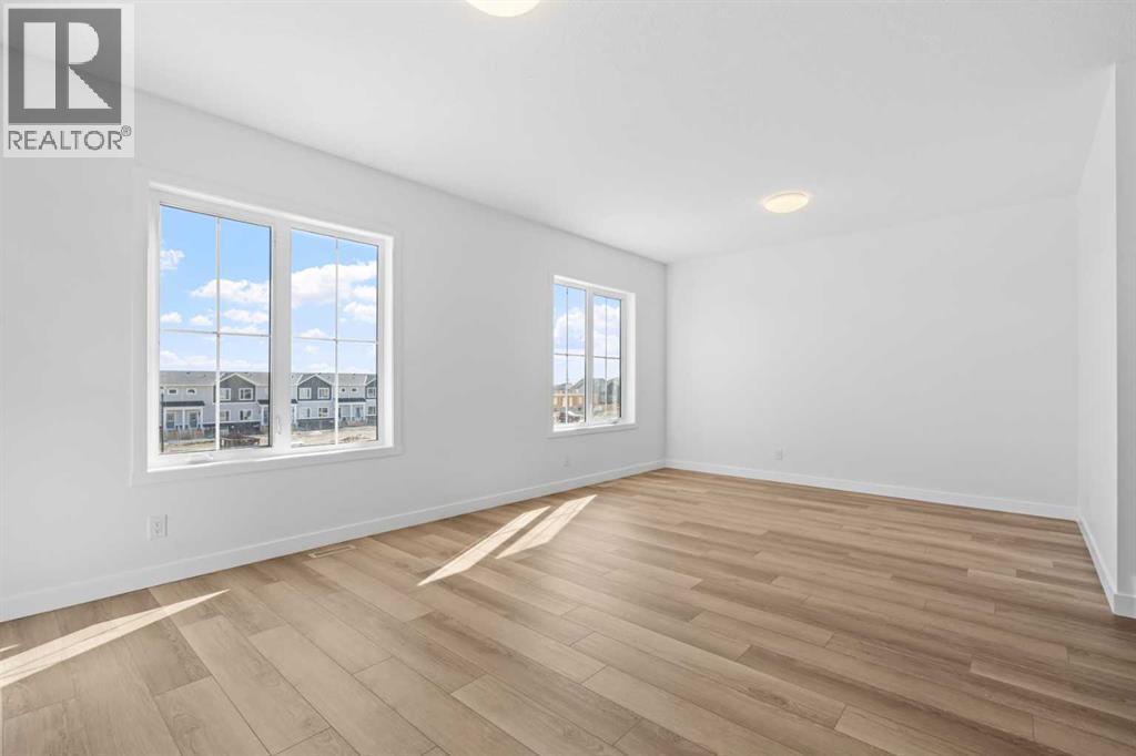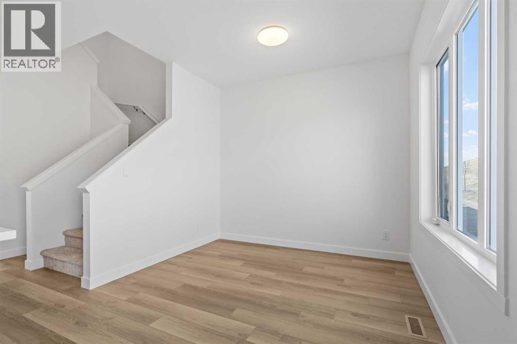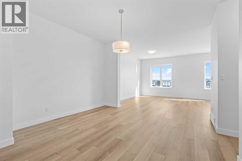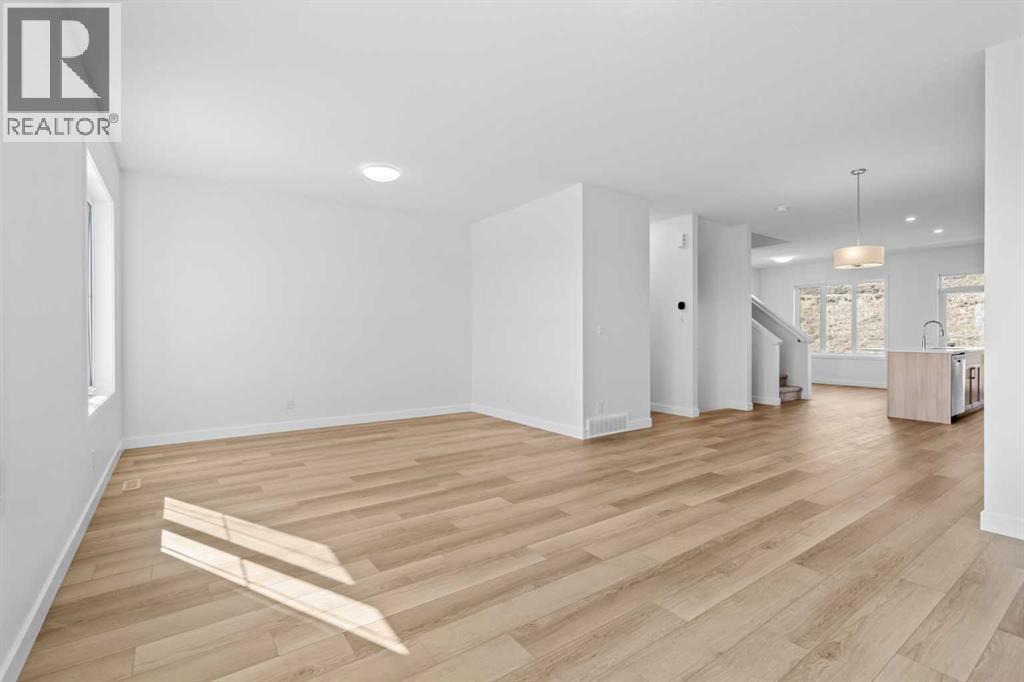 NEW BUILD SEMI-DETACHED | OVERSIZED SINGLE GARAGE | 3 BED / 2.5 BATH / 1764 SQ FT | WEST-FACING BACKYARD | IMMEDIATE POSSESSION – Welcome to this beautifully designed semi-detached duplex by Minto Communities, an award-winning Canadian builder, located in Wildflower, proudly voted Best New Community in Canada (2025). This vibrant, master-planned community in Airdrie is designed with lifestyle and connection in mind, offering an exciting mix of home styles in a neighbourhood built to grow with you. Finished in a charming traditional farmhouse elevation, this spacious home offers a thoughtfully planned layout ideal for modern family living. The main floor is designed for both everyday comfort and entertaining. The kitchen is positioned at the back of the home and features a central island, stainless steel appliances, and gorgeous modern finishes, with a bright breakfast nook just off the kitchen overlooking the west-facing backyard. Moving toward the centre of the home, you’ll find a dedicated dining area, while the large, light-filled living room anchors the front of the home. A convenient half bath and storage closet complete this level. Upstairs, the spacious primary bedroom easily accommodates a king-sized bed and includes a walk-in closet and a private 4-piece ensuite. Two additional well-sized bedrooms share this floor, one with a walk-in closet and the other featuring a sliding-door closet. A second 4-piece bathroom and a large, functional laundry room round out the upper level. The ground level welcomes you with a beautiful entryway that leads to the rest of the home and an undeveloped space that offers flexibility for future development. This level also includes additional storage space, a mechanical room, and direct access to the oversized single attached garage. A large driveway provides ample parking, adding everyday convenience. Residents of Wildflower enjoy exclusive access to The Hillside Hub, a standout amenity centre featuring Airdrie’s first outdoor pool, a hot tub, an open-air sports court, and a variety of shared indoor and outdoor spaces designed for gathering, recreation, or quiet retreat. With nearby parks, pathways, amenities, and easy access to major routes, Wildflower delivers a truly well-rounded lifestyle. Combining award-winning community planning, modern design, and immediate possession, this is an outstanding opportunity to own a stylish new home in one of Canada’s most celebrated communities. Don’t miss your chance to make Wildflower home! Book your visit today! (id:63190)