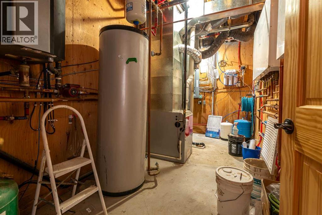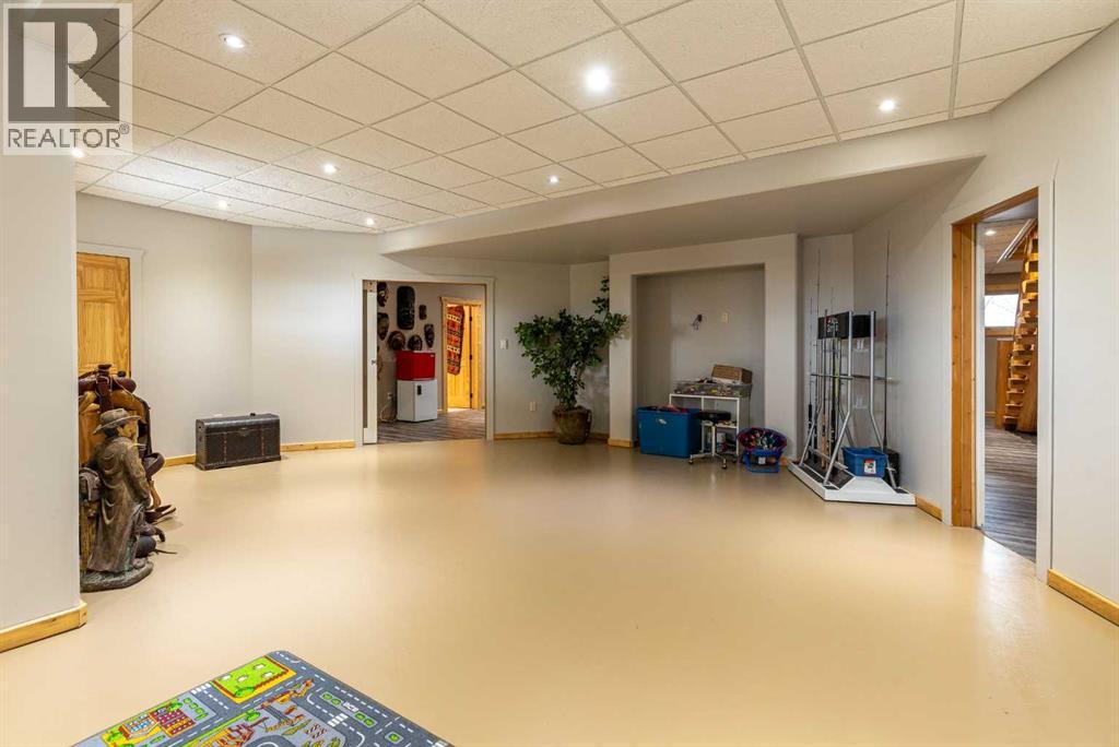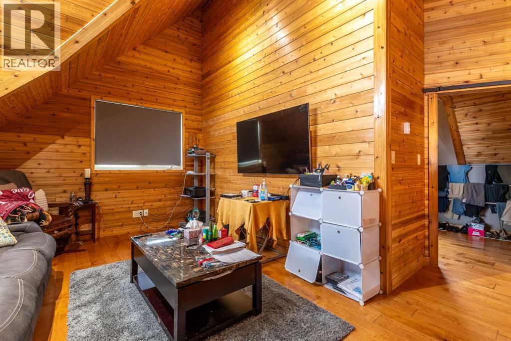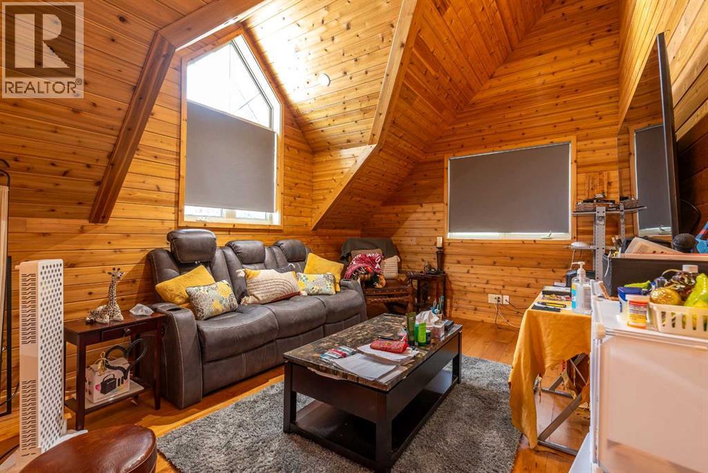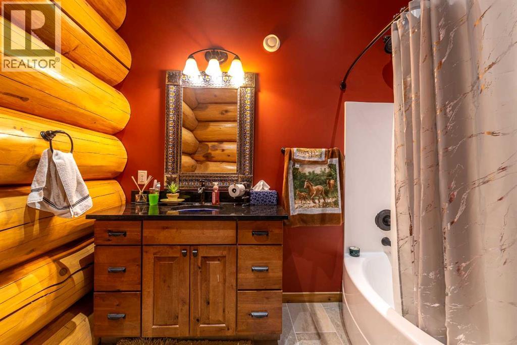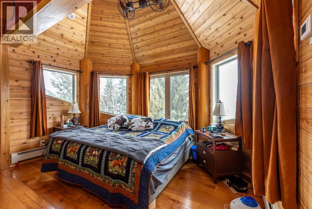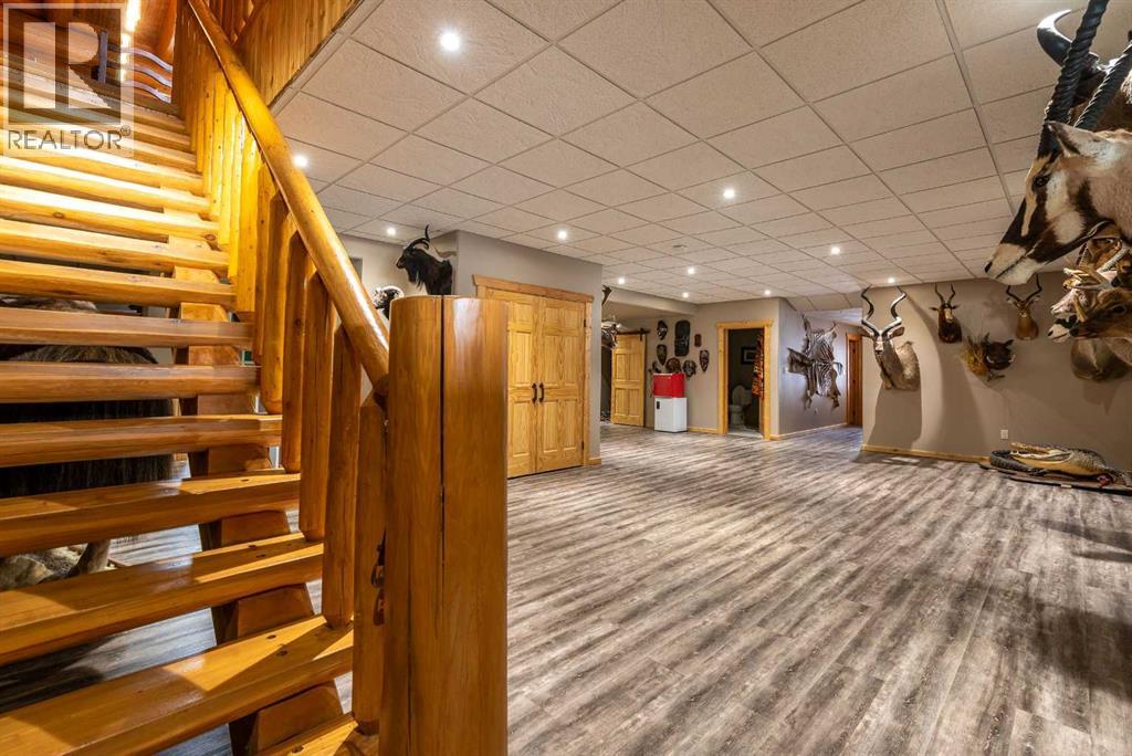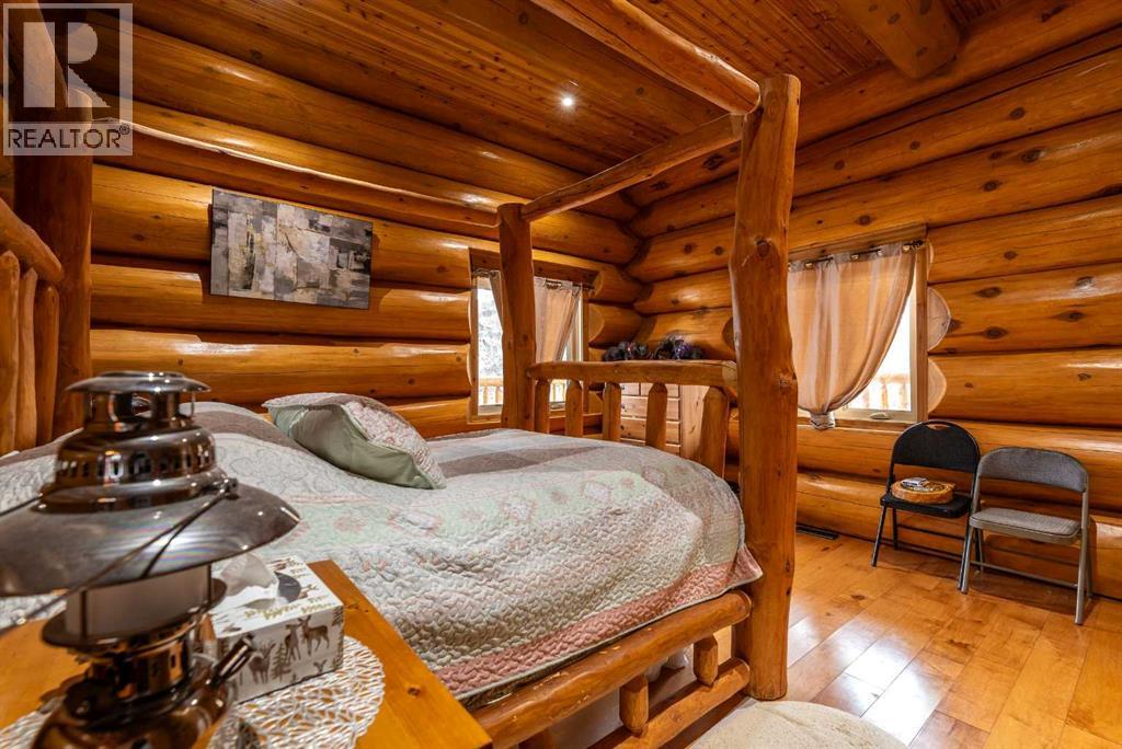 Dreaming of your own OASIS? Here’s a one-of-a-kind paradise of your own overlooking 160 acres of Pine trees, trails, crown lands and creeks. The craftmanship in this Log house is beyond your expectations and dreams. This 3-bedroom log house and four bathrooms and 3 bedrooms in the guest house. In the main house, you will be greeted with high ceilings living room and that country style feeling showing off your river rock fireplace, beautiful designed tile entry way c/w in-floor heating, and hardwood floors. The very spacious kitchen with an island, equipped with High end appliances (Elmira stove), a walk-in pantry, a mudroom and a 2 -piece bathroom. The very large dining room that can accommodate all your guest and family plus the breakfast area with access to the wrap around deck with spectacular view of the ravine. The upper level is just the best Master bedroom you ever have with two large walk-in closets for his and hers, master 6-piece ensuite with your raised bathtub with the towering trees view from the big window while relaxing and enjoying your me time, on the other side of the master bedroom you also have your own living room or office area that you can unwind and just watch your favorite TV show and another gas fireplace. In the basement it has a slab in floor heating so to keep your bare feet warm even in the winter time, and a large bedroom, 3 piece bathroom, a theatre room, best of the best it is equipped with an 85’ indoor archery range, laundry room with washer sink, furnace room, utility room equipped the best water softener, a walk out through the side of the house that you can sit and enjoy the outdoor and fresh air breeze overlooking the green space . The guest house has 3 bedrooms a kitchenette and the 2-boiler heated detached garage. Also, you have a 60’x45’ Quonset with work shop and a 35x28 insulated barn that currently houses donkeys. Moreover, all the bathroom sinks are imported from Mexico, the dining room set, and all the trophies has a s tory. This is a very private property that offers you a year-round adventures like hunting, hiking, quadding, and horseback riding and an investment opportunity to turn it into something recreational for the Winter and Summer. Also, the property has an oil well lease with a $4,360 annually . This is very secluded, gated property and you have all the privacy! (id:63190)