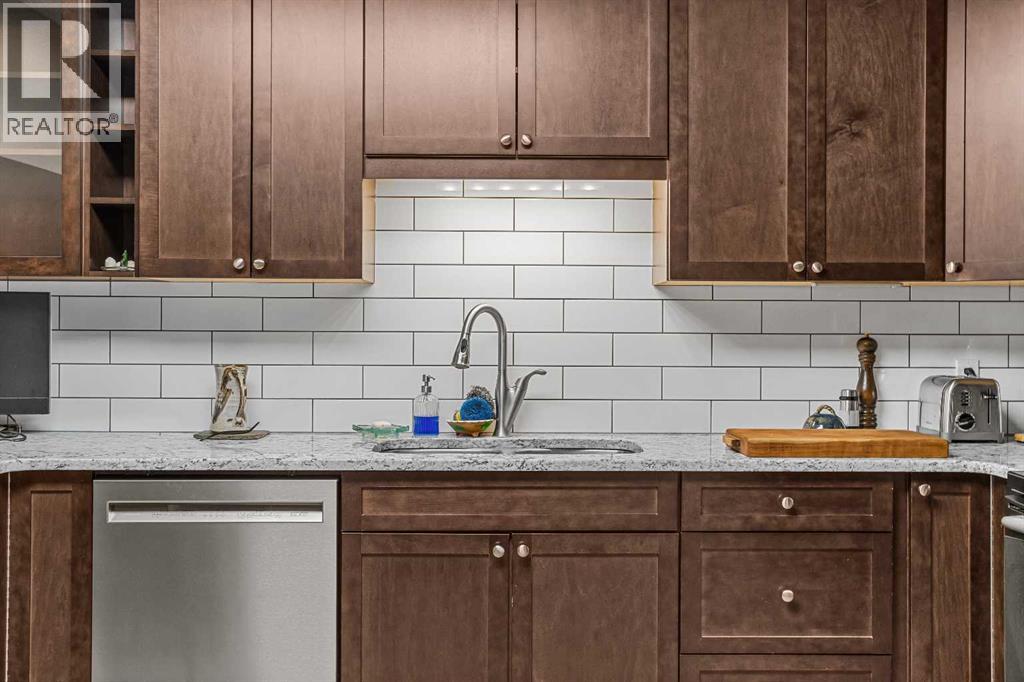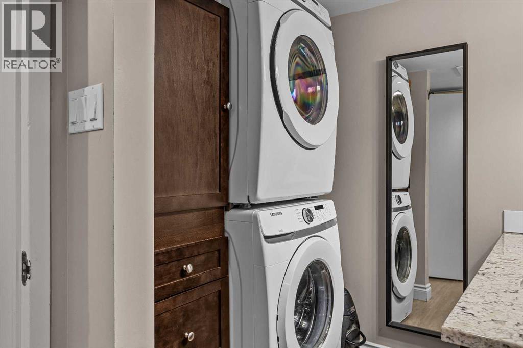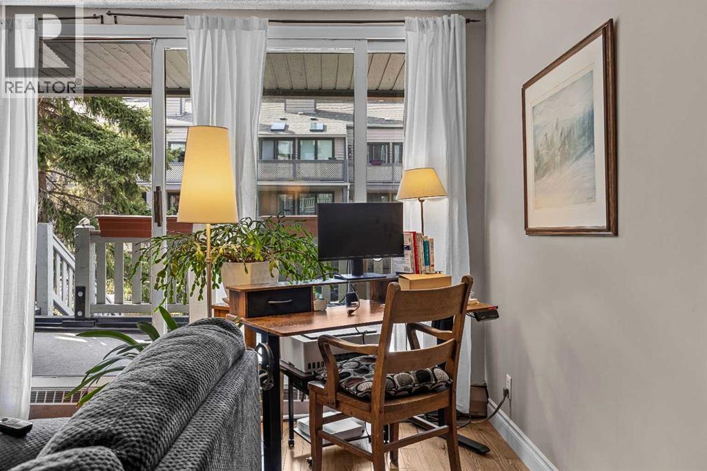 This centrally located 2-bedroom, open-concept condominium offers exceptional space all on one level-rare to find in Banff's market. Conveniently situated close to schools, shopping, and everyday amenities, this home is perfect for comfortable mountain living. Recent upgrades include beautiful maple hardwood flooring throughout, granite countertops in both the kitchen and bathroom, new kitchen cabinetry and modern appliances. Enjoy a cozy fireplace in the living area and step out onto the large covered deck-perfect for relaxing or entertaining. Additional features include in-suite laundry, heated secure underground parking, and a dedicated storage locker. A fantastic opportunity for homeowners or investors-don't miss out! (id:63190)
