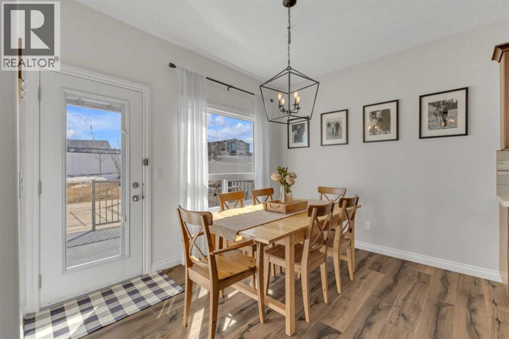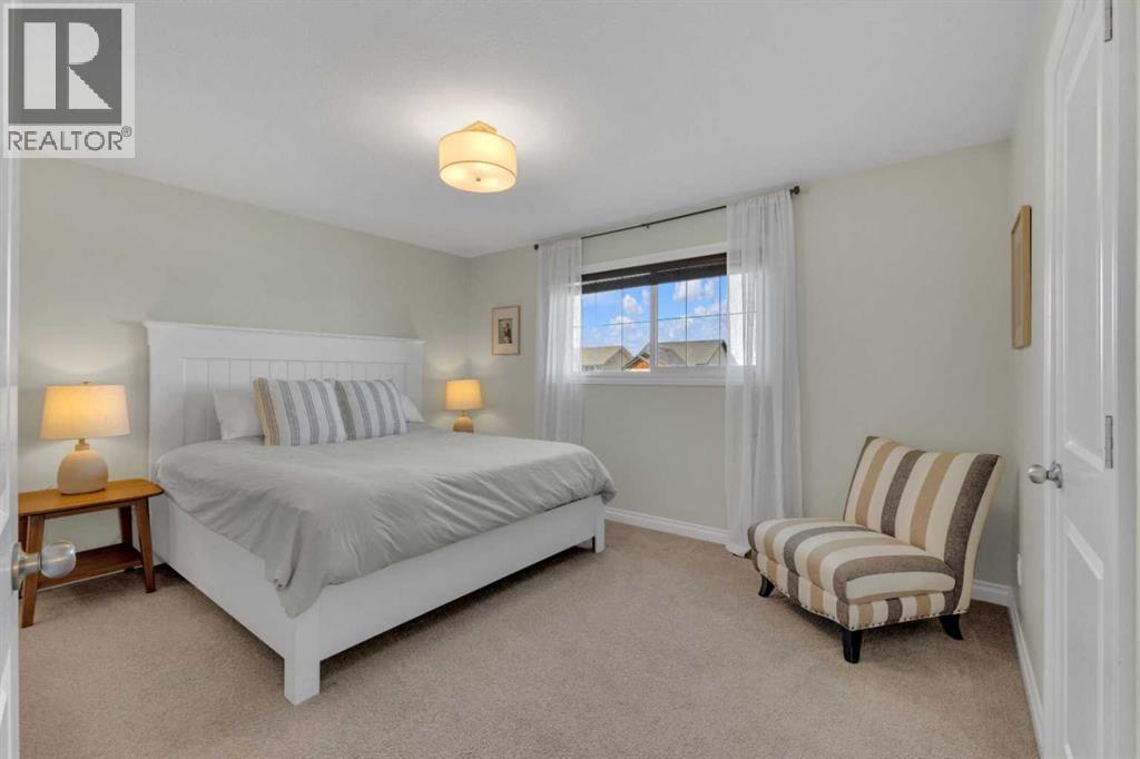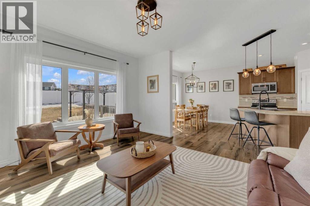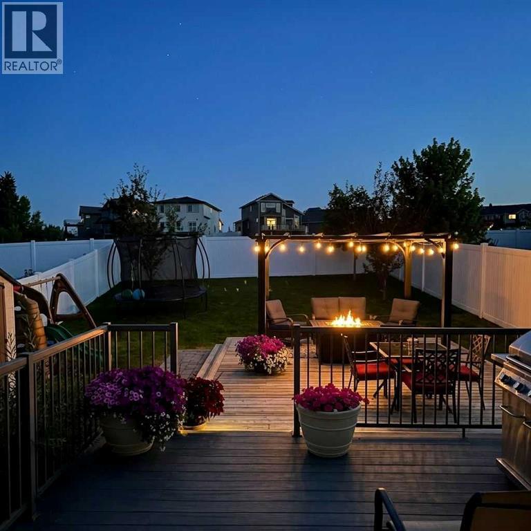 Click brochure link for more details** Welcome to this beautiful 2-storey home in a sought-after family neighbourhood, offering rare privacy with no neighbours behind you backing onto an expansive green space with walking and biking trails connecting to multiple parks close by. The open-concept main floor is bright and inviting, featuring large windows, 9’ ceilings, and a functional layout perfect for everyday living and entertaining. The kitchen includes maple cabinetry, an extended eating bar, stainless steel appliances and a convenient walk-through pantry. The sunny dining area leads out to a 10’ x 14’ deck and a 16’ x 20’ patio perfect for outdoor living. Designed for both relaxing and entertaining there is plenty of space for outdoor furniture and features a storage shed. This south facing retreat enjoys sun from morning through evening, making it perfect for summer days. Upstairs you will find 3 bedrooms, including a comfortable primary retreat with a walk-in closet and private ensuite, plus the added convenience of upper-floor laundry. The basement features 9’ ceilings, a 50-gallon hot water tank and adds even more living space, with a 4th bedroom and family room. Additional features include central air conditioning for year-round comfort and a heated double attached garage, a huge bonus during Alberta winters. This home offers the perfect combination of space, comfort, location, close to schools, parks and all amenities, while backing onto nature for added privacy and lifestyle. (id:63190)