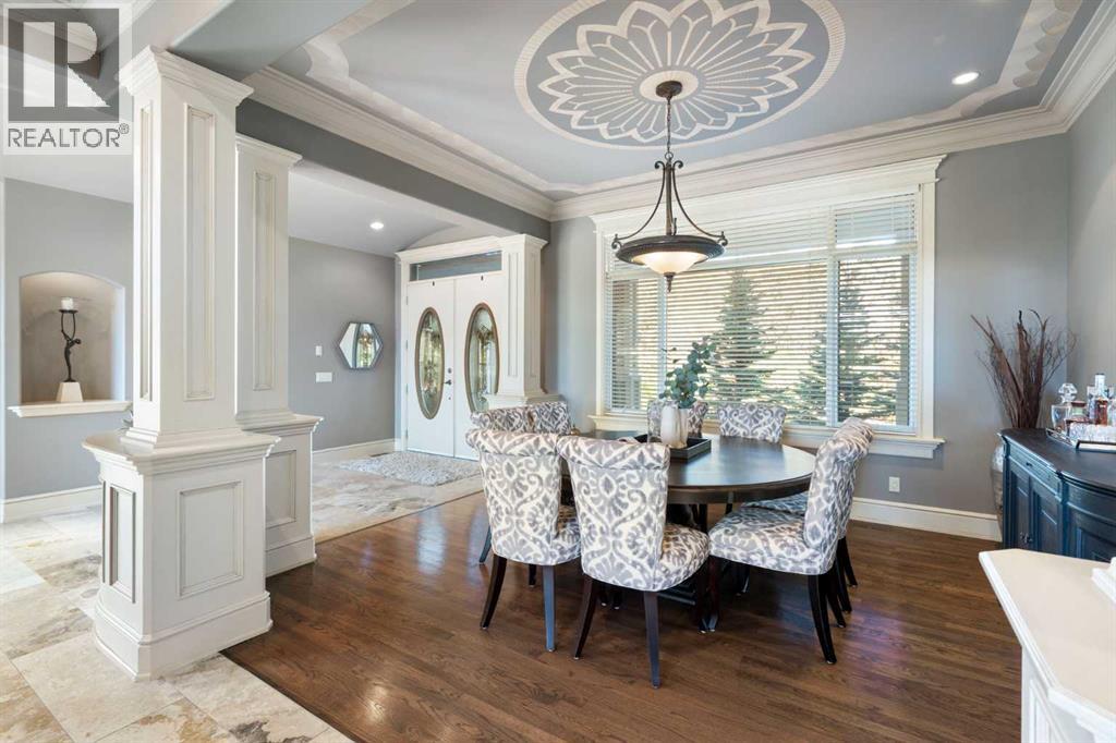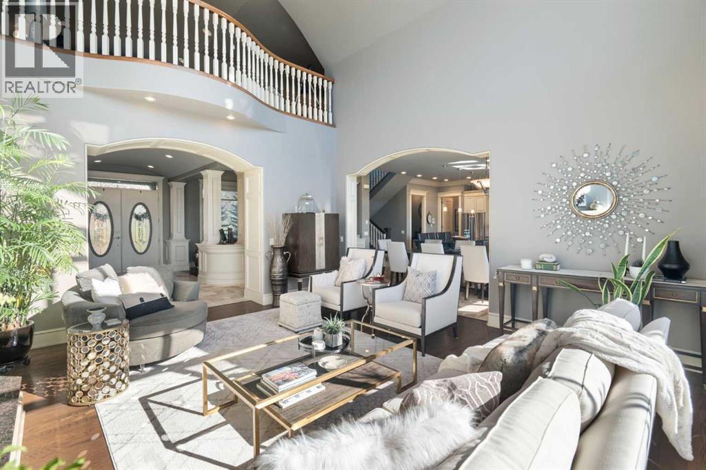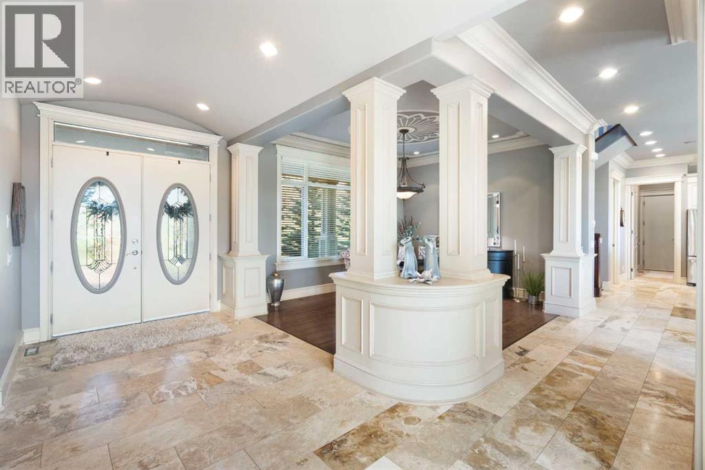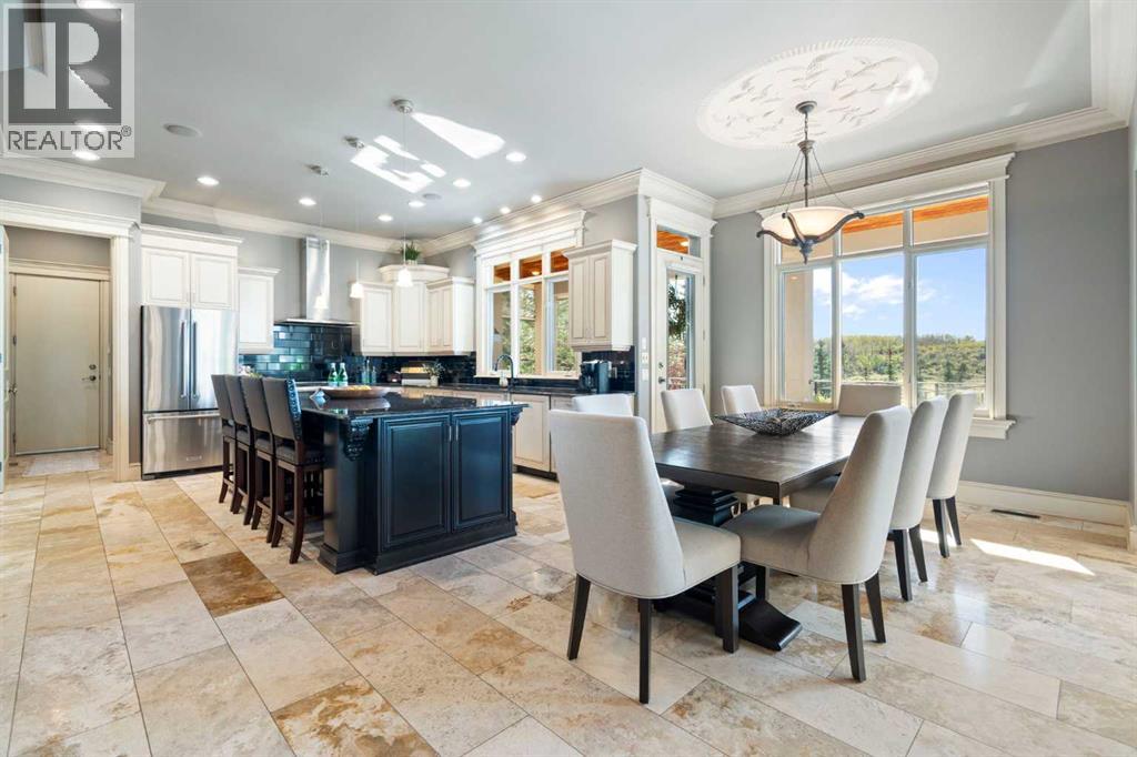 ** CHECK OUT OUR CINEMATIC TOUR (iGUIDE)** Unbeatable value on 22 ACRES in the beautiful countryside of Bearspaw, Alberta! Yet only a 10 minute drive to Calgary city limits and the nearest Co-op Grocery Store, Gas Station, Tim Hortons and towards the MOUNTAINS a 15 minute drive into Cochrane. Experience peaceful country living at its finest in this stunning estate, custom-built by McKinley Master Builders. Nestled on 22 beautifully landscaped acres with stocked ponds, WATERFALLS, and total privacy, this home offers over 6268sq ft of luxurious living space across three levels. The open-concept main floor features architecturally impressive ceilings, gleaming hardwood and tile floors, a cozy living room with fireplace, formal dining area, and a designer kitchen with top-tier finishes; Miele and Kitchenaid appliances. You'll also find a spacious home office and a private primary bedroom; a serene RETREAT with walk-in closet and a luxury 5-piece ensuite with resort-style finishes. Upstairs, enjoy a lofted conservatory, and a guest suite with its own 3-piece ensuite. For absolute convenience the laundry room is also on the main floor and also roughed in on the basement level. The fully developed walk-out level, with in-floor heating, includes a large family room, game/media areas, three bedrooms (two with private ensuites), as well as another 3-piece bathroom. Additional highlights: New roof on house and barn in 2025, 200amp, in-floor heating in Kitchen and Primary Bedroom/Ensuite, Phantom screens throughout, 4-car heated garage. Expansive deck with outdoor kitchen including Thermador BBQ. A ~3000 sqft barn with removable stalls, 2-pc bathroom and a 2-post care lift included. (ideal for a show garage, dog kennel, or any hobbyist dream space). Additional 1472 sqft workshop with 2-post car lift included. Greenhouse and covered hay storage. Full-sized outdoor riding arena. Hone your riding skills and show off your HORSES! Fenced and gated horse trail encircling the entir e property. A rare opportunity to own a true retreat just minutes from the city. Don’t miss it! (id:63190)