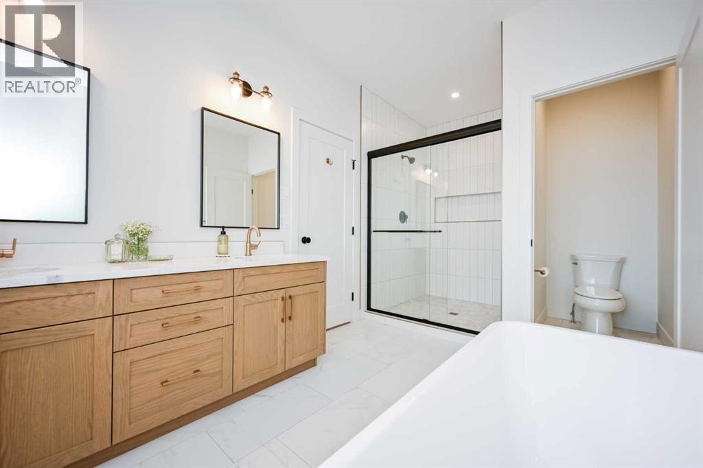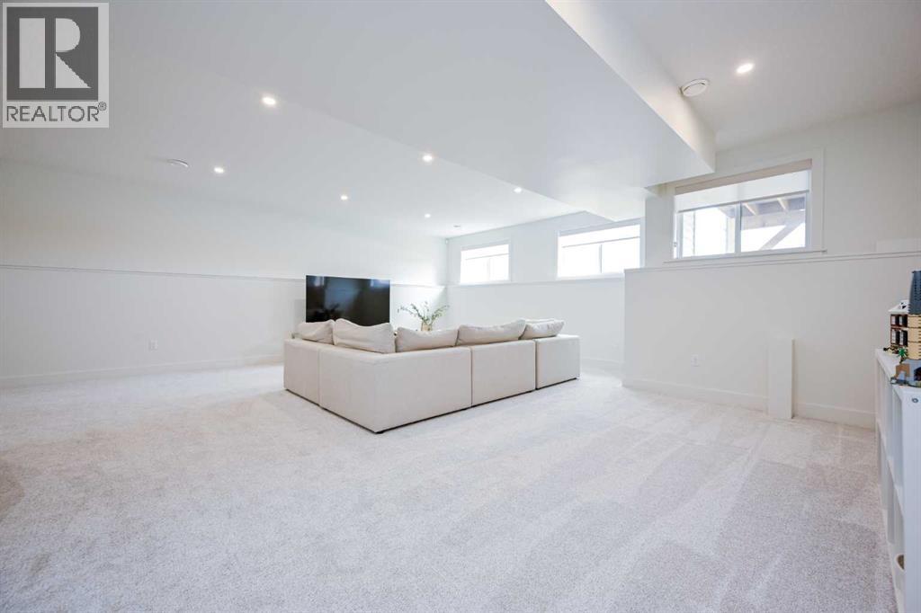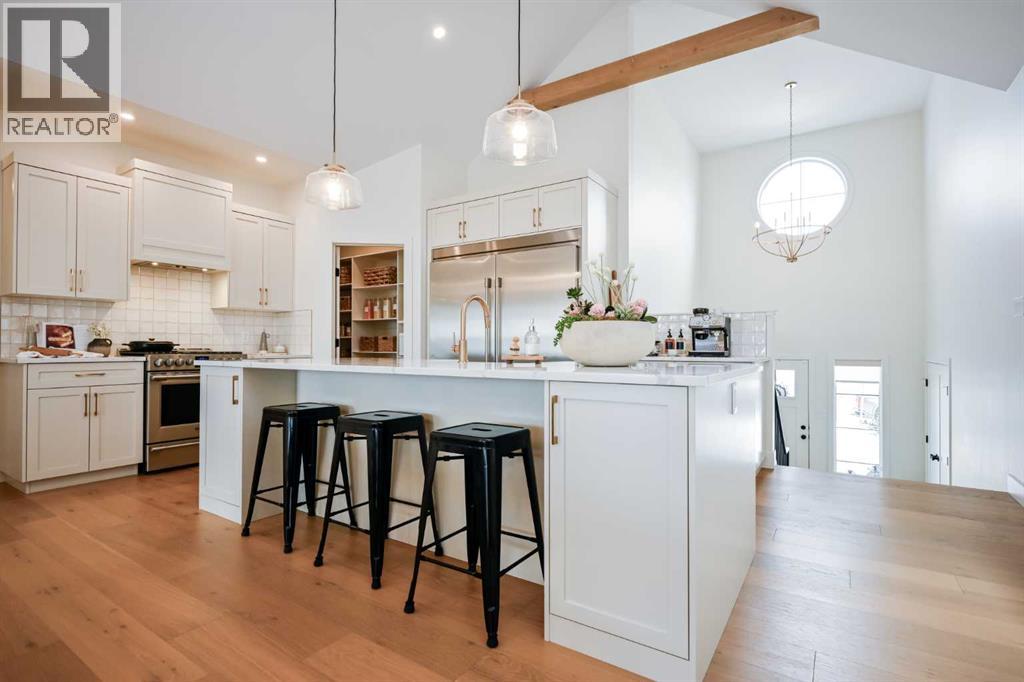 Magazine Worthy....Immaculate....Outstanding....I am not sure I can find the words to properly describe what this home truly has to offer. Let's start with the incredible cul-de-sac location in Whispering Ridge just steps away from the Whispering Ridge Community School. Take your first look and be amazed by the elevated black trim windows, warm wood beam features, and welcoming front deck space. Time to start your tour....you will instantly feel welcome in the spacious entry with custom tile and front entry open concept storage feature. Make your way into the kitchen where you are greeted by a sprawling quartz island with eat up bar, generous pantry space with built in shelving, coffee bar, formal dining space w/ elegant lighting feature, and did I mention the oversized custom chef's fridge and gas stove for the ultimate entertaining experience. Turn your attention to living room and enjoy the stunning beam work, bright windows, and the centerpiece of it all the floor to ceiling stone gas fireplace feature. Continuing exploring the main floor and you will find the true oasis of a primary bedroom which offers an immense walk in closet, upgraded lighting, and a 5-piece ensuite suitable for a spa with dual sinks, soaker tub, and oversized shower with floor to ceiling tile finishes. Additional main floor amenities included main floor laundry room w/ sink and folding station, and a conveniently located 2 piece washroom. Head upstairs and you will find 2 impressive bedrooms which both feature walk in closets w/ built in shelving and are strategically located right next to the 4 piece bathroom perfect for kids and/or guest rooms. Were not done yet....as we make our way to the basement you will be amazed by the tremendous sized basement living room, the storage spaces, the luxurious 4 piece basement bathroom, and the 2 additional grand basement bedrooms. Let's not forget the extensive additional offerings in this gem....walk up basement w/ separate entrance, central air, tr iple gar garage, surround sound audio system, exceptional covered deck area for enjoying your outdoor space, no current rear neighbours, and to top it all off RV Parking space. Welcome to luxury living in the wonderful community of Whispering Ridge....Welcome Home! (id:63190)