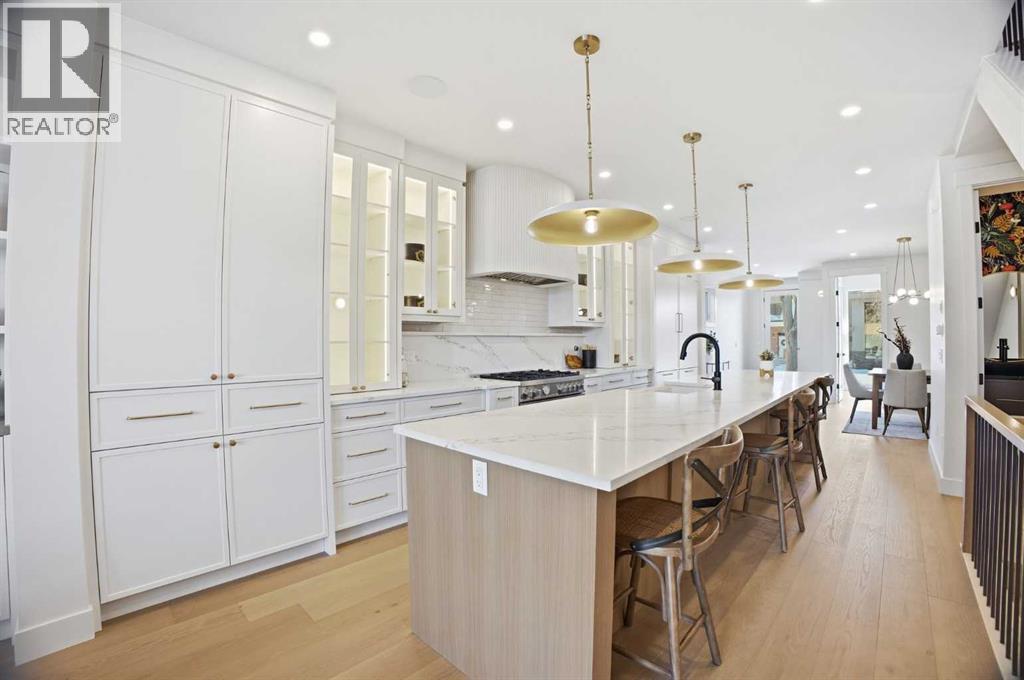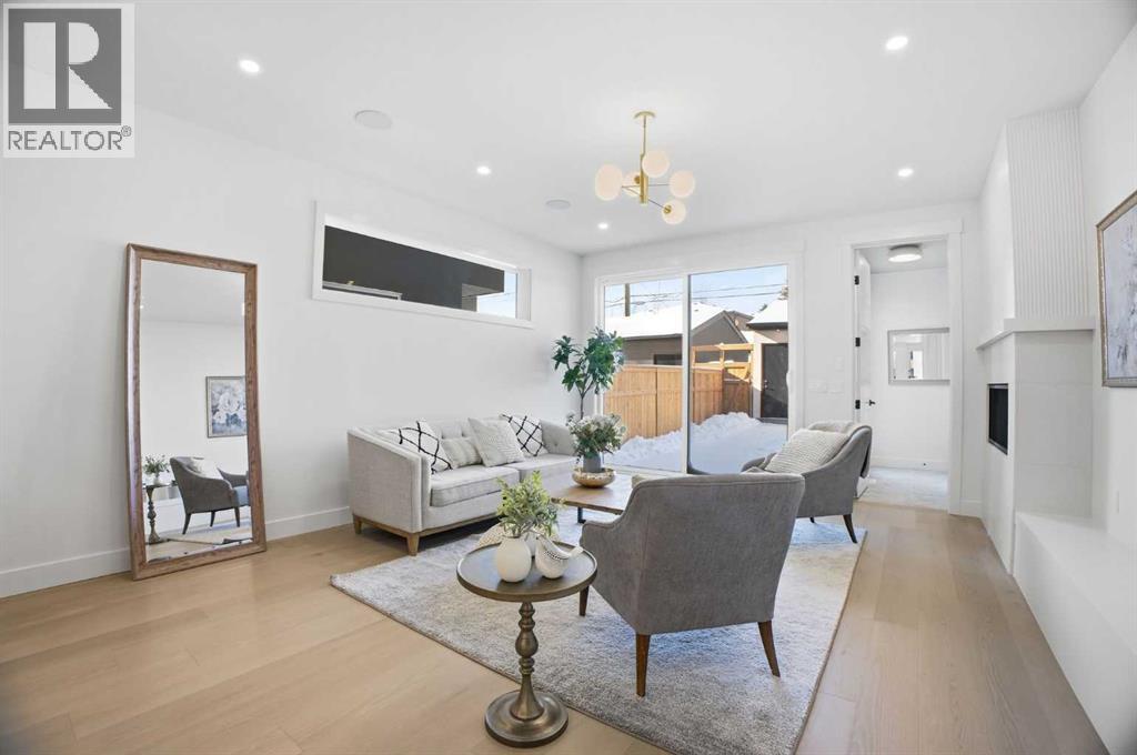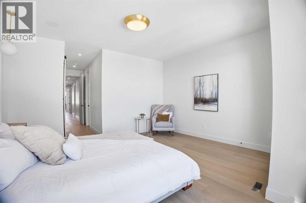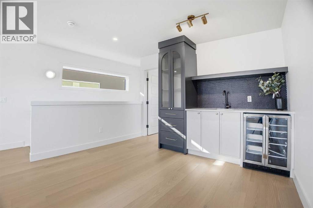 OPEN HOUSE SATURDAY, APRIL 25TH & SUNDAY, APRIL 26TH FROM NOON - 2 PM BOTH DAYS. Set on a quiet street in desirable Richmond and positioned on an extra deep 135’ lot, this newly built 4+1 bedroom home delivers panoramic views and over 4,100 sq ft of refined living space that blends custom craftsmanship with modern luxury. The open, light filled main level showcases hardwood floors, soaring ceilings, and expansive windows. A stylish dining area with a designer fixture offers generous room for hosting, while the beautifully appointed kitchen features quartz countertops, a large island/eating bar, extensive cabinetry, and high end appliances. The living room is anchored by a striking feature fireplace and custom built ins. A private den/office off the foyer provides an ideal work from home space. A 2 piece powder room and well designed mudroom with built ins complete the main floor. The second level hosts three spacious bedrooms, a 5 piece Jack & Jill bath, and a laundry room with sink and ample storage. The impressive primary retreat captures sweeping views and includes a private balcony, two walk in closets, and a luxurious 5 piece ensuite with dual sinks, freestanding soaker tub, and glass enclosed shower. The third level offers a versatile loft with a wet bar and access to a large west facing deck—perfect for a media room, studio, or additional office. A generous bedroom with its own 4 piece ensuite provides an ideal guest space. The fully developed basement is designed for entertaining, featuring a spacious family/media room with wet bar and wine storage, along with a fifth bedroom, 4 piece bath, and dedicated storage room. Additional highlights include rough ins for air conditioning and built in speakers. Outside, enjoy the sunny west facing backyard with patio and access to the double detached garage. This prime location offers close proximity to schools, shopping, Marda Loop, public transit, and easy access to Crowchild Trail. A rare combination of location, lu xury, and thoughtful design. (id:63190)