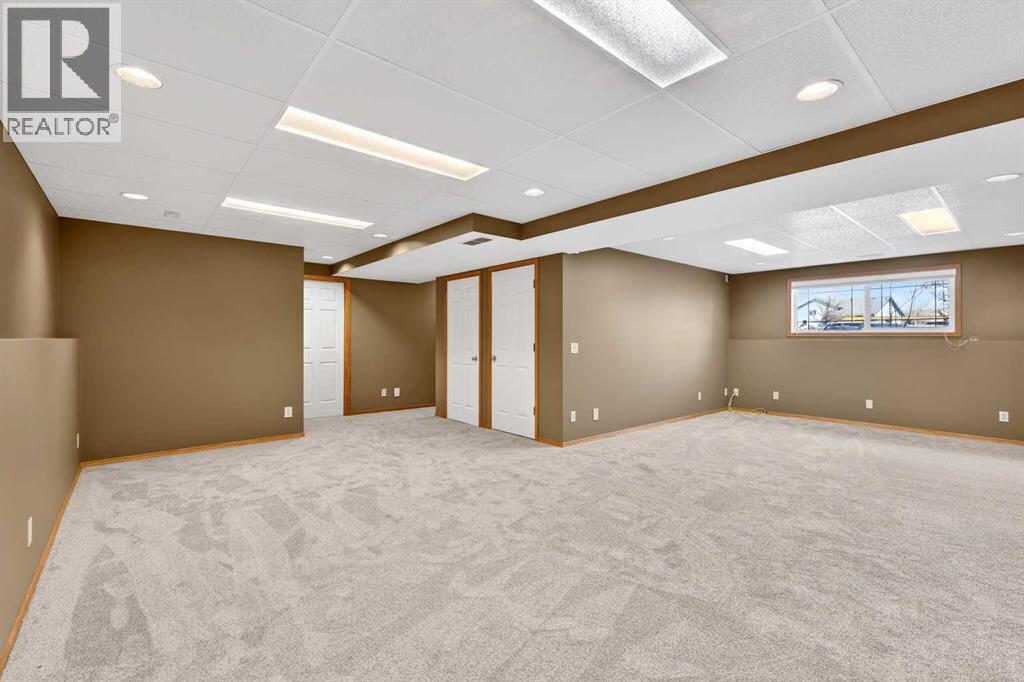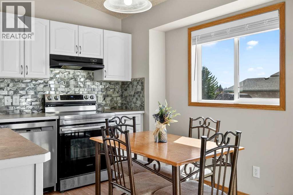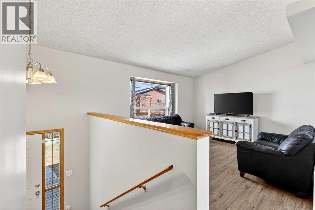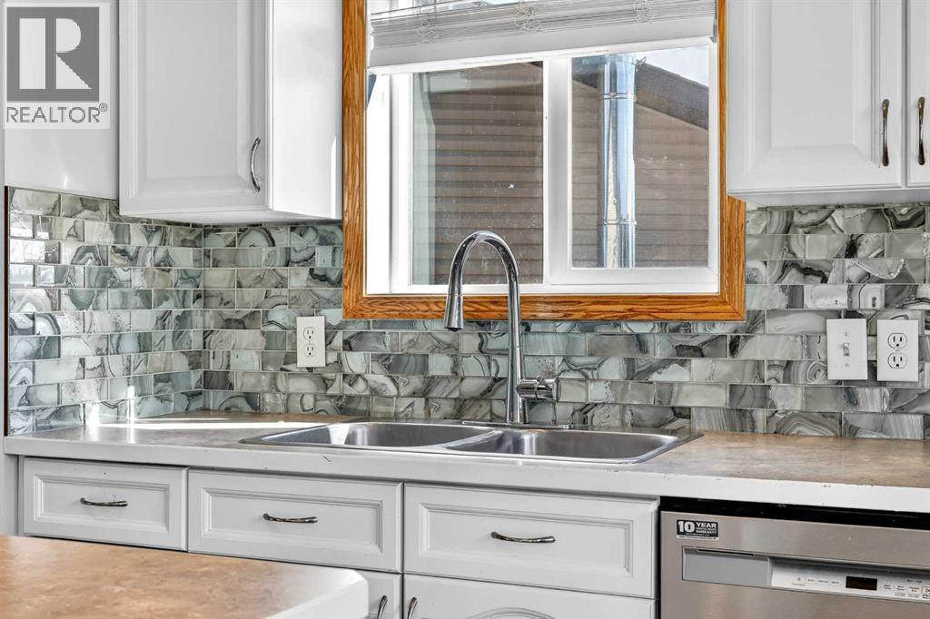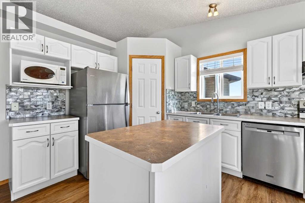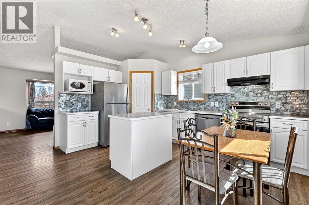 This fully finished bi-level is just what you’re looking for. Perfectly located on a quiet cul-de-sac in the established community of Strathaven close to multiple schools and all of Strathmore’s amazing amenities, this is a home your family can grow into. The bright and sunny main floor has vaulted ceilings, large windows and vinyl plank flooring throughout the living area. In the spacious kitchen you’ll enjoy popular bright white cabinetry, tile backsplash, stainless steel appliances, centre island and a corner pantry for extra storage. A nice sized attached dining area plus access to your back deck add to the overall functionality of the space. You’ll find 3 bedrooms on this main level including a spacious primary with a separate closet and cheater access to the main bath. The bedrooms all have newer carpet and the shared bath has a full tub which is a must for little ones. The fully finished lower level provides endless opportunities as the ultimate teen hangout, family games room or whatever suits your needs. A 4th bedroom and full bath make it a self contained area for your teenager or guests to call their own. This terrific home is located on a prime pie-shaped lot with back alley access allowing you to park your RV or build your dream garage. The SW facing backyard is fully fenced with an upper deck off the kitchen for your grill, a ground level deck for lounging, flower beds, mature trees and lots of room for kids and pets to play. This well maintained home is freshly painted throughout and boasts the luxury of central air conditioning. The lower level has new carpet, the hot water tank was replaced 3 years ago and you won’t need to worry about the roof as the shingles are only 1 year old. This home offers so much value and you’re going to love living in Strathmore where you’ll enjoy a small town feel without sacrificing access to amenities. Book your showing and see why you get more in Strathmore. (id:63190)