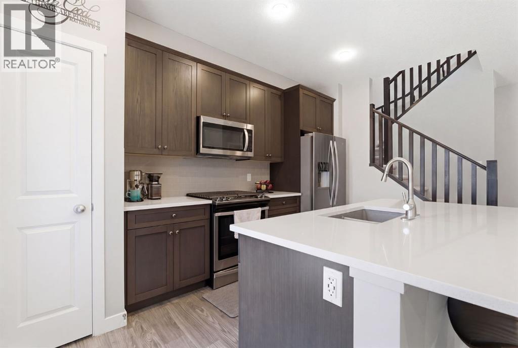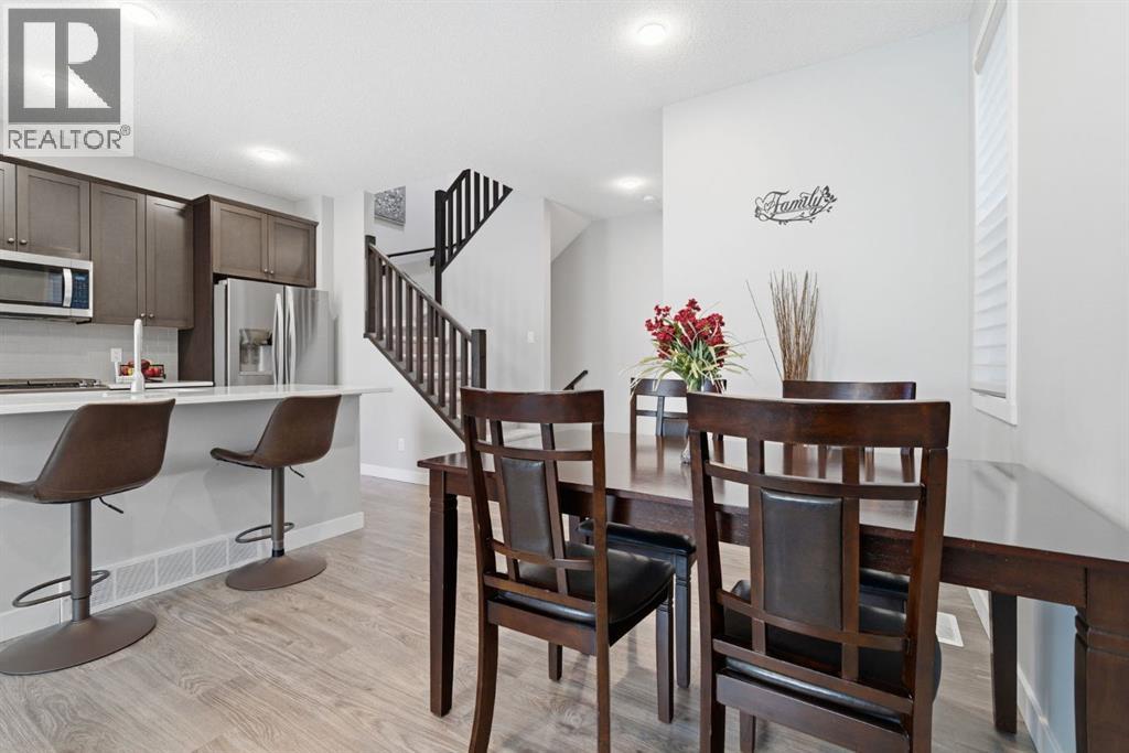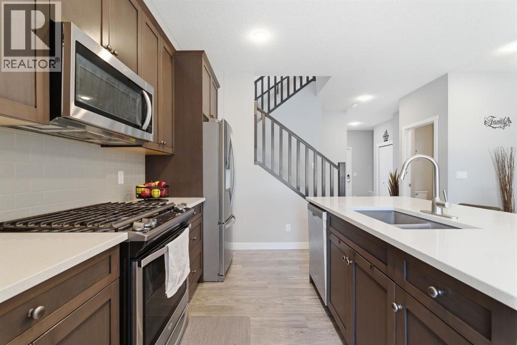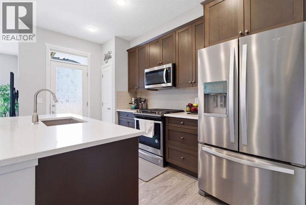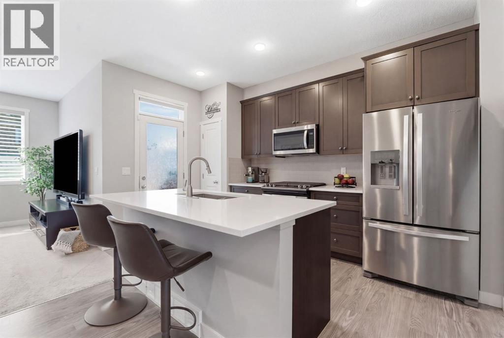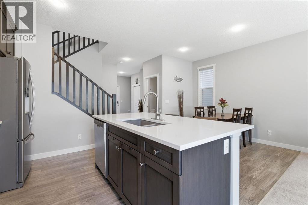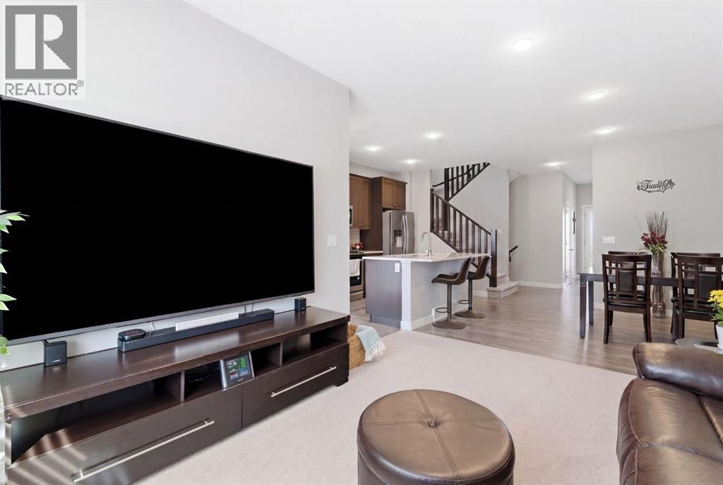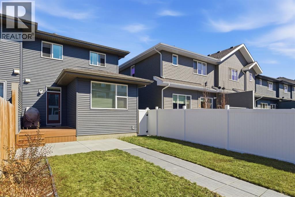 Welcome to this beautifully maintained semi-detached home in the sought-after community of Walden. Offering the perfect blend of style, comfort, and everyday functionality. Built in 2020 by AVI Homes and lovingly cared for by its original owners, this move-in ready property features over 1,896 sq ft of developed living space, a total of 4 bedrooms, 3.5 bathrooms, and a single attached garage with extra driveway parking. From the moment you arrive, you’ll appreciate one of this home’s most desirable features, a beautiful park directly out front, providing open views and space for the kids to play. Inside, the bright and welcoming main floor is designed for modern living, with beautiful luxury vinyl plank flooring, a spacious living room, and an open-concept layout that flows seamlessly into the kitchen and dining area.The kitchen is both stylish and practical, showcasing rich cabinetry, stainless steel appliances, ample prep space, and a large sit-up breakfast bar that naturally becomes the heart of the home. Whether hosting friends or managing busy mornings, this layout offers the space and functionality today’s buyers are looking for. Upstairs, you’ll find three generous bedrooms including a comfortable primary retreat complete with its own private ensuite. Two additional bedrooms and another full bathroom provide flexibility for family, guests, or a home office setup. The fully finished basement extends the living space with a large recreation room, fourth bedroom, and additional full bathroom ideal for movie nights, a playroom, teenager’s retreat, home gym, or visiting guests. Step outside to the sunny south-facing backyard, where a deck and patio create the perfect setting for summer BBQs, outdoor dining, or simply relaxing in the sun. The rear lane adds extra privacy and functionality, while the quiet street enhances the welcoming neighbourhood feel. Located just minutes from parks, ponds, walking paths, bike trails, schools, shopping, and everyday amenities, this home also includes air conditioning for warm summer days. A beautifully cared-for home in an exceptional location this is Walden living at its best! (id:63190)