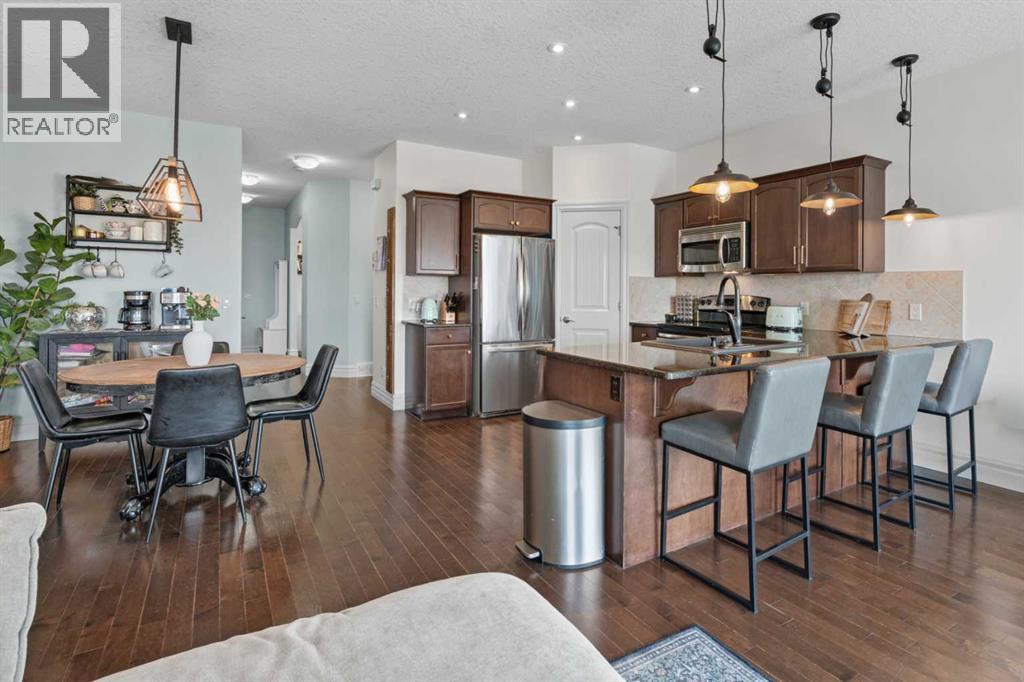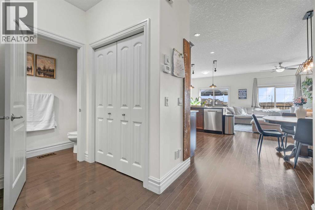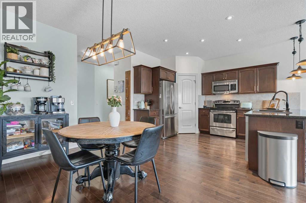 Welcome to 125 Monteith Drive, ideally located in the sought-after family friendly Montrose community. From the moment you arrive, this home captures your attention with its charming curb appeal—featuring a private arched entrance and an inviting upper balcony that truly sets it apart. Step inside this air -conditioned home to discover a versatile front flex room—perfect for a home office, formal dining, playroom, or cozy media space. The main floor opens into a bright and functional layout, where the kitchen, dining, and living areas come together seamlessly—ideal for both everyday living and entertaining. Rich hardwood flooring flows throughout, while the well-appointed kitchen offers granite countertops, a central sit up breakfast bar, and plenty of space to gather and prepare meals. Just off the living room, step onto the back deck and take in the beautiful sprawling mountain views—an ideal spot to enjoy your morning coffee or unwind at the end of the day. Upstairs, you’ll find two generously sized kids bedrooms, a full bathroom, and a spacious bonus room with direct access to the upper balcony—perfect for relaxing summer evenings with a glass of wine while enjoying the view. The impressive primary retreat is sure to impress and offers a true escape, featuring huge windows with outstanding views, a large walk-in closet, and a luxurious 4-piece ensuite. The walkout basement is full of potential, offering plenty of space for future development—whether you envision a family room, additional bedroom, or home gym—with direct access to the fully landscaped and fenced backyard. Laundry is conveniently located on this level as well. Elegant upgrades and features shine though in each room. A detached double garage provides secure parking and extra storage , plus an additional parking spot for RV, trailer , toys, or extra vehicles. Enjoy being within walking distance to downtown High River, grocery stores, recreation facilities, and scenic pathway systems, with easy highway access for commuting. Guest parking is also a pleasure with plenty of street frontage available. This is a fantastic opportunity to own a well-appointed home in a vibrant, family-friendly community—don’t miss your chance to view it! (id:63190)