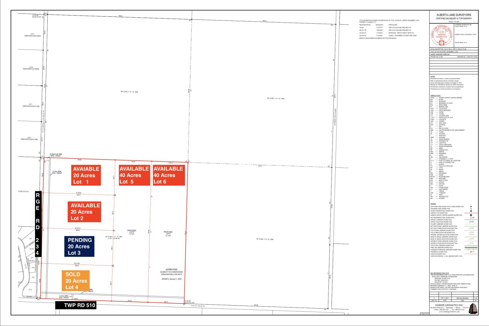 Discover the perfect opportunity to build your dream home on this expansive 20-acre rural residential parcel in Strathcona County, ideally located at Township Road 510 and Meridian Street. This well-positioned property offers a rare blend of privacy, space, and convenience, with easy access to nearby amenities and major routes.Surrounded by open landscapes and natural beauty, the land provides plenty of room for a custom home, shop, hobby farm, or equestrian setup. Whether youre looking to create a private retreat or invest in a growing rural community, this property offers endless potential.Enjoy peaceful country living just minutes drive from Edmonton, Sherwood Park and Beaumont, making it an ideal location for those seeking space without sacrificing accessibility. (id:63190)