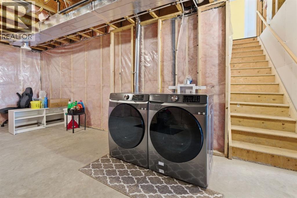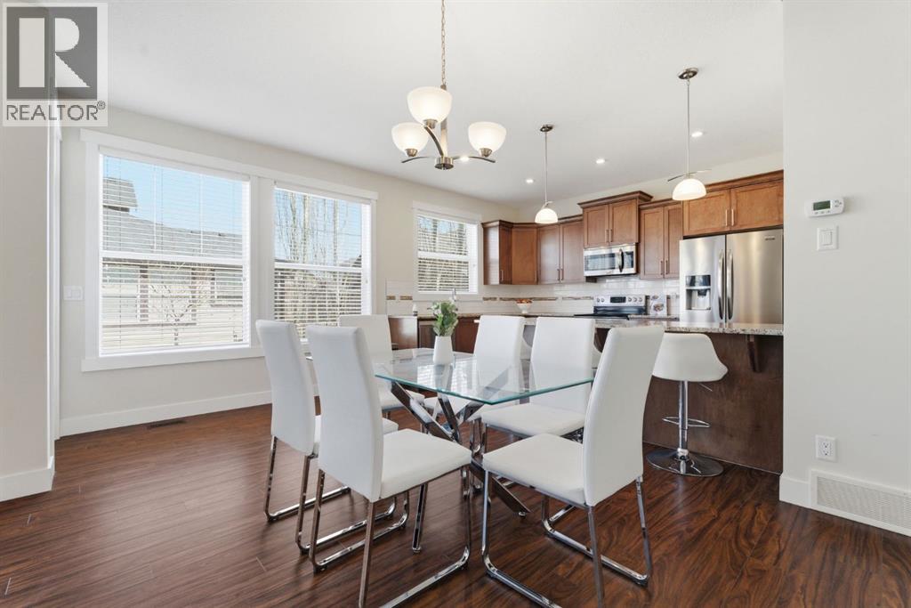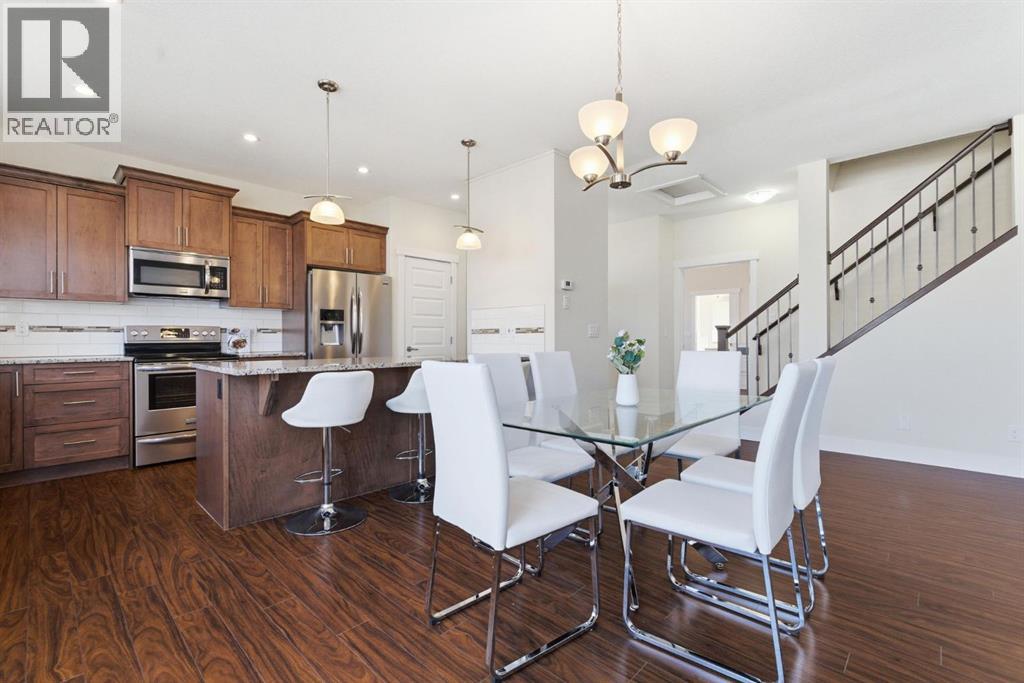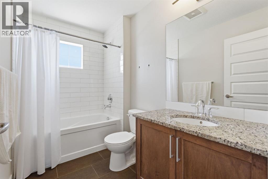 Welcome to this beautifully maintained two-storey townhome in the award-winning community of Coopers Crossing, where style, space, and convenience come together in one exceptional property. Offering over 1,700 sq ft above grade plus an additional 1,000 sq ft in the unfinished basement, this home provides an excellent balance of comfortable living today with room to grow tomorrow. Ideally located close to schools, parks, pathways, shopping, and everyday amenities, this is a property that truly delivers on lifestyle. Step inside to a bright and inviting main floor featuring an open-concept design perfect for both everyday living and entertaining. The spacious kitchen is the heart of the home, complete with granite countertops, stainless steel appliances, abundant cabinetry, and a large sit-up breakfast bar island that offers plenty of prep space and casual seating. The adjoining dining area flows seamlessly into the welcoming living room, where a cozy fireplace creates the perfect setting for relaxing evenings at home. The main floor primary suite is a standout feature, offering a generous retreat complete with a walk-in closet and a luxurious 5-piece ensuite with dual sinks and a soaker tub. This sought-after main floor bedroom layout adds comfort and convenience for a variety of lifestyles. Upstairs, you’ll find a spacious and versatile bonus room ideal for family movie nights, a second living area, playroom, or home office. This level also includes a second good sized bedroom, an additional full bathroom, and a family room area that offers excellent flexibility for guests, children, or multi-purpose living. The unfinished basement adds approximately 1,000 sq ft of future potential, ready for your personal vision whether you choose to create more living space, a gym, hobby area, or simply enjoy the abundance of storage. Step outside to the large deck, perfect for summer BBQs or quiet evenings outdoors. Completing the home is the rare convenience of a double attached garage, providing secure parking and extra storage year-round. Lovingly cared for and thoughtfully designed, this Coopers Crossing gem offers the open-concept main floor, spacious kitchen, main floor primary retreat, upper bonus space, attached garage, and incredible future basement potential all in one of Airdrie’s most sought-after communities. (id:63190)