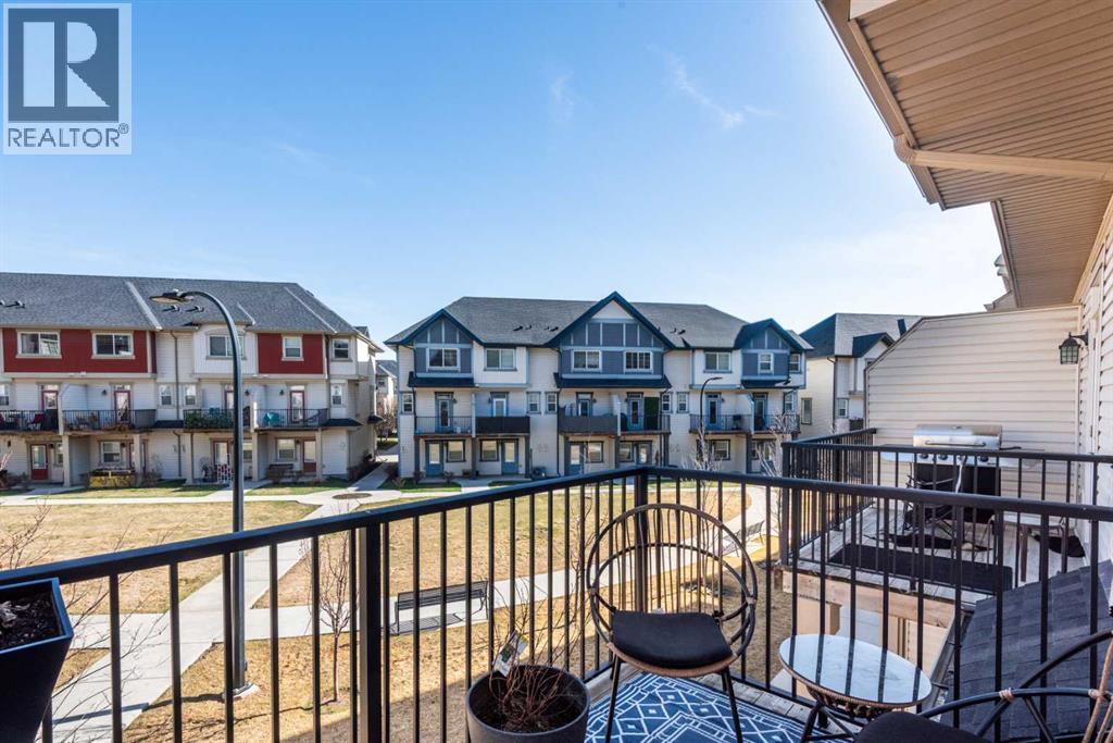 Welcome to this beautifully maintained townhome in New Brighton offering two bedrooms, 2.5 bathrooms, a double tandem garage and the added benefit of a serene courtyard setting - all with low condo fees! The open-concept main level is bright and inviting featuring 9' ceilings and oversized windows that fill the space with natural light. The kitchen is well-appointed with ample cabinetry, stainless steel appliances, and a peninsula with bar seating - perfect for casual meals or entertaining. Step out onto the spacious balcony overlooking the courtyard, complete with a gas hookup for you BBQ. The dining area comfortably accommodates a full-sized table and flows seamlessly into the welcoming living room that's perfectly cozy for movie nights. A convenient 2-piece powder room completes this level. Upstairs, you'll find two generously sized primary suites thoughtfully positioned on opposite ends for added privacy. Each offers its own 4-piece ensuite and excellent closet space (one with a large walk-in closet). The level also includes a large linen/storage closet and laundry closet. The double tandem garage houses the utility room, storage space and exits to a covered patio (beneath the balcony) that sits on the courtyard. This outdoor space offers a relaxing atmosphere and a safe, community-oriented area for kids to play. This unit has not had pets but York 29 is a PET FRIENDLY COMMUNITY. Residents of New Brighton enjoy access to exceptional amenities including parks, pathways and green spaces, along with the New Brighton Club featuring a water park, tennis courts, hockey rink, and year round recreational programs. You're also just minutes away from shopping, restaurants, groceries, banking and everything else McKenzie Town has to offer. Commuting is a breeze with easy access to Deerfoot, Stoney, and 52nd. Additional highlights include kitchen appliances under 4 years old, an upgraded Nest thermostat, a new humidifier on the furnace, doorbell camera, and pride of owners hip throughout. (id:63190)
