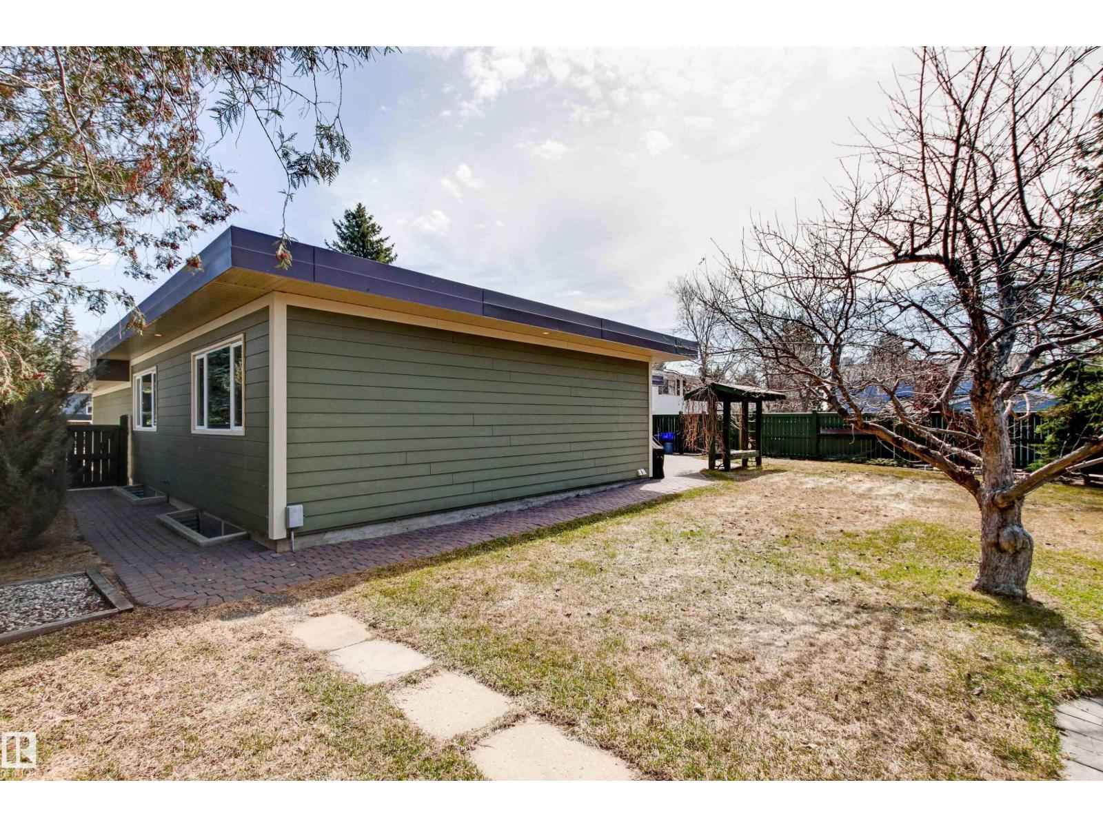 Don't miss this immaculate mid-century modern bungalow in the heart of prestigious Grandview. With 1801 square feet and radiating pride of ownership, this home has been meticulously updated to preserve its authentic architectural character while offering modern comfort. The interior is pristine, but the outdoor living is truly a showstopper. Enjoy your evenings in a gorgeous, west-facing sunny yard featuring a custom pergola and a charming paving stone patio—perfect for summer entertaining. Location is everything here. You are just steps from the famous Grandview stairs and the extensive walking and biking trail system of the river valley. Families will love being within easy walking distance of the highly-rated Grandview Elementary-Junior High School. With a double front-drive attached garage and a lightning-fast commute to the U of A, hospitals, and downtown, this property perfectly balances lifestyle and convenience. A rare gem like this doesn't stay on the market long! (id:63190)