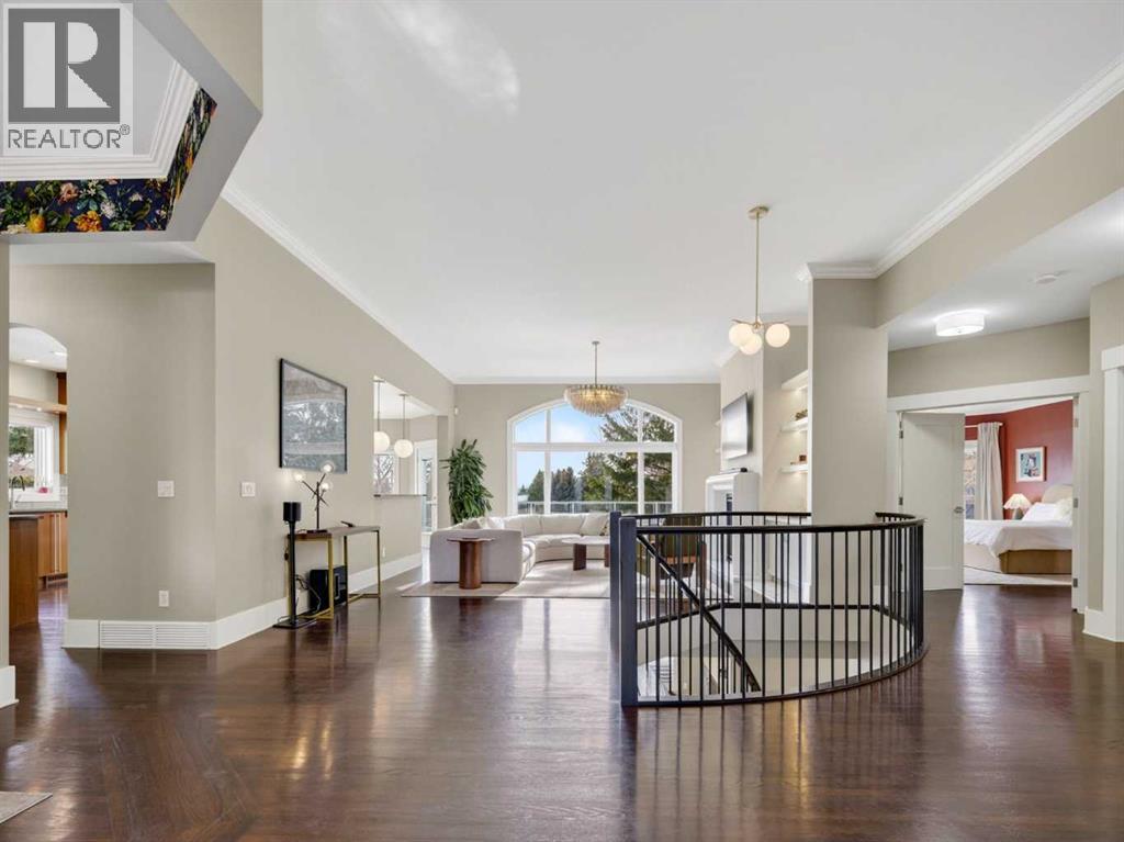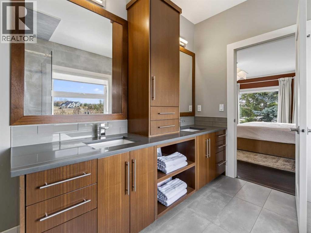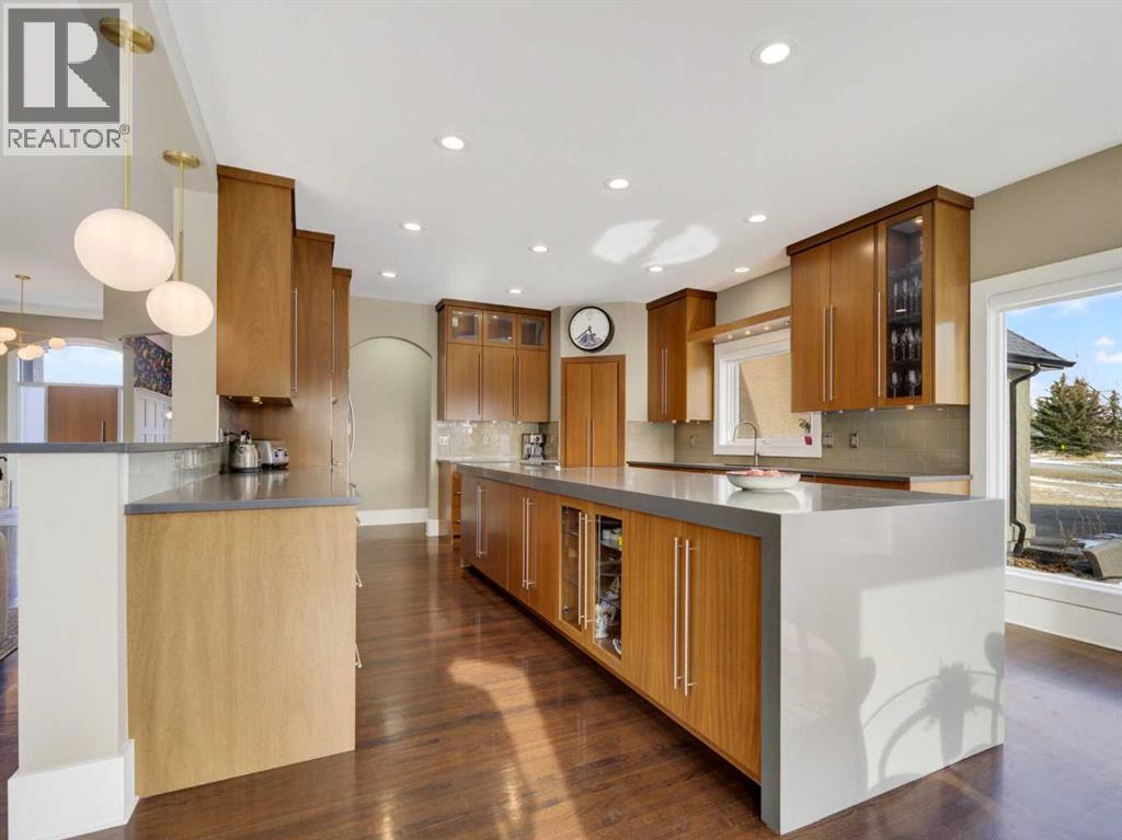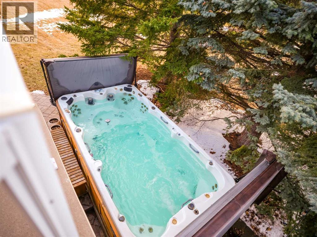 ***Open House Saturday, April 25, 2pm-4pm***Introducing 3 Spring Meadows Lane, perfectly positioned on two acres in Springbank. This beautifully appointed home with over 4800 sq/ft of living space enjoys uninterrupted mountain views, an ever changing backdrop that brings both stillness and perspective to everyday living. Mature landscaping, thoughtfully enhanced with a newly planted screen of trees, creates a sense of privacy that feels both natural and refined. From the moment you step inside, there is a quiet sense of arrival. The entrance draws your eye through the home to expansive windows that frame the landscape beyond, allowing the views to become part of the living experience. Set on a well established street known for its strong sense of community, with school pick up just moments from your door, the setting feels both connected and considered. Originally intended as a forever home, the property has been thoughtfully refined. This is not a renovation for resale, but a careful evolution where quality, craftsmanship, and longevity have guided each decision. An extensive list of upgrades is available. The main floor offers a beautifully balanced layout. A custom designed office with custom cabinetry provides a quiet place to work or read, while the principal living room is both generous and inviting, centred around a reimagined fireplace with a custom cast mantle by DreamCast, a microcement surround, and a Kozy Heat Nordik 48 inch gas fireplace with herringbone detail. Soaring ceilings and expansive windows fill the space with natural light. The kitchen is designed for both everyday living and hosting, anchored by a substantial island with an integrated induction cooktop, solid walnut cabinetry, and generous storage throughout. The primary suite is quietly set apart, with large windows capturing the surrounding landscape, a beautifully updated ensuite, and a generous walk in dressing room. A lofted area offers flexibility for guests, a studio, or additional li ving space. Practicality has been carefully considered, with an organised mudroom, dedicated dog entry, and direct access to the triple heated garage. A secondary stair leads conveniently to the lower level from the garage. The lower level extends the home beautifully, offering a dedicated gym, private cinema room, and a spacious recreation area with a custom arched walk up bar. Two well proportioned bedrooms and a five piece bathroom complete the space, along with walkout access to a sheltered patio and swim spa. Outdoors, a professionally lit sport court extends the home’s versatility, offering a wonderful setting for both recreation and relaxed evenings. A rare opportunity to enjoy acreage living in an established pocket of South Springbank, where thoughtful design, community, and mountain views come together with ease. Don't miss your opportunity to live in an updated home in Springbank with mountain views. (id:63190)