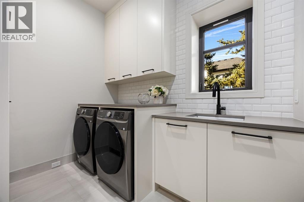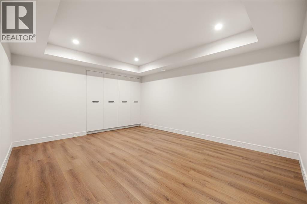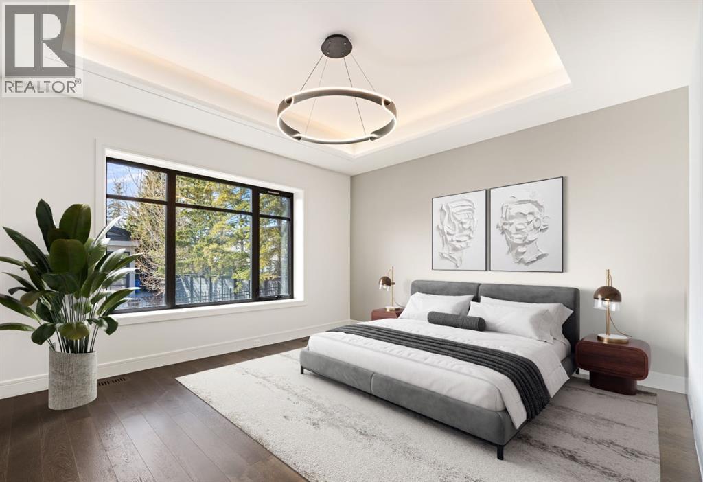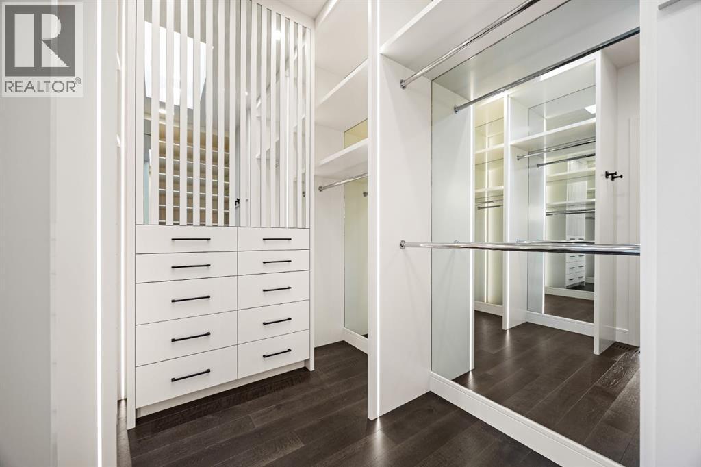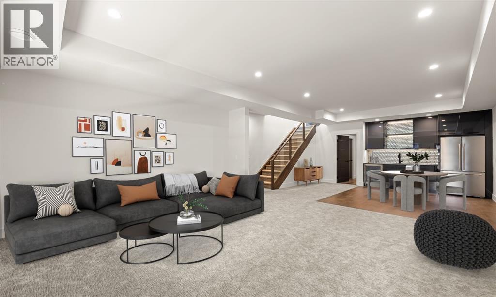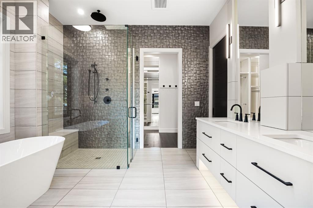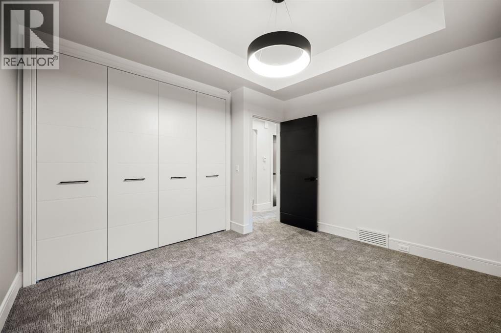 Presenting an opportunity to own a never-lived-in residence in Elveden Court, a prestigious and sold-out community of only 26 bungalow villas on Calgary’s west side. This luxury home represents the pinnacle of "smartsizing," specifically designed for discerning homeowners who refuse to compromise on quality while seeking the ultimate lock-and-leave lifestyle. Whether you are spending your winters south or your weekends in the mountains, this home offers the peace of mind and maintenance-free ease you’ve been looking for without sacrificing bespoke finishes and premium construction. The interior is a masterclass in modern elegance, defined by a high-contrast palette where dark elements meet crisp gallery walls and gleaming floors. The open-concept main level features soaring ceilings, multiple skylights, and expansive windows that flood the space with natural light. A custom fireplace surround reaching the 16’ ceilings anchors the great room creating a chic focal point in the home, while large doors transition seamlessly to a west-facing patio. This outdoor oasis extends the living space and is elevated by a built-in gas fireplace and a remote-controlled louvred pergola, allowing customized sun exposure or protection from the elements while entertaining.The kitchen is a flawless blend of style and utility, featuring premium, integrated Wolf and Sub-Zero appliances, custom cabinetry, plenty of counter space and a commanding island wrapped in deep, inky quartz that provides a sophisticated contrast to the light cabinetry. The main floor continues to impress with a primary suite that serves as a true sanctuary, boasting a walk-in dressing room and a spa-inspired ensuite with in-floor heat, dual vanities, a sizeable shower and a freestanding soaker tub. A private den with sleek barn door access, a mood-filled powder room featuring bold designer wallpaper and a statement pendant light, and a well-appointed laundry room complete the main level, ensuring all your daily es sentials are accessible on one floor.The fully developed lower level, with nine-foot ceilings and a second fireplace, is engineered for lifestyle flexibility and hosting. A generous recreation area features a designer wet bar with custom glossy millwork and dual refrigeration, while two additional bedrooms provide ideal accommodations for guests or teens. A flex room offers the perfect footprint for a home gym or hobby space. The spacious lower patio leads directly to the fenced, private west facing yard. The oversized double garage boasts a heated slab, transom windows and ceiling height to accommodate a car lift. Built to an exceptional standard with full Insulated Concrete Form (ICF) construction to the soffit line and triple-glazed windows, this home offers superior sound attenuation and thermal efficiency. Located just minutes from Aspen Landing and the Rocky Mountains, this villa offers an unparalleled blend of privacy and convenience for the next chapter of your life. (id:63190)