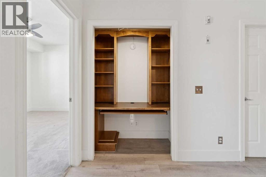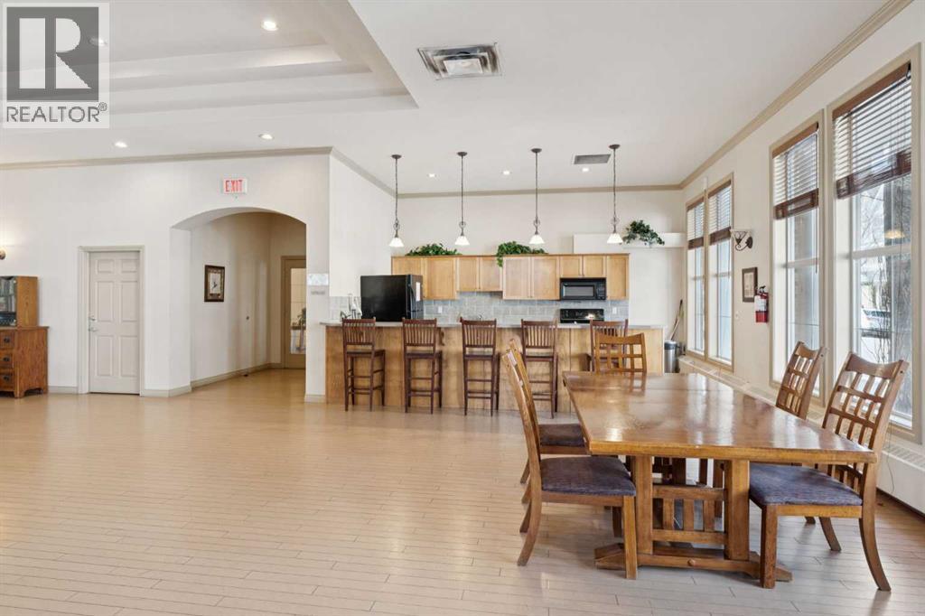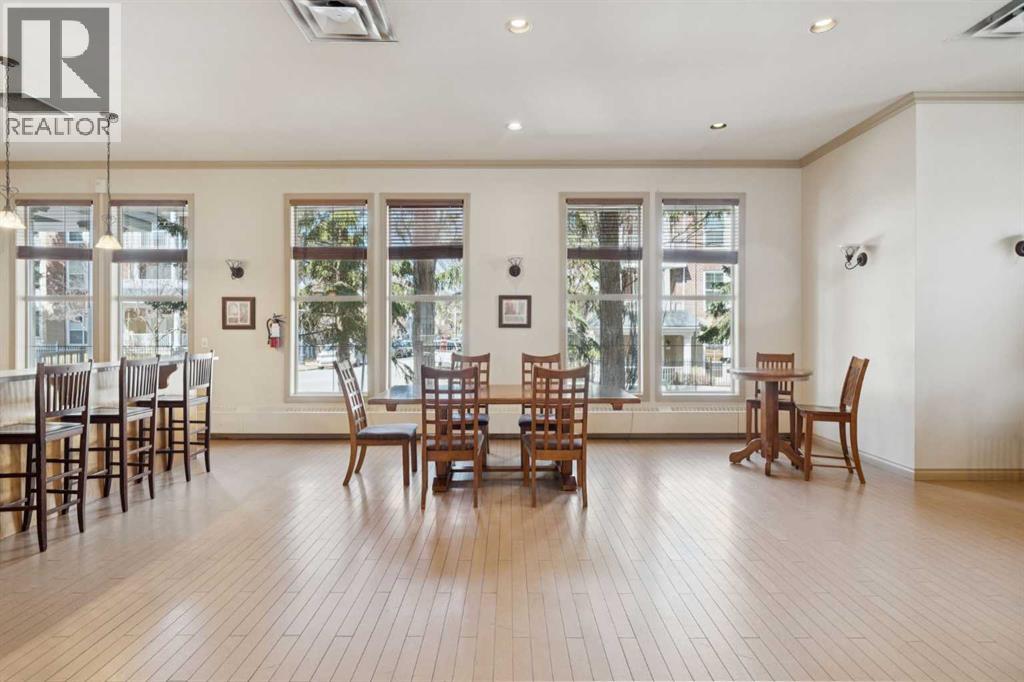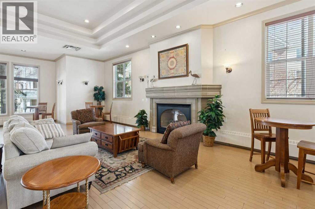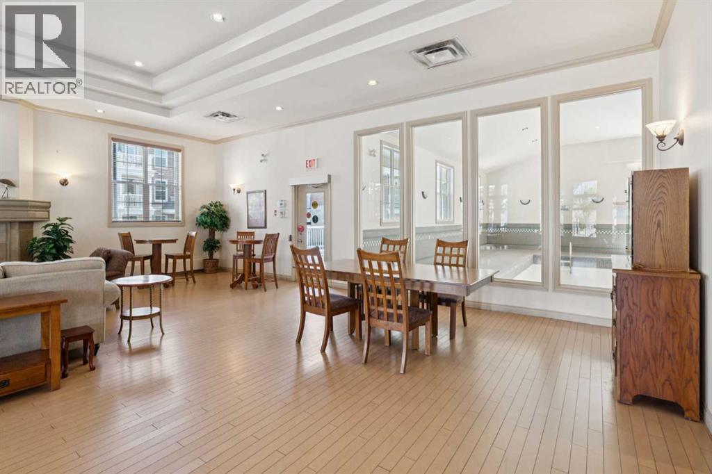 This premier main floor residence within the prestigious Courtyards of Garrison Woods offers a sophisticated blend of executive style and effortless accessibility. Located in a secured +18 adult living building, this one bedroom, one bathroom floor plan is designed for the discerning homeowner who prioritizes both scale and functionality, featuring an expansive open concept layout enhanced by high ceilings. The principal living area is anchored by a dedicated dining space, a rare find in urban condominiums that allows for authentic hosting and formal gatherings. For the modern professional, a concealed built-in desk provides a streamlined "tuck-away" office solution. The interior living transitions naturally to a private back patio, providing a distinct advantage for outdoor grilling and social engagement. This exterior retreat offers direct access to the beautifully landscaped courtyard and visitor parking. Residents of The Courtyards of Garrison Woods benefit from an exceptional suite of clubhouse amenities, including a private indoor pool, a fitness center, and a complete social room tailored for larger events. Situated in one of Calgary’s most walkable enclaves, this residence represents a unique opportunity for a refined, adult-oriented urban lifestyle in a highly sought-after location. (id:63190)