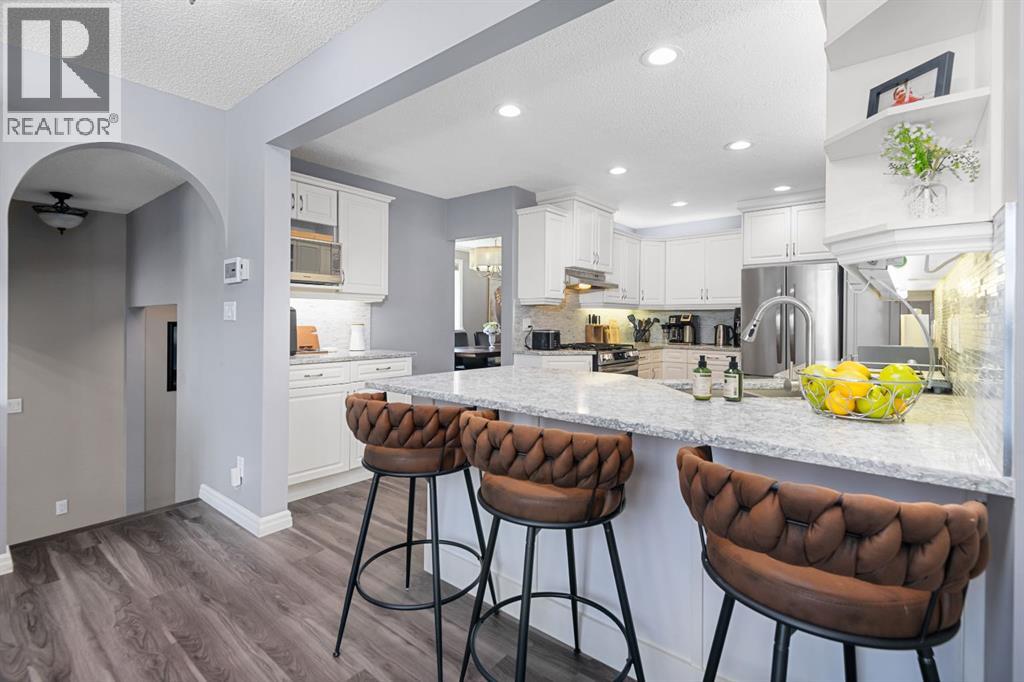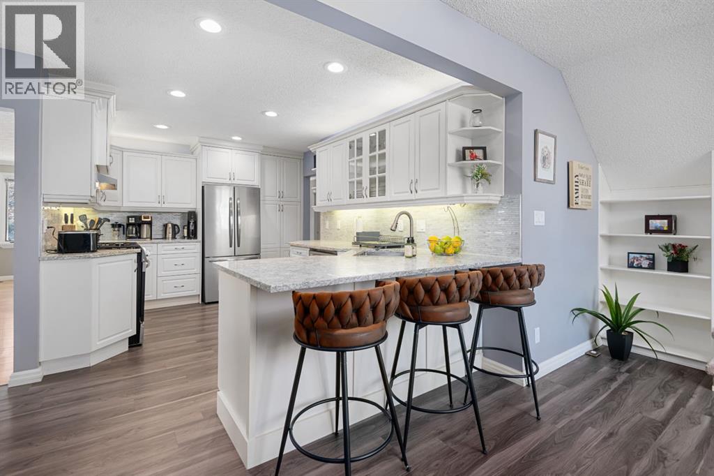 Located on a quiet crescent in Brentwood, this extensively upgraded family home offers over 2,300 sq ft above grade plus a fully developed basement and a rare 7-bedroom layout, ideal for large or growing families.This home has been invested in including; a fully renovated kitchen with granite countertops, updated cabinetry, new backsplash, and updated flooring. The entire home has been painted, with new carpet in the basement and modernized finishes throughout.The main floor features spacious living and dining areas, oversized windows, and a functional layout that flows seamlessly into the kitchen and family room. A standout feature is the main floor bedroom with its own private ensuite, perfect for guests, extended family, or a private workspace.Upstairs, the primary retreat offers a walk in closet, a beautifully updated ensuite, and access to a sunny south facing balcony—creating a true private escape.The fully developed basement includes a separate entrance, large recreation and games area, two additional bedrooms with egress windows, a full bathroom, and a spa inspired steam shower with LCD controls, offering a true at home wellness experience.Major mechanical upgrades include a brand new combi boiler system, and air conditioning for year round comfort.The exterior has been fully refreshed with new stucco on both the home and garage, updated doors, and a complete landscaping package. The front yard features beautifully tiered, low maintenance landscaping with mature trees, stonework, and a welcoming front approach, while the backyard is set up for relaxation with a hot tub and gazebo.An oversized double detached garage, front driveway, and additional trailer parking complete the package.Located just minutes from Nose Hill Park, top rated schools, the University of Calgary, LRT, shopping, and all amenities this is a rare opportunity in one of Calgary’s most sought after communities. Upgrades list available (id:63190)