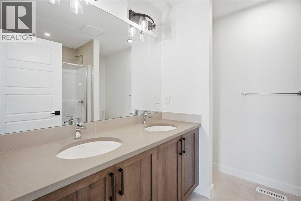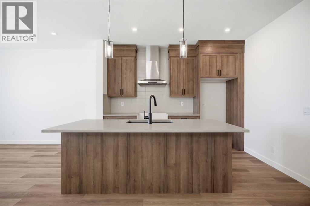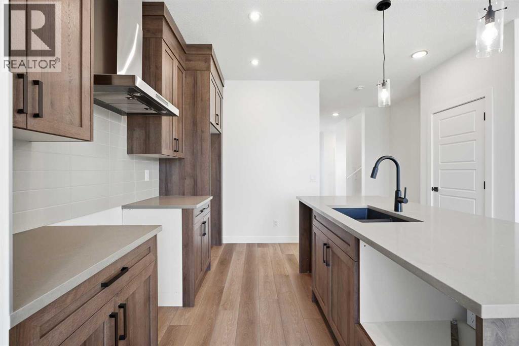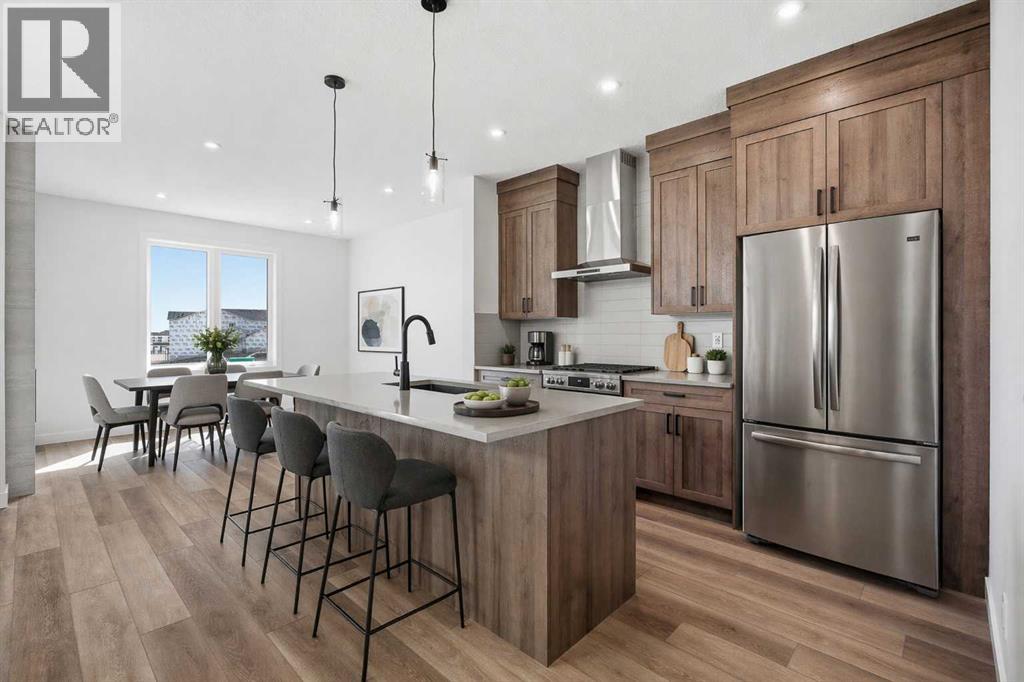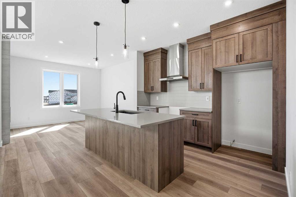 Welcome to Bridgeport in Chestermere, where style, quality, and thoughtful design come together in this beautifully crafted new home with exceptional curb appeal.From the moment you arrive, you’ll notice the inviting exterior and upgraded gel-stained fibreglass front door that sets the tone for what’s inside. Step into a bright and open entryway that flows seamlessly into the main living space, highlighted by 9’ ceilings and extra-wide vinyl plank flooring that carries throughout the main floor.The heart of the home is the stunning kitchen, featuring quartz countertops, full-height cabinetry to the ceiling, a silgranit undermount sink, and a full 5-piece appliance package included by the builder. The space opens effortlessly into the dining and living areas, where you’ll find an upgraded fireplace with a modern tile surround perfect for cozy evenings and entertaining guests.Upstairs, convenience meets comfort with a well-designed layout that includes upper floor laundry. The spacious primary bedroom offers a relaxing retreat, complete with a private ensuite featuring a double vanity. Additional bedrooms provide plenty of room for family or guests.The basement is ready for your finishing touches, offering a functional layout with endless potential to customize to your needs. Step outside to enjoy the rear deck ideal for summer evenings. Take advantage of the garage pad already poured and included in the purchase price.Built by a reputable developer with a proven track record since 1988, this home showcases quality craftsmanship throughout, including triple pane windows and a high-efficiency 2-stage furnace for year-round comfort and energy efficiency. Offering the perfect blend of style, function, and long-term value, this is an opportunity you won’t want to miss in one of Chestermere’s newest communities. (id:63190)