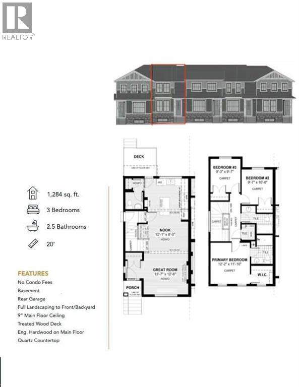 Discover the Hamilton, expertly crafted by Douglas Homes. This 1,284 sq. ft. end-unit, fee simple townhouse offers a turnkey lifestyle with the added convenience of a side entrance and no condo fees. Located in the desirable community of AmbleRidge—one of Calgary’s newest neighborhoods—this home is thoughtfully designed with quality upgrades already included.Enjoy 9-foot knockdown ceilings, luxury vinyl plank flooring, quartz countertops, stainless steel appliances, and 42-inch upper cabinetry. The bright, open-concept main floor features a spacious great room with oversized windows and an optional fireplace, creating a warm and inviting atmosphere. The impressive kitchen overlooks the sunny west-facing backyard and deck, and includes a 9-foot island with seating for 6–8—perfect for entertaining. The centrally located dining area allows for seamless flow, making it ideal for larger gatherings.Upstairs, the primary suite offers a walk-in closet and a stylish three-piece ensuite complete with quartz countertops and a vanity with drawers. Two additional generously sized bedrooms provide flexibility for family, guests, or a home office. A well-appointed four-piece main bath includes quartz surfaces, a large vanity, and a deep soaker tub. An upper-floor laundry room adds everyday convenience.The side entrance to the basement enhances the home’s future potential, offering flexibility for additional living space or development. Outside, the property is fully landscaped and features a rear deck, fenced yard, and double garage.Don’t miss this opportunity—book your viewing today. Photos are from a previously built home and are intended to showcase finishes and layout; actual features may vary.First-Time Home Buyers’ GST Rebate: Eligible buyers may receive up to $50,000 on a new home purchase. Applicants must be 18 or older, a Canadian citizen or permanent resident, and not have owned or lived in a home owned by themselves or their spouse/common-law partner within the pas t four years. All terms and conditions are subject to Government of Canada/CRA guidelines (id:63190)