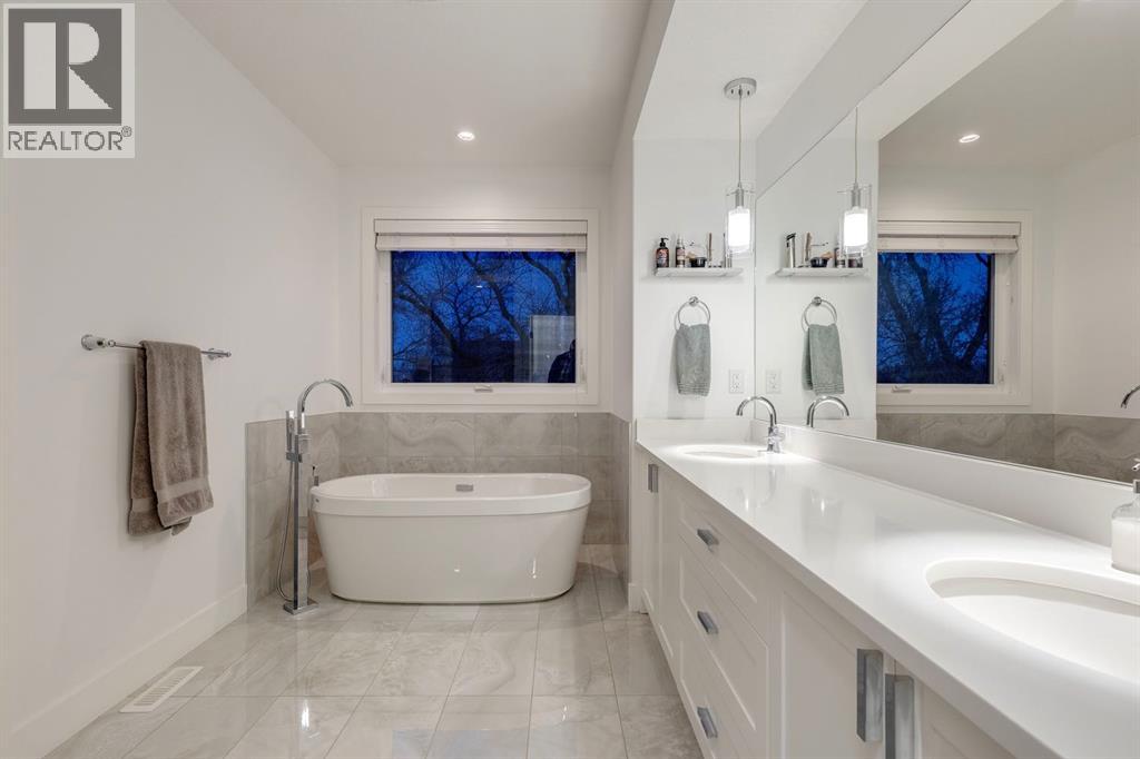 Welcome to 232 24th Ave NE. This wonderful home is situated in the highly desirable inner city community of Tuxedo, located on one of the nicest streets in the community. The main floor consists of a dining room, kitchen, living room, mudroom and powder room. Engineered hardwood flows through out the main floor, upgraded cabinetry, a large island, SS Appliances and quartz countertops are the show stoppers in the kitchen, while the living room features a beautiful fireplace and floor to ceiling patio doors. Upstairs you will find 3 bedrooms, a bonus room, laundry room and two full baths. The primary bedroom has a large walk-in closet and a beautiful 5 piece en-suite. The basement is fully developed with an additional 2 bedrooms, a full bath, recreation room and wet-bar. The yard has been fully landscaped with a cozy deck out back with gas for BBQ, a fire pit and a double detached garage. All just steps away from restaurants, schools, playgrounds, parks and the main bus line to downtown. FEATURES INCLUDE: HARDWOOD FLOORS, SS APPLIANCES, UPGRADED CABINETRY, CENTRAL AIR, OFFICE/BONUS ROOM, WET-BAR, FIRE-PIT, DOUBLE DETACHED GARAGE. (id:63190)