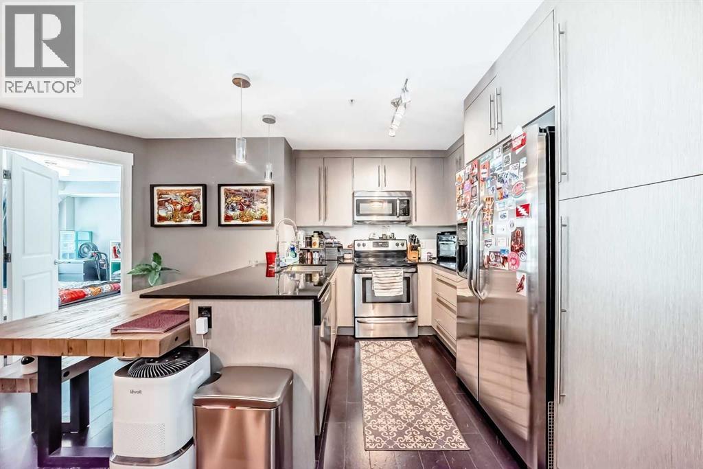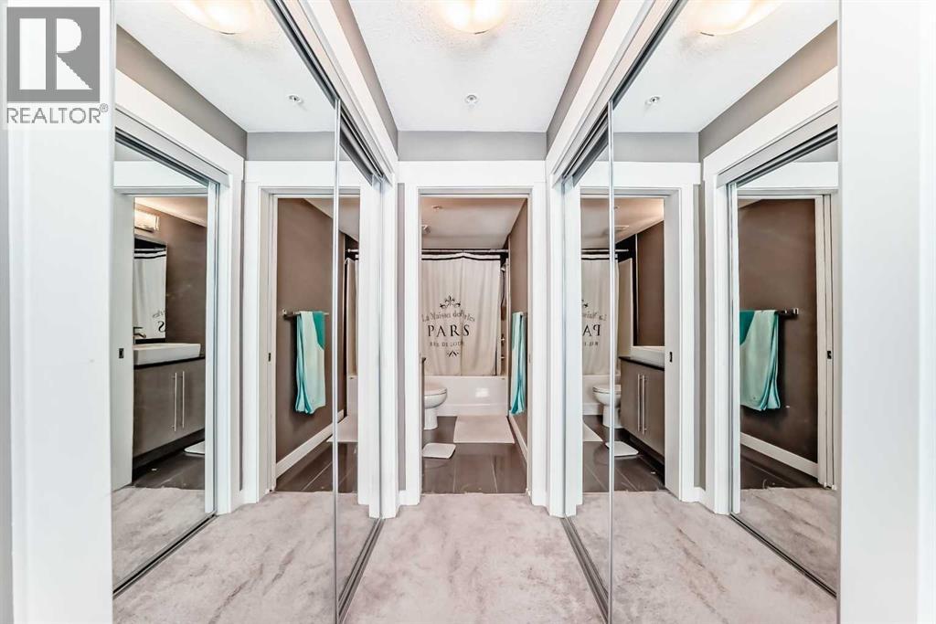 Rare! A 2 bedroom, 2 bathroom apartment with 2 TITLED PARKING stalls and LAKE ACCESS in the sought after community of Mahogany. Located on the third floor, close to the elevator, this sunny and bright unit has been impeccably maintained. With two bedrooms with huge closets located on either side of the unit for privacy, there are also 2 full, 4 piece baths, an in suite laundry room, a 'den' which is great flex space depending on your needs all joined together by the open great room. The kitchen has tons of counter and eating space and comes with stainless steel appliances. The sunny south facing balcony is a peaceful outdoor space. You will enjoy the convenience of two titled stalls, one underground, steps to the elevator includes additional storage and the other on the surface is just a short walk. Located close to the lake entrance (yes, private lake membership comes with this unit) where you can enjoy a variety of year round activities, included with your membership. Retail and most services are just a block or two away and quick and easy access to Stoney Trail is super convenient. Vacant possession is available any time after May 31st (id:63190)