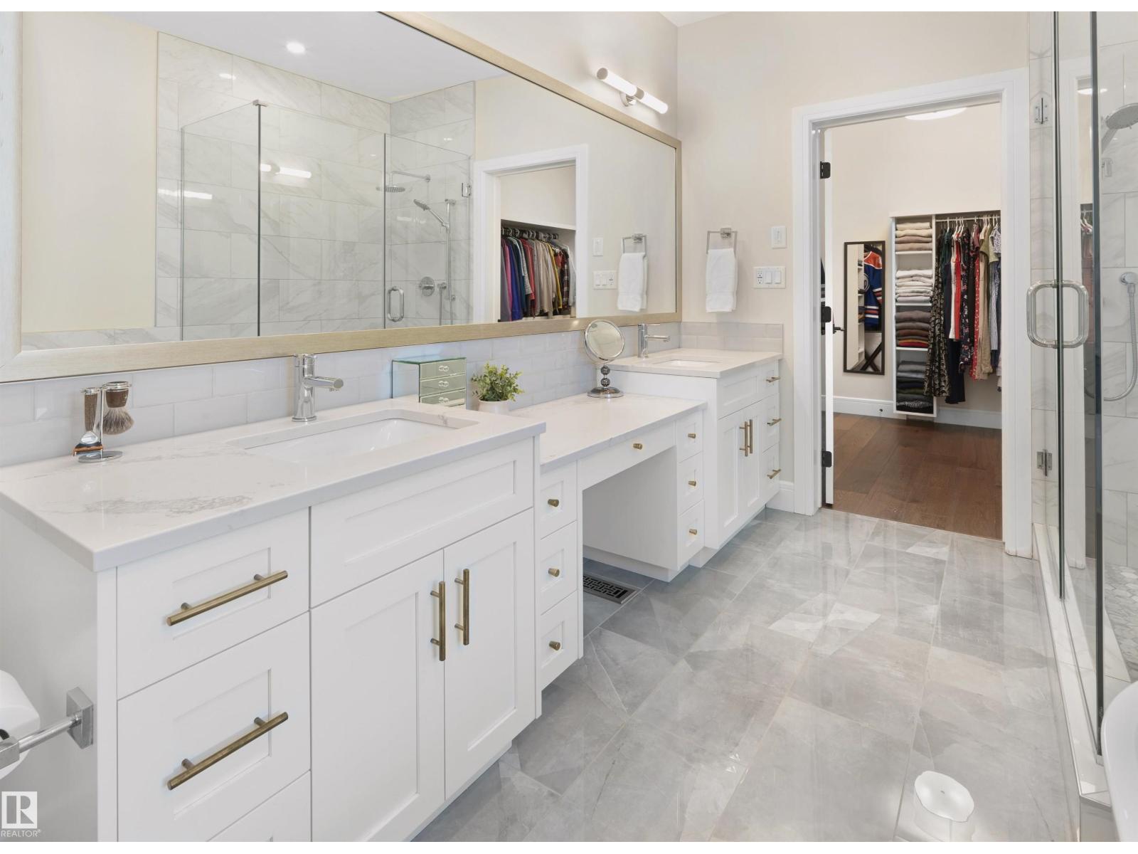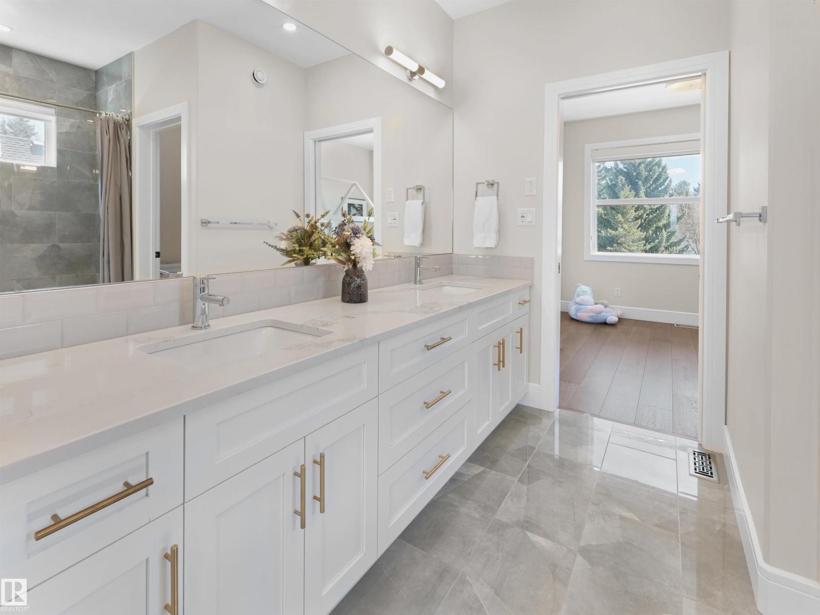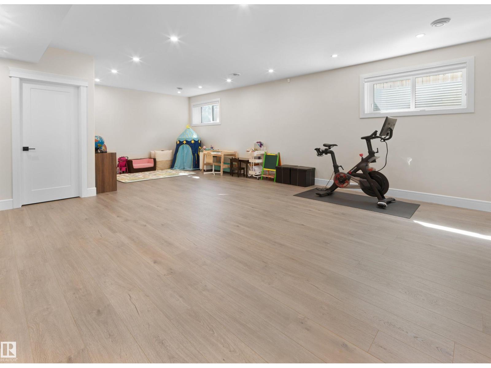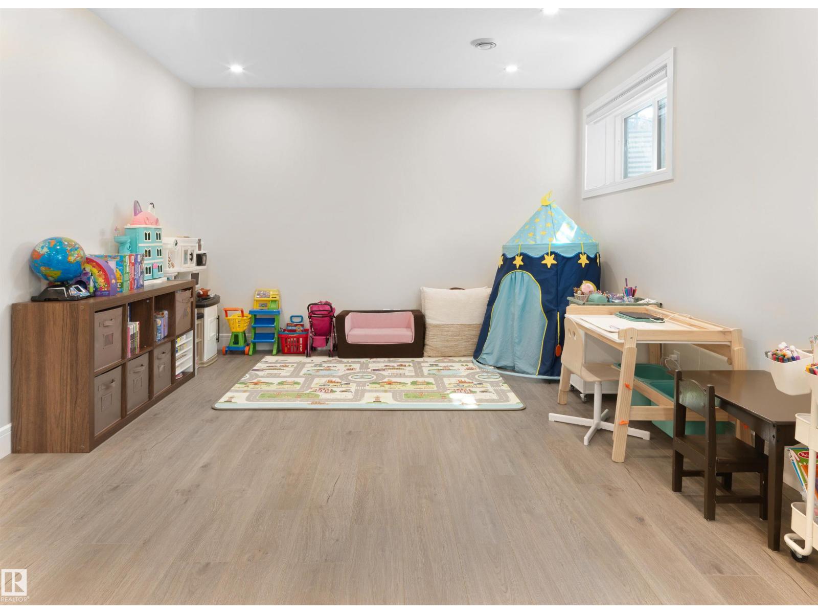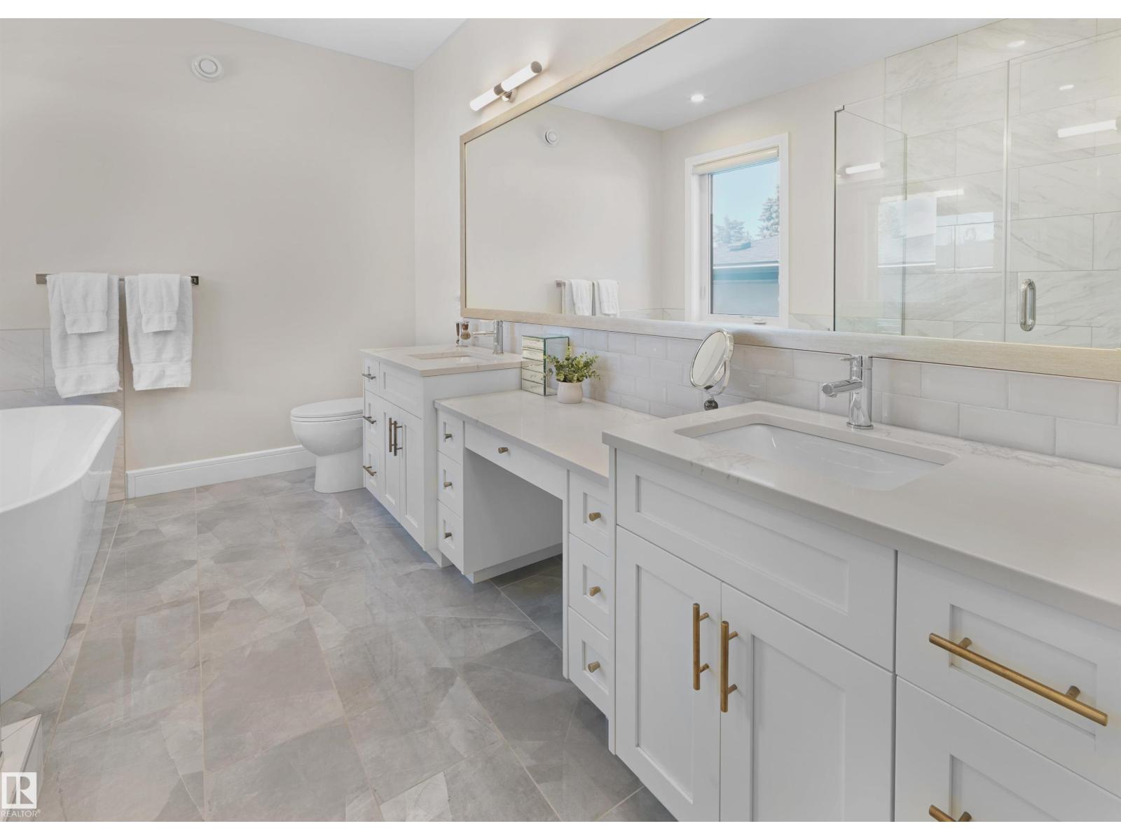 Belgravia. Steps from Saskatchewan Drive and the river valley trails. This 4+1 bed, 4.5 bath infill on a 50' lot is built for the neighbourhood it sits in. Inside, 11' painted ceilings, designer lighting, and wide plank hardwood throughout the main and upper floors. The main floor has it all: living and dining rooms, a chef's kitchen with a large island and professional appliances, a butler's kitchen, and a dedicated office. Upstairs, 4 beds including a primary w/ full ensuite and views toward Saskatchewan Drive, plus a jack & jill and a private ensuite for the other three. Basement delivers a wet bar, rec room, theatre room w/ projector and home theatre system included, 5th bed, and full bath. Landscaping redone in 2022; low-maintenance out front, with grass & a veggie garden out back. Features: 3-zone heating, HRV, HEPA filtration w/ dedicated cabinet (2025), reverse osmosis, A/C (2021), insulated and drywalled garage. Walk to the U of A and the hospital. Belgravia doesn't often give up homes like this. (id:63190)