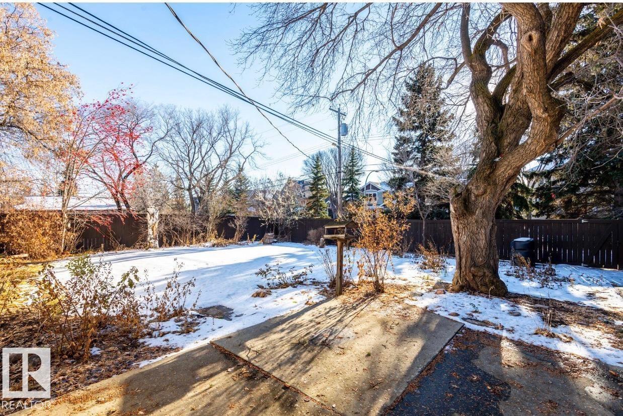 Terrific Potential in sought-after Belgravia! Custom-designed, well-maintained 3-bedroom bungalow on a massive 62'x130' lot siding onto a walkway. Perfect for families, investors, or developers. Exterior totally redone with vinyl siding, capped windows, soffits, fascia. Inside, gorgeous hardwood under carpets throughout main floor. Spacious living room with big windows facing private, treed backyard. Upgraded furnace & HWT. Main floor laundry. Lower level offers two generous areas—media or games room—flexible for your lifestyle. Immense south-facing yard, ideal for kids, pets, summer gatherings. Single garage & long driveway. Steps from University of Alberta, Whitemud Ravine trails, and North Saskatchewan River valley. A rare find! (id:63190)