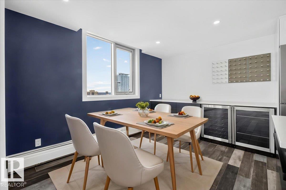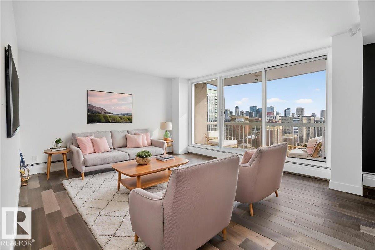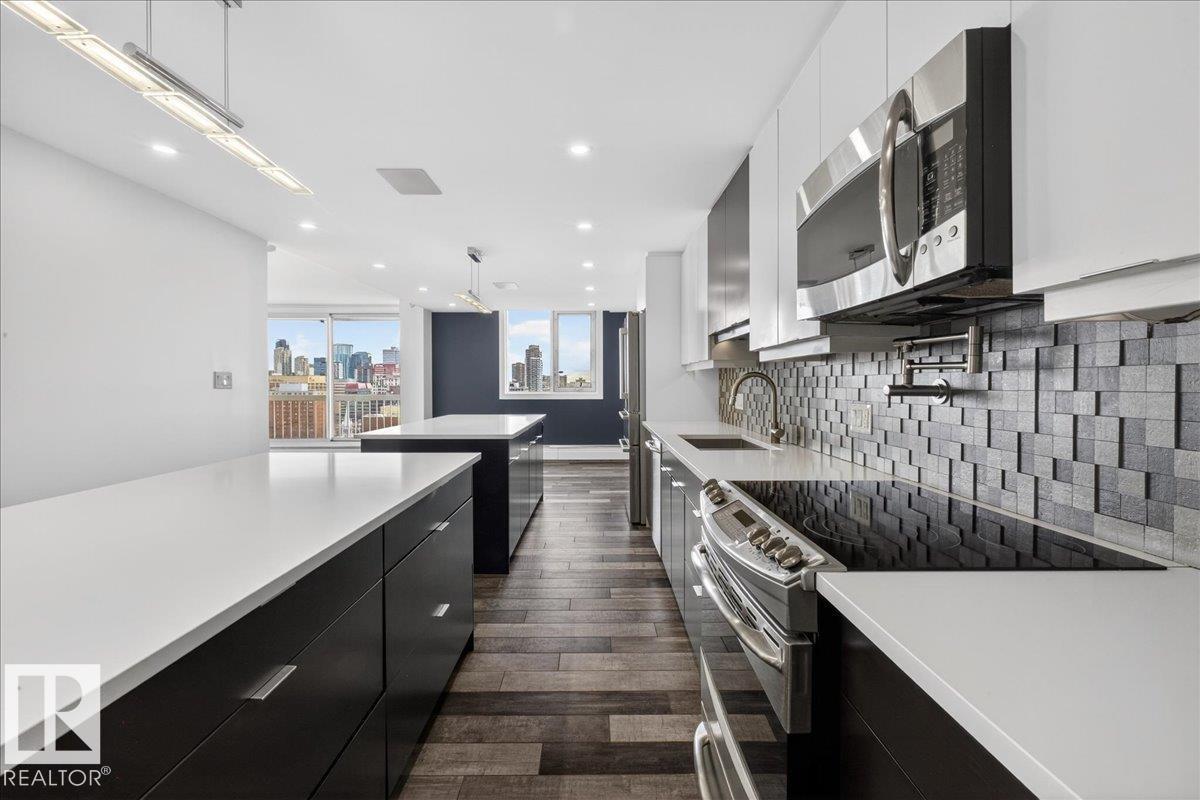 Experience refined luxury in this executive penthouse just steps from Edmonton’s river valley, where lifestyle and location come together effortlessly. This exceptional home features two private balconies with stunning views of downtown and the river valley, perfect for morning coffee or evening wine. The gourmet kitchen impresses with quartz countertops, abundant cabinetry, pot filler, bar fridge, and wine cooler, ideal for everyday living and entertaining. High end finishes shine throughout, with built-in speakers and custom closet organizers offering both style and function. Enjoy underground heated titled parking, a fully equipped fitness center, sauna, and a pet-friendly building. Complete with access to an exclusive sky lounge for unforgettable gatherings, this is sophisticated penthouse living in an unbeatable location. (id:63190)