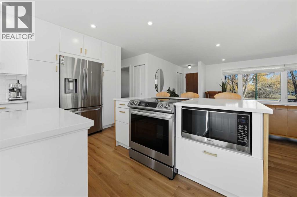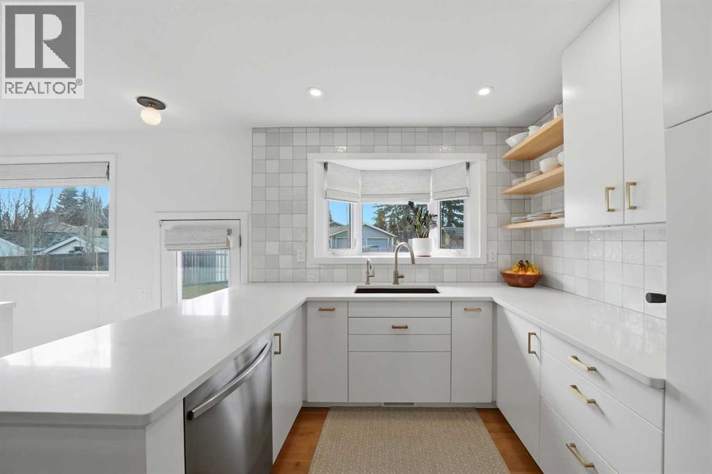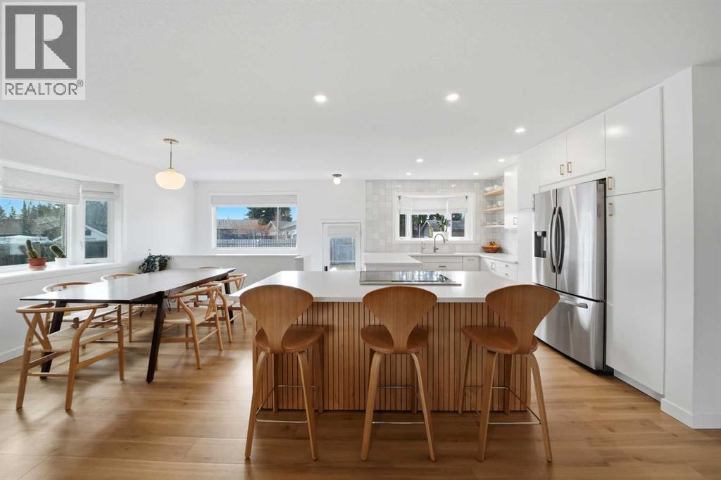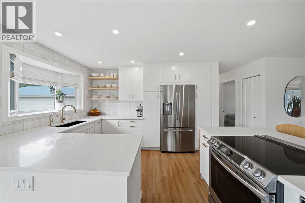 Welcome to this beautifully updated, move-in ready bungalow nestled in the heart of Sunnybrook—one of Red Deer's most established and sought-after mature neighbourhoods. Thoughtfully renovated with care and intention, this home offers the perfect blend of comfort, quality craftsmanship, and everyday functionality, both inside and out. Over the years, extensive upgrades have been completed, including an acrylic stucco exterior, commercial-grade LVP flooring, vinyl windows, mid-century-modern lighting, a high-efficiency furnace, 50 gallon HWT, all new plumbing & electrical, back water valve, reverse osmosis system and the recent addition of permanent gemstone exterior lighting and solar panels—bringing both style and long-term value. From the moment you arrive, the inviting curb appeal sets the tone. A north-facing composite deck offers a peaceful place to relax while overlooking the serene green space, which local wildlife often visits. Inside, the open-concept layout feels bright and welcoming, with a spacious living room enhanced by custom blinds and seamless flow into the dining area and beautifully designed kitchen. The kitchen is truly the heart of the home, featuring abundant cabinetry with convenient drawer systems, high-end stainless steel appliances—including a sleek downdraft ventilation for the stove—quartz countertops, a stunning tile backsplash, and professional-grade plumbing fixtures. The thoughtfully designed layout continues on the main floor, offering three comfortable bedrooms—perfect for family living—along with a beautifully appointed 5-piece bathroom. This space feels like a private retreat, featuring an oversized double vanity with quartz countertops, upgraded lighting and plumbing fixtures, and the added comfort of a bidet. Downstairs, the fully finished basement carries the same level of quality and care found throughout the home. The expansive family room provides plenty of space for kids to play, movie nights, or hosting guests, while an ad ditional flex area offers the versatility for a home gym, office, or hobby space—tailored to your family’s needs. Completing the lower level is a fourth bedroom (egress window added), a stylish 3-piece bathroom, and a well-designed laundry room with ample storage to keep everything organized and out of sight. The oversized, mature south-facing yard is bathed in natural sunlight throughout the day, creating the perfect setting for relaxing, entertaining, or simply enjoying time with family. A spacious composite deck offers a low-maintenance space for summer barbecues or quiet evenings outdoors. Adding to the home’s exceptional functionality is the oversized 24x30 heated garage—ideal for year-round use for parking, storage, or hobbies (220 volt wiring). Thoughtfully finished with a durable metal roof and permanent LED exterior lighting. A beautifully maintained home that perfectly blends thoughtful upgrades with an unbeatable mature location. (id:63190)