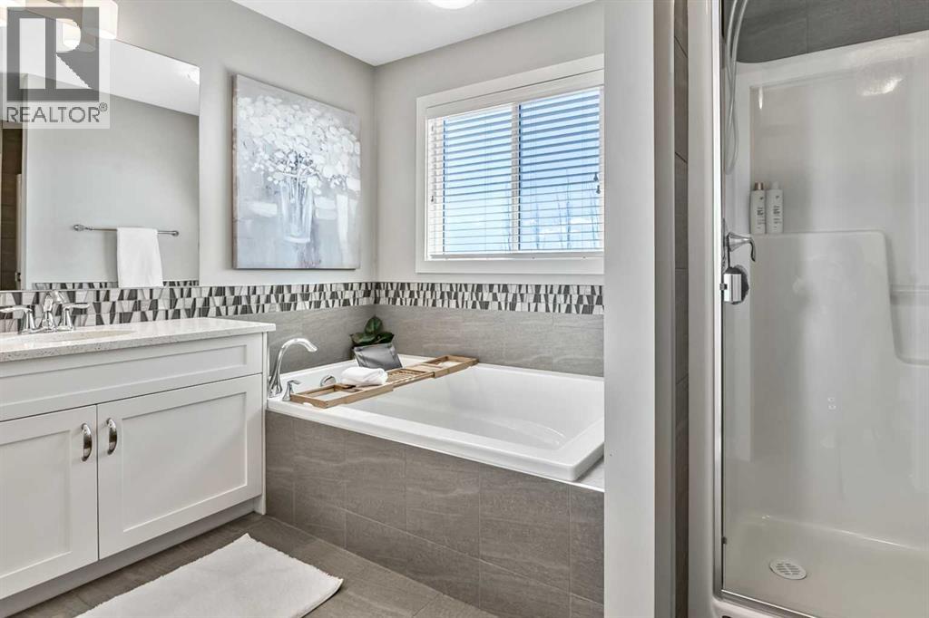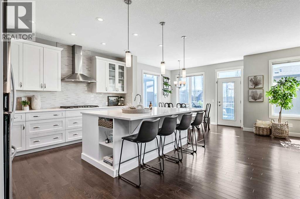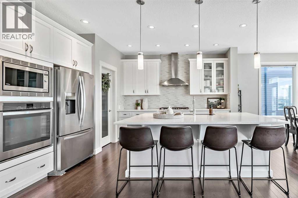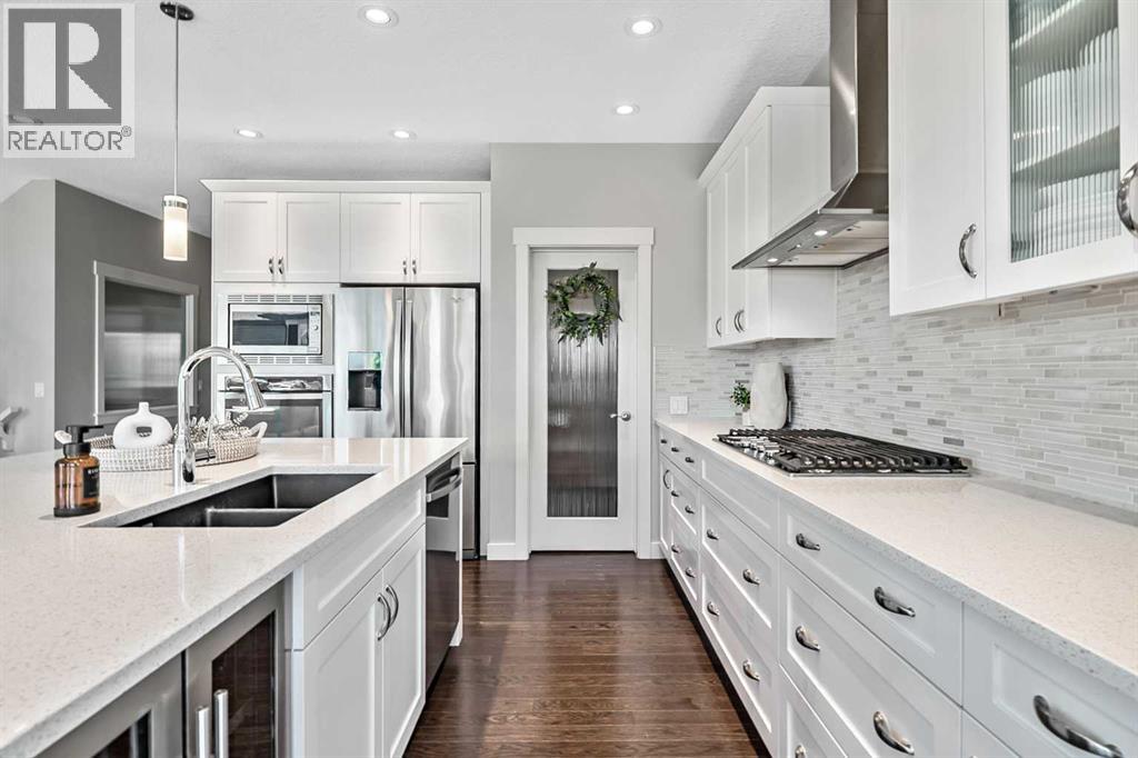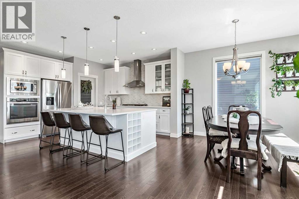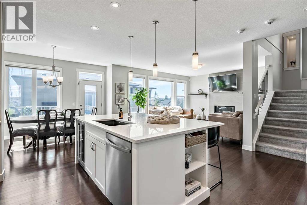 **Open House Sat 2-4** Welcome to 108 Mount Rae Heights—an exceptional fully developed 5-bedroom Sterling-built “Berkshire” home in the sought-after community of Mountainview, just steps to pathways and stunning views of the Rocky Mountains, Sheep River, and nature reserve. Offering nearly 4,000sqft of developed living space, this thoughtfully designed home features a bright, open layout with superb natural light and exquisite finishing throughout. MAIN FLOOR features a spacious entry foyer, private home office, and a showstopping designer kitchen with upgraded cabinetry, stone countertops, gas range, large island, bar fridge, wine storage, modern backsplash, and walkthrough pantry to the mudroom and garage. The open living and dining areas are anchored by a gas fireplace and framed by large southwest-facing windows that flood the space with natural light and capture incredible views. UPPER LEVEL features a vaulted bonus room, laundry room, and four generous bedrooms, including three connected by a Jack & Jill bathroom. The spacious primary retreat with mountain views offers large walk-in closet, and a luxurious ensuite bathroom with soaker tub, walk-in shower, and dual sinks. FULLY DEVELOPED WALKOUT BASEMENT with 9' ceiling height features spacious rec room, fifth bedroom, and full bathroom—perfect for guests or growing families. Did we mention AC, hardwood floors, water softener, newer blinds throughout, plus finished garage with epoxy flooring? Truly, this home has it all! Located on a quiet, family-friendly street close to paths, parks, playgrounds, and quick access to Calgary. Explore the virtual tour to experience it for yourself (click 3D for virtual walkthrough). (id:63190)