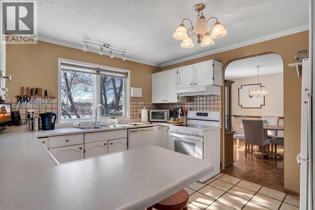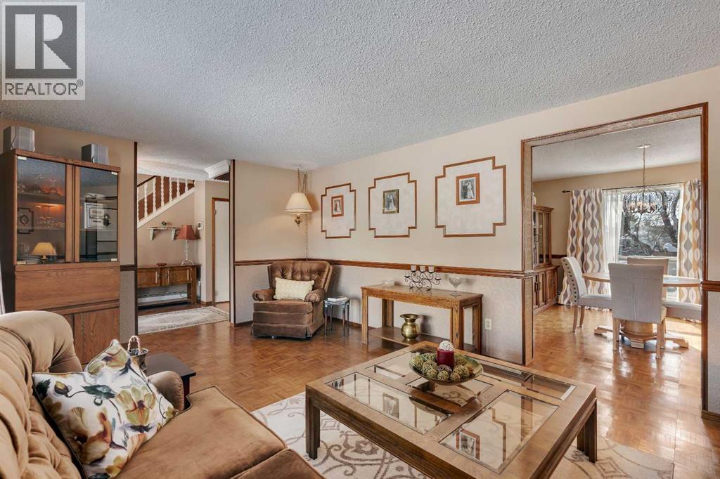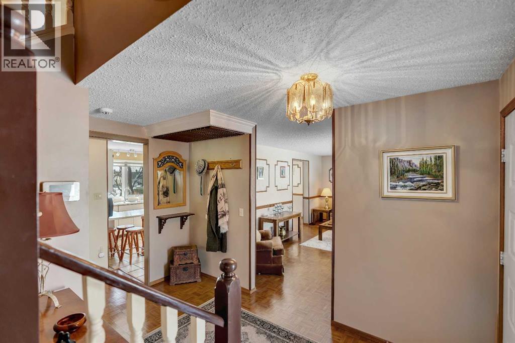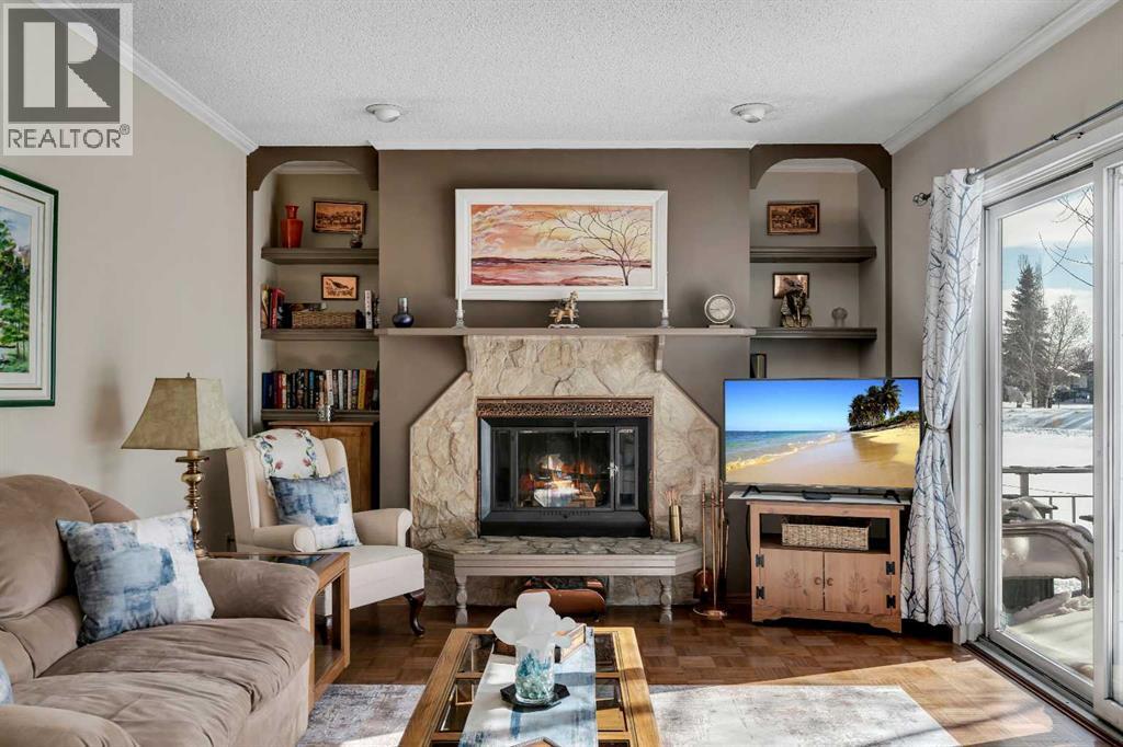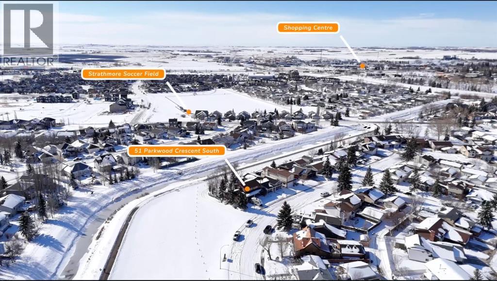 BACKING AND SIDING ONTO GREENSPACE | CORNER LOT BACKING ONTO CANAL | They don’t build them like they used to! Welcome to 51 Parkwood Crescent, located in the family friendly town of Strathmore AB. This fully finished home offers a rare combination of privacy, space, and a beautiful private setting. From the moment you arrive the large covered front veranda sets the tone, with great curb appeal and a welcoming feel. Inside, the layout is spacious and functional with a centrally located kitchen featuring a breakfast bar, pantry, slide out drawers and plenty of workspace, all connecting nicely to both the formal dining room and large living room, flooded with natural light through the large front windows. A separate main floor family room with a stone faced fireplace adds another comfortable space to unwind, leading right through the patio doors to a very private, well treed and landscaped backyard backing directly onto the canal with a large deck space, perfect to enjoy those longer summer evenings with family and friends. Upstairs features 3 generously sized bedrooms including an oversized primary retreat with its own sitting area, walk in closet and large ensuite. The additional bedrooms also offer great space, including walk in storage and large closets and a second 5pc bathroom. Downstairs is fully finished with a rec room, games area, hobby space, office, and an additional bedroom with a non conforming window, along with a 2 piece bath and large laundry area complete with sink and folding table. The home carries a unique English country charm throughout, with well maintained hardwood flooring on the main and thoughtful details throughout. Set on a lot that backs and sides onto park, greenspace, and walking paths along the canal, this is a location that’s hard to replicate, offering both privacy and access to outdoor space right out your door. Available just in time to enjoy summer in your wonderful new home, please call today for private showing. (id:63190)