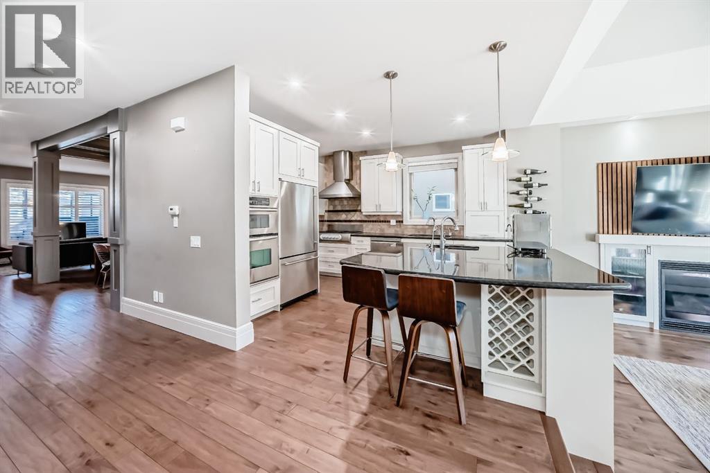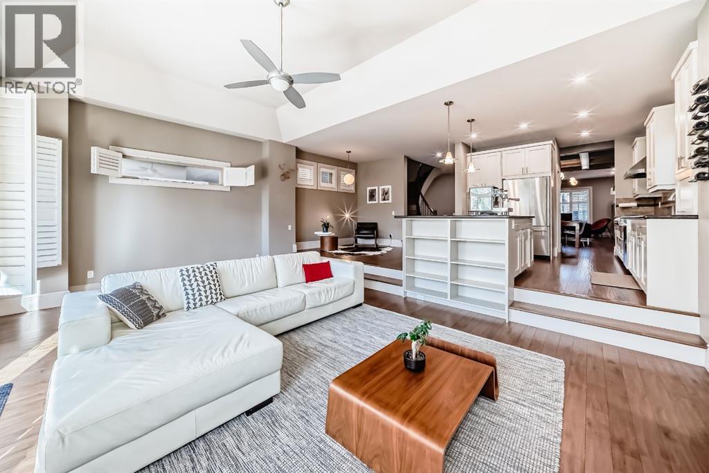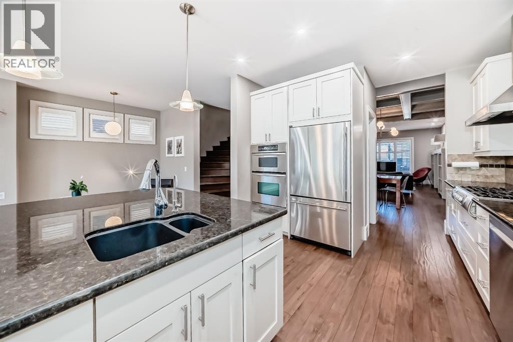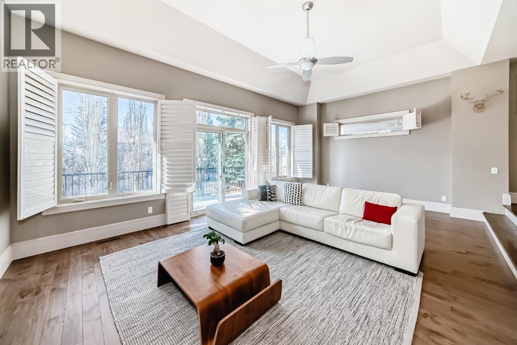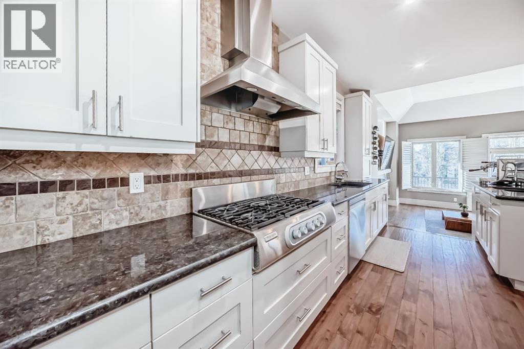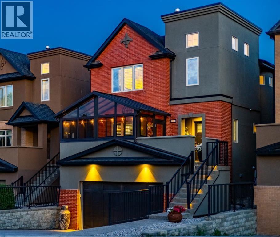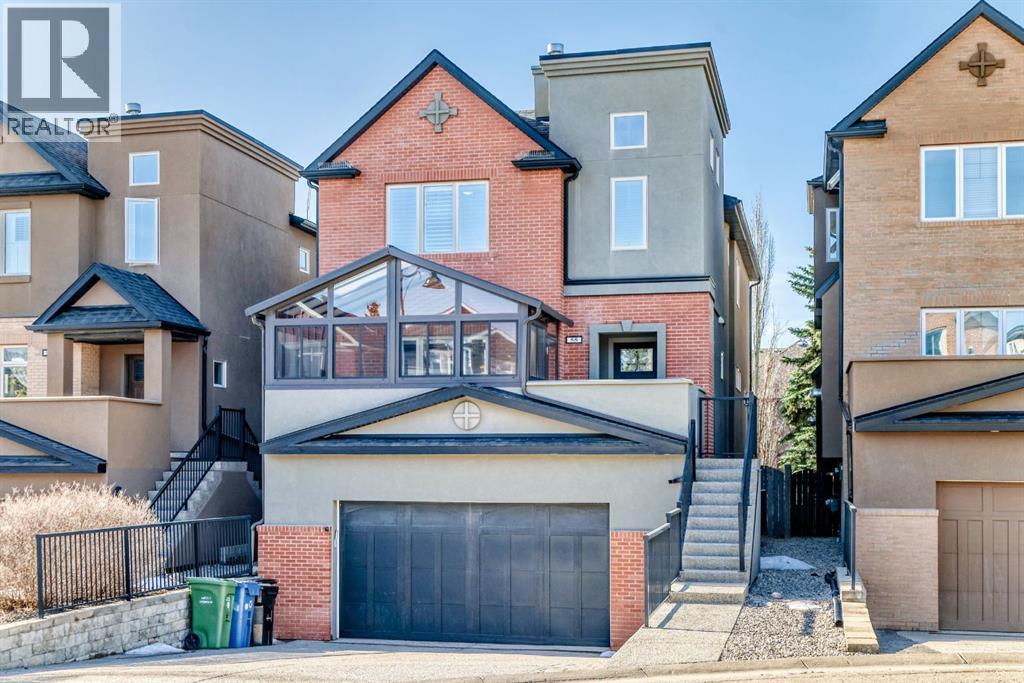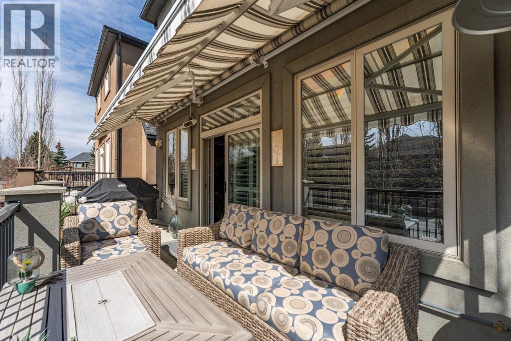 Located in the highly sought-after community of Aspen Woods, this stunning custom-built Brownstone blends classic architecture with a refined urban transitional design, all within a quiet suburban setting. Showcasing exceptional pride of ownership, this luxurious home is thoughtfully upgraded throughout, featuring central A/C, hardwood flooring, granite countertops, instant hot water, in-floor heating, water softener and filtration systems, built-in speakers, California shutters, a dog wash station, a heated garage, and much more. Designed with both comfort and entertaining in mind, the chef-inspired kitchen is the heart of the home. It boasts an oversized island, gleaming granite countertops, dual sinks, stainless steel appliances, a 5-burner gas cooktop, built-in wall oven and microwave, a spacious pantry, and convenient access to the formal dining room. The bright and spacious family room features 12-foot ceilings, abundant natural light from its sunny south exposure, and opens onto a full-width deck overlooking the beautifully treed backyard. Upstairs, retreat to the luxurious primary suite, complete with a fireplace, an expansive designer walk-in closet, and a spa-inspired 5-piece ensuite featuring dual vanities, a soaker tub, and a glass shower with dual shower heads. This level also includes two additional generously sized bedrooms, a full bathroom, a home office/study, and a convenient laundry room.mThe fully developed walk-out basement extends your living space with a fourth bedroom, a 2-piece bath, a large recreation room, and a wet bar equipped with a dishwasher and wine fridge—perfect for entertaining. Sliding patio doors lead to a covered patio and private, landscaped backyard oasis with mature trees and a south-facing exposure. A screened-in hot tub (negotiable) enhances the outdoor experience. This home is designed to maximize indoor-outdoor living, with all three levels above grade, a walk-out basement, a retractable awning on the deck, and a covered patio. Additional features include vaulted, coffered, and tray ceilings, light maple flooring, architectural columns, built-in shelving, a curved staircase with iron spindles, three fireplaces, and a built-in sound system. Practical features for everyday comfort include a built-in vacuum system, humidifier, ceiling fans, and energy-efficient custom shutters throughout. The oversized double attached garage is heated, and a well-designed mudroom offers built-in benches, cubbies, and a pet washing station. Situated on a private cul-de-sac, this home also features a charming enclosed front sunroom, allowing for year-round enjoyment of outdoor living. Aspen Woods is home to some of Calgary’s most prestigious schools, including Webber Academy, Ambrose University, Rundle College, Ernest Manning High School, Calgary Academy, and Dr. Roberta Bondar School. With close proximity to Bow Trail, commuting downtown is quick and convenient, short walk to LRT. (id:63190)
