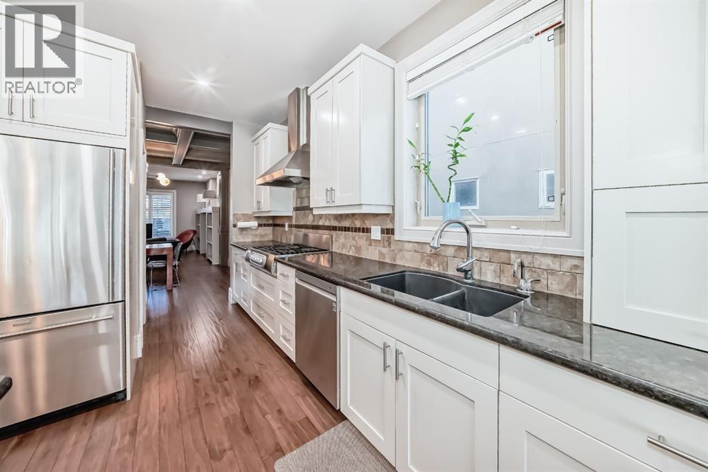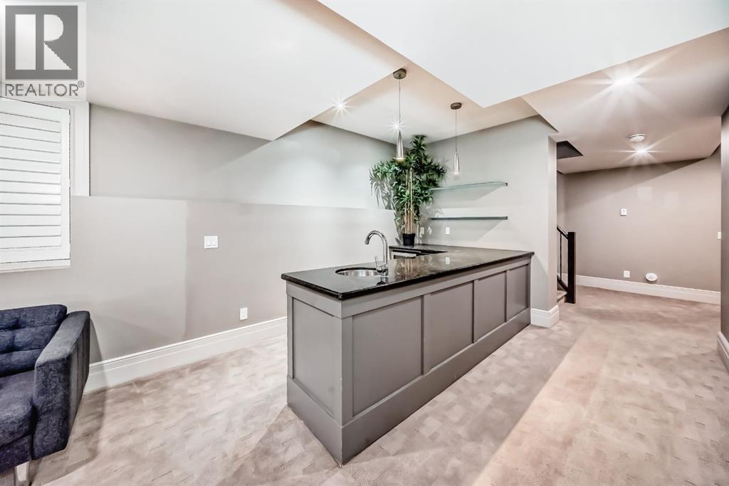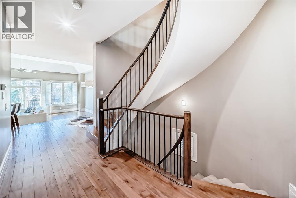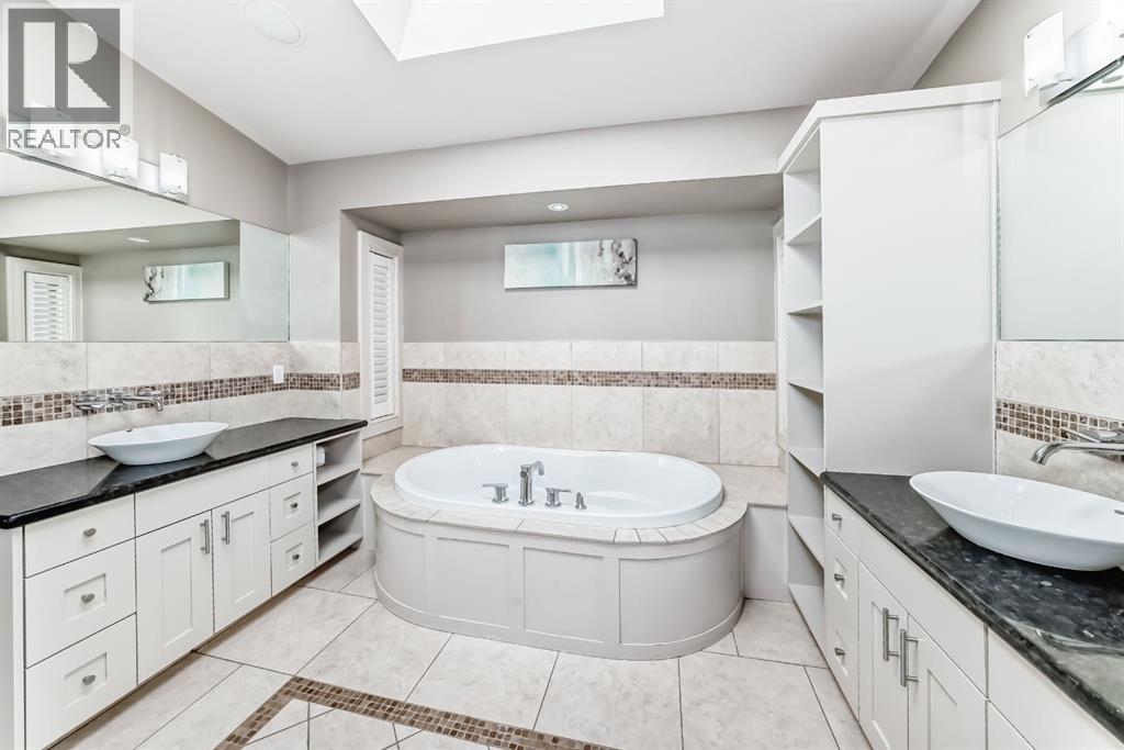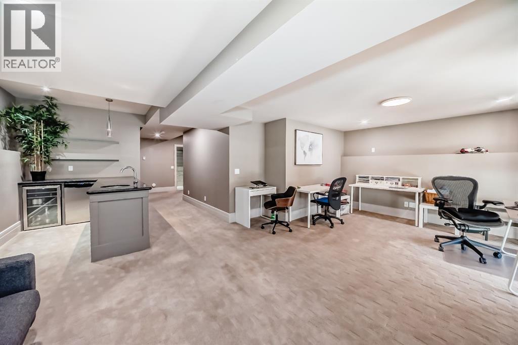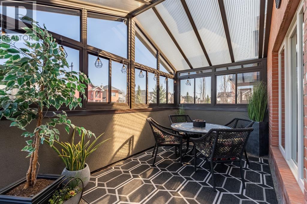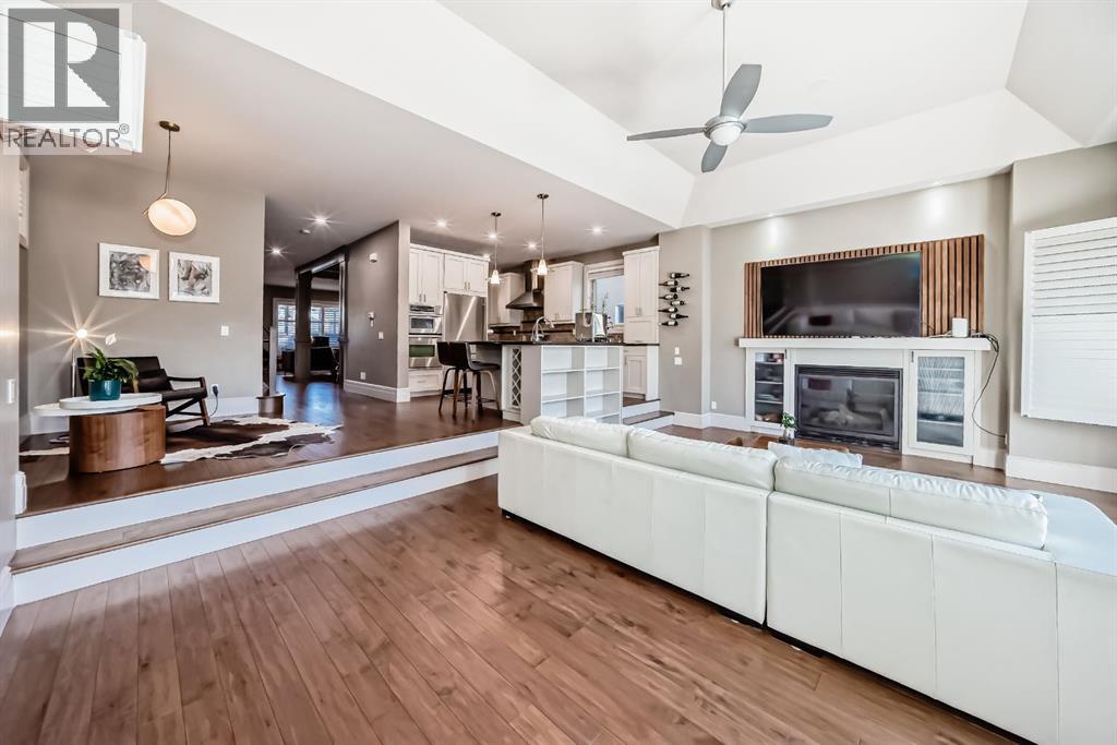 Located in the highly sought-after community of Aspen Woods, this stunning custom-built Brownstone blends classic architecture with a refined urban transitional design, all within a quiet suburban setting. Showcasing exceptional pride of ownership, this luxurious home is thoughtfully upgraded throughout, featuring central A/C, hardwood flooring, granite countertops, instant hot water, in-floor heating, water softener and filtration systems, built-in speakers, California shutters, a dog wash station, a heated garage, and much more. Designed with both comfort and entertaining in mind, the chef-inspired kitchen is the heart of the home. It boasts an oversized island, gleaming granite countertops, dual sinks, stainless steel appliances, a 5-burner gas cooktop, built-in wall oven and microwave, a spacious pantry, and convenient access to the formal dining room. The bright and spacious family room features 12-foot ceilings, abundant natural light from its sunny south exposure, and opens onto a full-width deck overlooking the beautifully treed backyard. Upstairs, retreat to the luxurious primary suite, complete with a fireplace, an expansive designer walk-in closet, and a spa-inspired 5-piece ensuite featuring dual vanities, a soaker tub, and a glass shower with dual shower heads. This level also includes two additional generously sized bedrooms, a full bathroom, a home office/study, and a convenient laundry room.mThe fully developed walk-out basement extends your living space with a fourth bedroom, a 2-piece bath, a large recreation room, and a wet bar equipped with a dishwasher and wine fridge—perfect for entertaining. Sliding patio doors lead to a covered patio and private, landscaped backyard oasis with mature trees and a south-facing exposure. A screened-in hot tub (negotiable) enhances the outdoor experience. This home is designed to maximize indoor-outdoor living, with all three levels above grade, a walk-out basement, a retractable awning on the deck, and a covered patio. Additional features include vaulted, coffered, and tray ceilings, light maple flooring, architectural columns, built-in shelving, a curved staircase with iron spindles, three fireplaces, and a built-in sound system. Practical features for everyday comfort include a built-in vacuum system, humidifier, ceiling fans, and energy-efficient custom shutters throughout. The oversized double attached garage is heated, and a well-designed mudroom offers built-in benches, cubbies, and a pet washing station. Situated on a private cul-de-sac, this home also features a charming enclosed front sunroom, allowing for year-round enjoyment of outdoor living. Aspen Woods is home to some of Calgary’s most prestigious schools, including Webber Academy, Ambrose University, Rundle College, Ernest Manning High School, Calgary Academy, and Dr. Roberta Bondar School. With close proximity to Bow Trail, commuting downtown is quick and convenient, short walk to LRT. (id:63190)