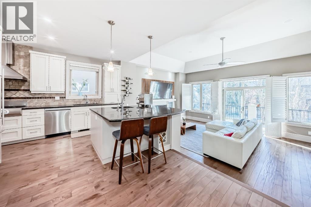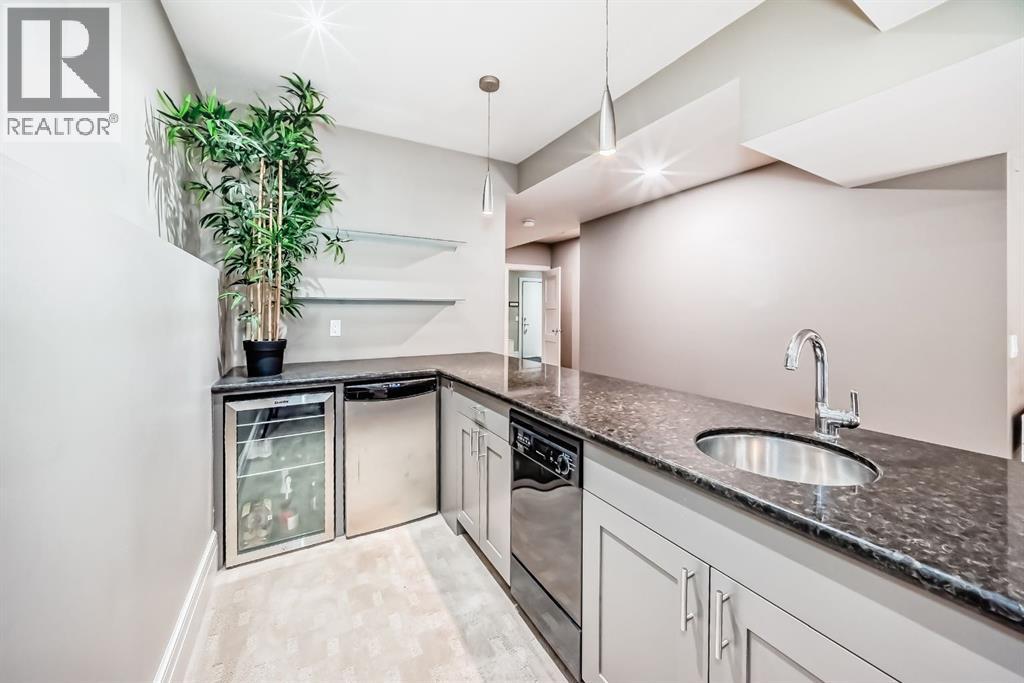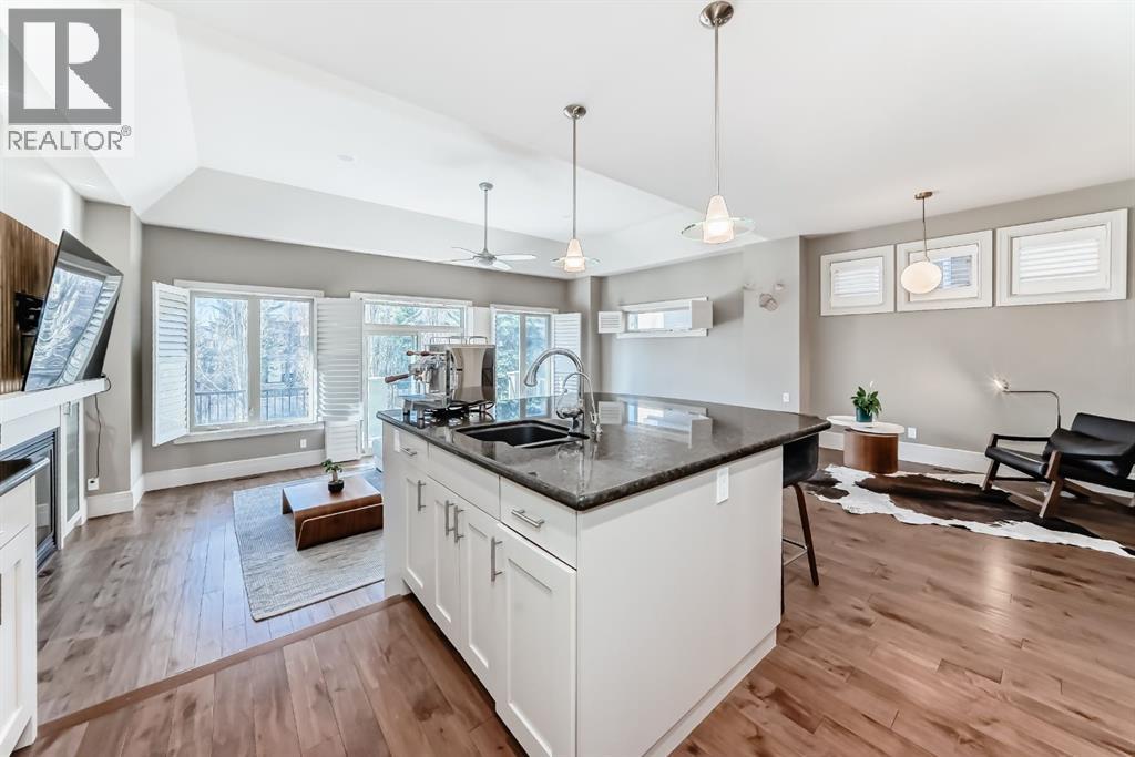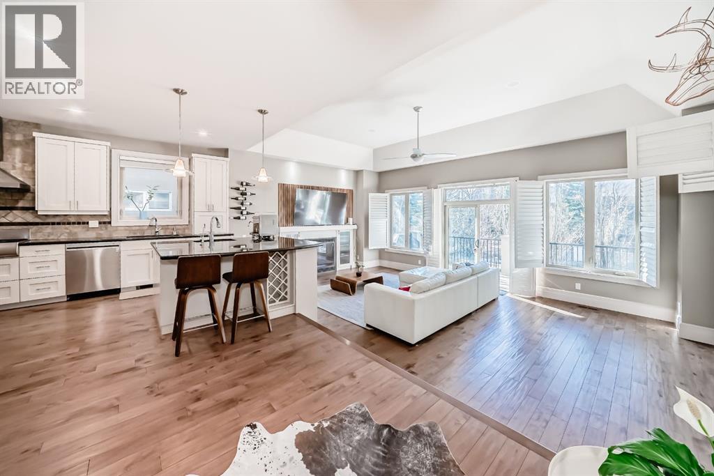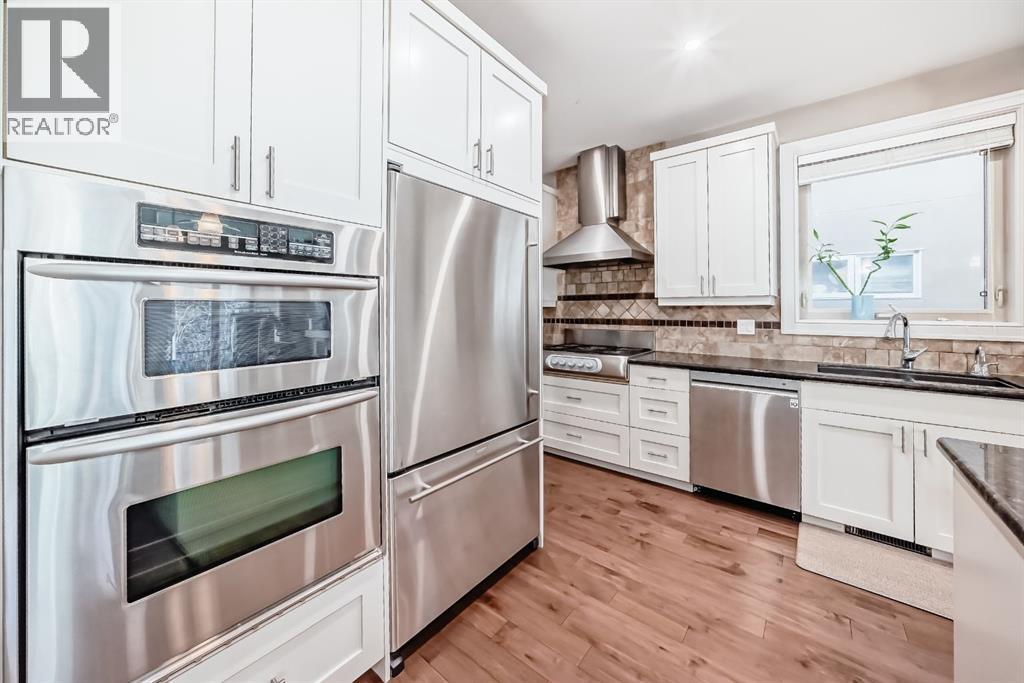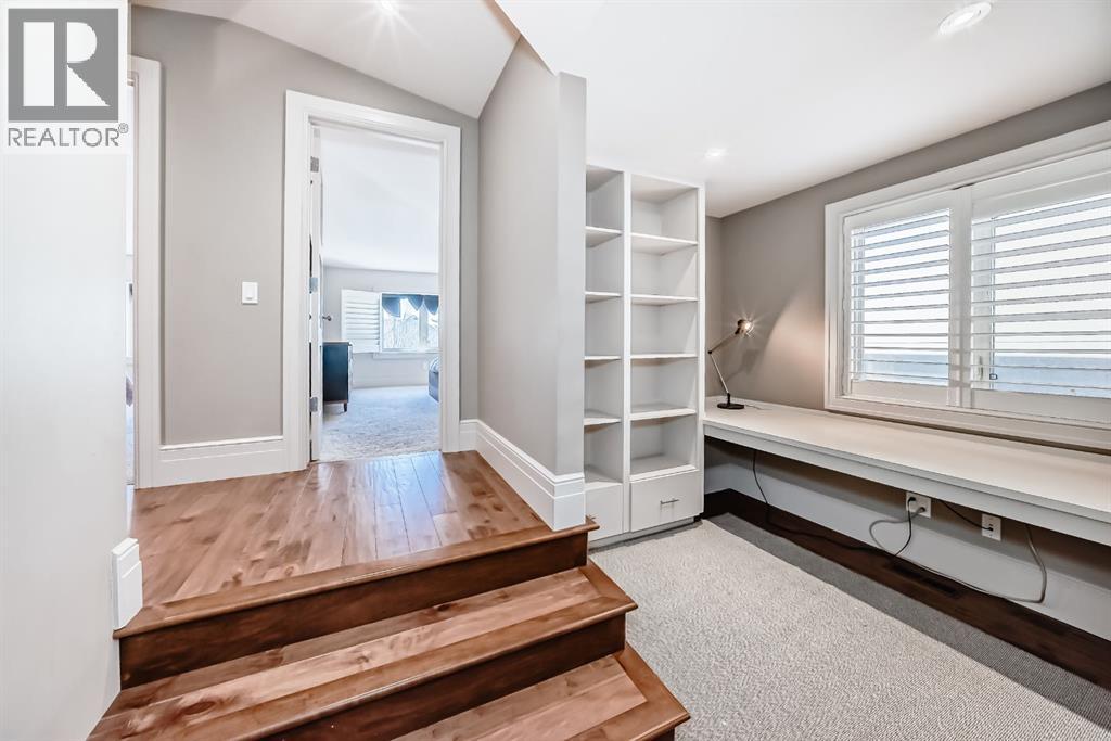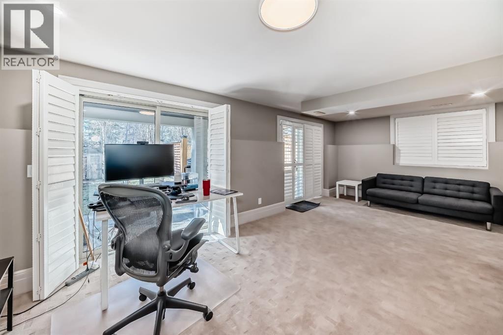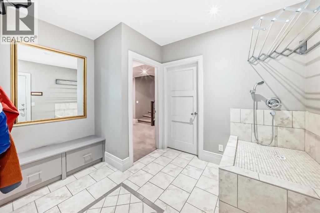 Located in the highly sought-after community of Aspen Woods, this stunning custom-built Brownstone blends classic architecture with a refined urban transitional design, all within a quiet suburban setting. Showcasing exceptional pride of ownership, this luxurious home is thoughtfully upgraded throughout, featuring central A/C, hardwood flooring, granite countertops, instant hot water, in-floor heating, water softener and filtration systems, built-in speakers, California shutters, a dog wash station, a heated garage, and much more. Designed with both comfort and entertaining in mind, the chef-inspired kitchen is the heart of the home. It boasts an oversized island, gleaming granite countertops, dual sinks, stainless steel appliances, a 5-burner gas cooktop, built-in wall oven and microwave, a spacious pantry, and convenient access to the formal dining room. The bright and spacious family room features 12-foot ceilings, abundant natural light from its sunny south exposure, and opens onto a full-width deck overlooking the beautifully treed backyard. Upstairs, retreat to the luxurious primary suite, complete with a fireplace, an expansive designer walk-in closet, and a spa-inspired 5-piece ensuite featuring dual vanities, a soaker tub, and a glass shower with dual shower heads. This level also includes two additional generously sized bedrooms, a full bathroom, a home office/study, and a convenient laundry room.mThe fully developed walk-out basement extends your living space with a fourth bedroom, a 2-piece bath, a large recreation room, and a wet bar equipped with a dishwasher and wine fridge—perfect for entertaining. Sliding patio doors lead to a covered patio and private, landscaped backyard oasis with mature trees and a south-facing exposure. A screened-in hot tub (negotiable) enhances the outdoor experience. This home is designed to maximize indoor-outdoor living, with all three levels above grade, a walk-out basement, a retractable awning on the deck, and a covered patio. Additional features include vaulted, coffered, and tray ceilings, light maple flooring, architectural columns, built-in shelving, a curved staircase with iron spindles, three fireplaces, and a built-in sound system. Practical features for everyday comfort include a built-in vacuum system, humidifier, ceiling fans, and energy-efficient custom shutters throughout. The oversized double attached garage is heated, and a well-designed mudroom offers built-in benches, cubbies, and a pet washing station. Situated on a private cul-de-sac, this home also features a charming enclosed front sunroom, allowing for year-round enjoyment of outdoor living. Aspen Woods is home to some of Calgary’s most prestigious schools, including Webber Academy, Ambrose University, Rundle College, Ernest Manning High School, Calgary Academy, and Dr. Roberta Bondar School. With close proximity to Bow Trail, commuting downtown is quick and convenient, short walk to LRT. (id:63190)