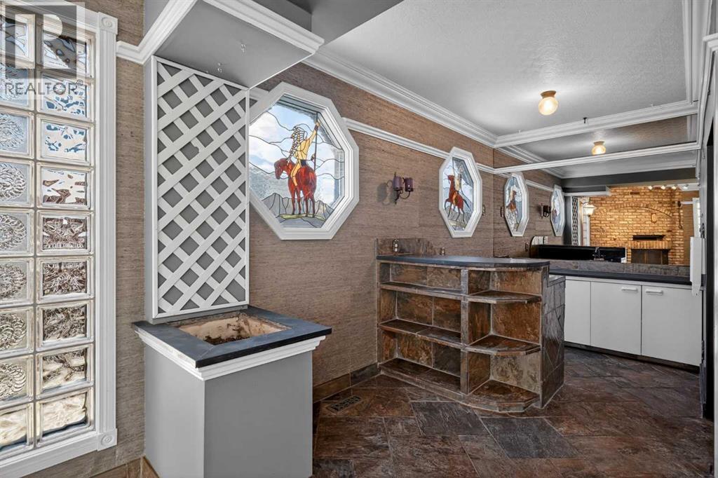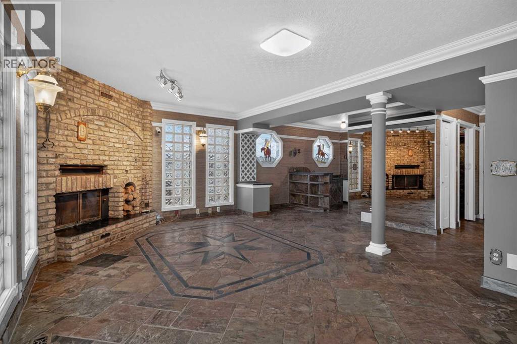 In the quiet, deep-rooted community of Woodlands, where the trees have had time to grow thick, and the sprawling wild of Fish Creek Provincial Park lies just a stone’s throw away, sits a house that has known the steady rhythm of a single family since the nineteen-eighties. Standing firmly at 67 Woodstock Road SW, it offers 1,833 square feet of life above the earth, shaped over decades by hands that favoured quiet creativity over the plain or the ordinary, laying slate upon the floors and setting intricate mosaics with deliberate care. It does not mirror the sterile, gray trends of today, but it possesses something far rarer: a rugged, undeniable soul. Upon entry, the home breathes easily, opening into a formal living room beneath vaulted ceilings before stepping up to a raised, separate dining room - a dignified arrangement rarely built in these hurried times. Beyond this lies the kitchen and a breakfast nook that looks out onto the golden arc of the southern sun and a magical, terraced backyard built for a gardener, complete with an outdoor brick fireplace waiting for woodsmoke and quiet evenings. Inside, the kitchen opens freely to the family room, a space designed with purpose and heralded by a brick-faced, wood-burning fireplace of its own. The main floor continues to unfold with a dedicated bar, a large walk-in closet ready to swallow up heavy winter wear, and a two-piece bathroom just inside the door leading to the heated, attached garage. The stairs carry you up to three generous bedrooms, including a primary suite that offers a quiet retreat, complete with a solid three-piece ensuite bathroom, a walk-in closet, and a private balcony where one can stand and look out over the life of the yard below. A four-piece bathroom with a steam shower serves the remaining two bedrooms, rooms that have held the echoes of a family growing up. Down below, the basement digs into the earth to provide a den or flex room, a secondary living space for recreation, another two-pie ce bathroom, and ample storage cabinets for the tools and keepsakes of a life well lived. Though the home stands empty now, ready to embrace a new vision, its bones have been well cared for, with an updated furnace, replaced windows, and the modern comfort of central air conditioning. An honest home, waiting patiently for the writing of its next chapter. (id:63190)